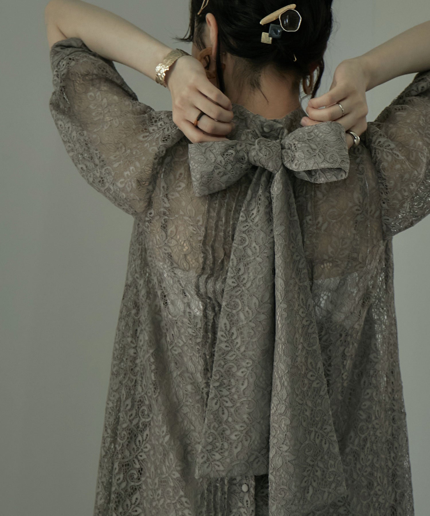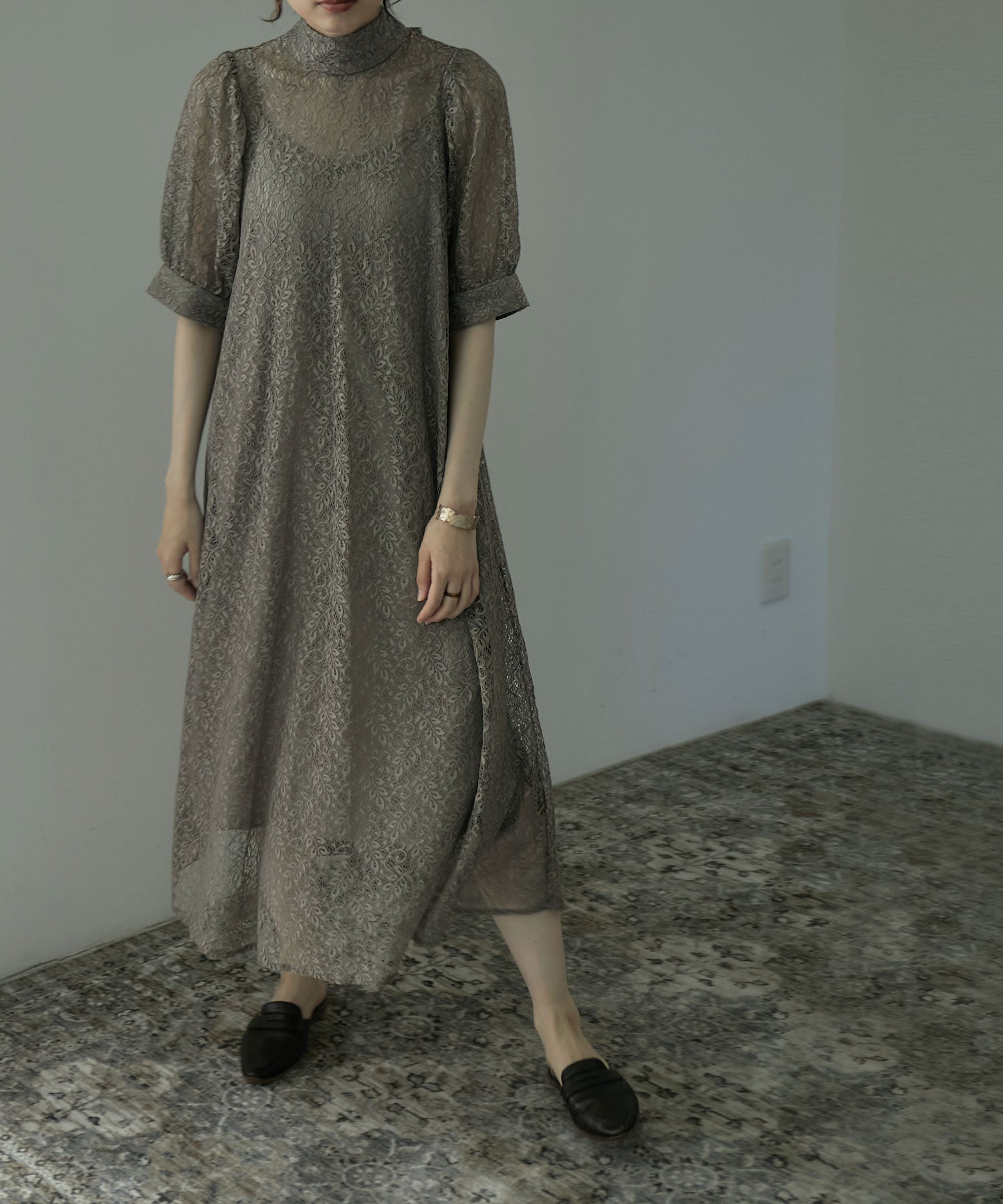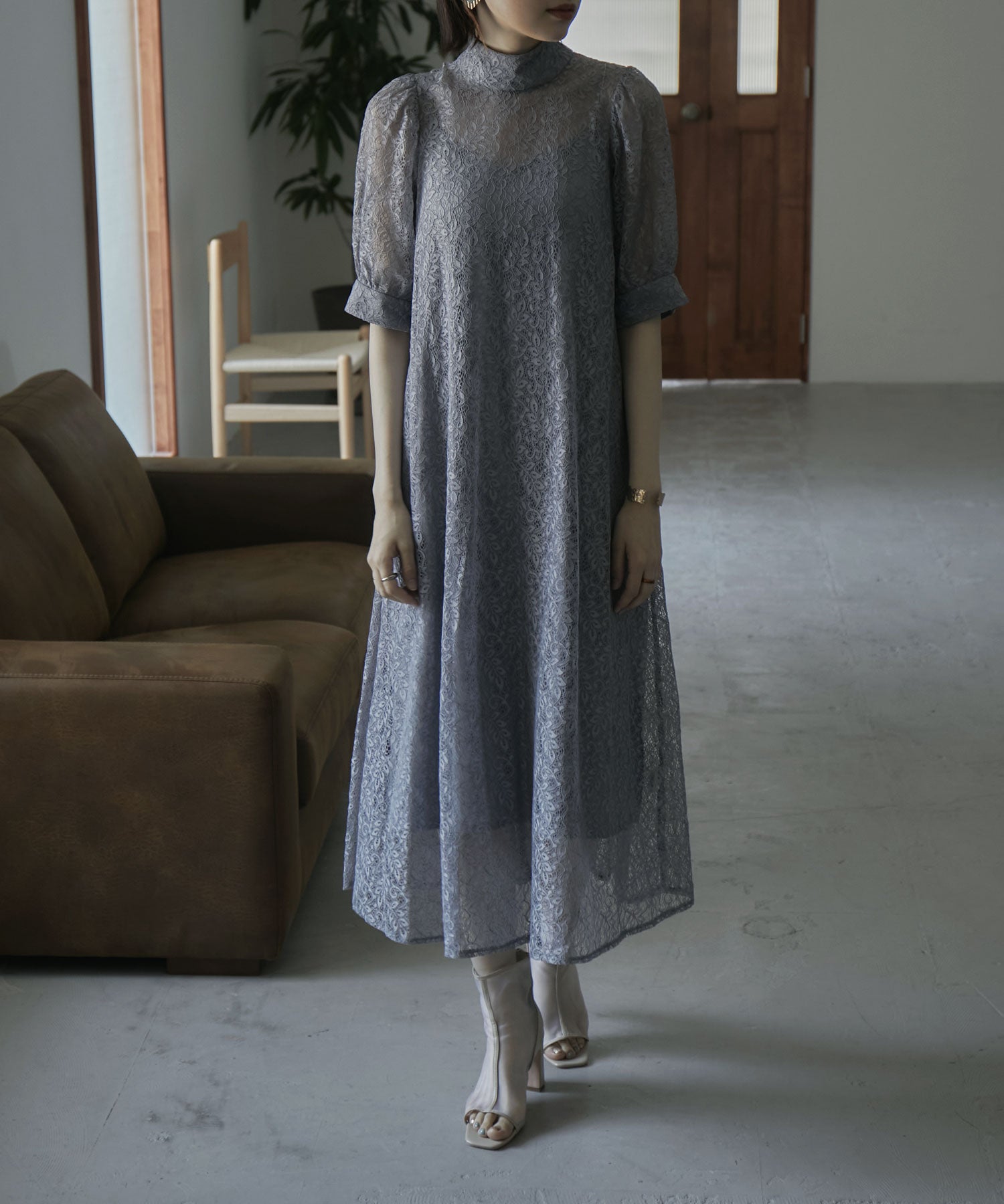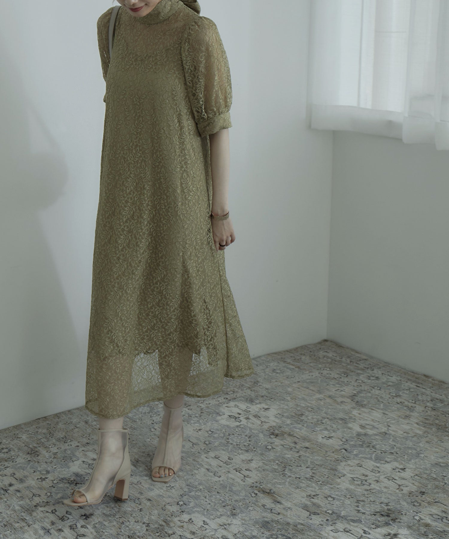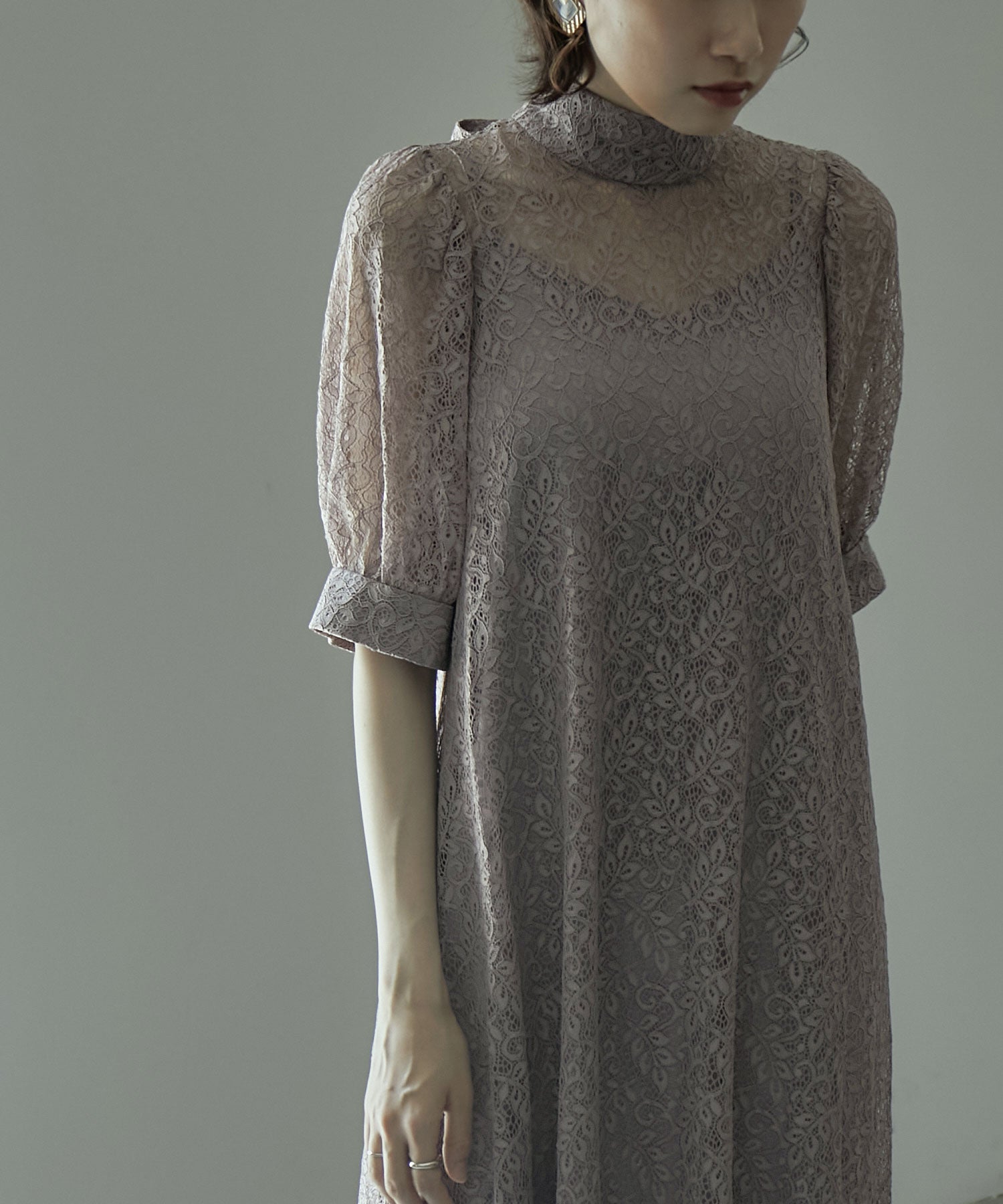 シアー感のあるレースが美しく、気になるボディラインもカバーしてくれるシルエットとふわっとしたボリューム袖が大人の女性らしさが際立つスタイルに仕上げてくれます。