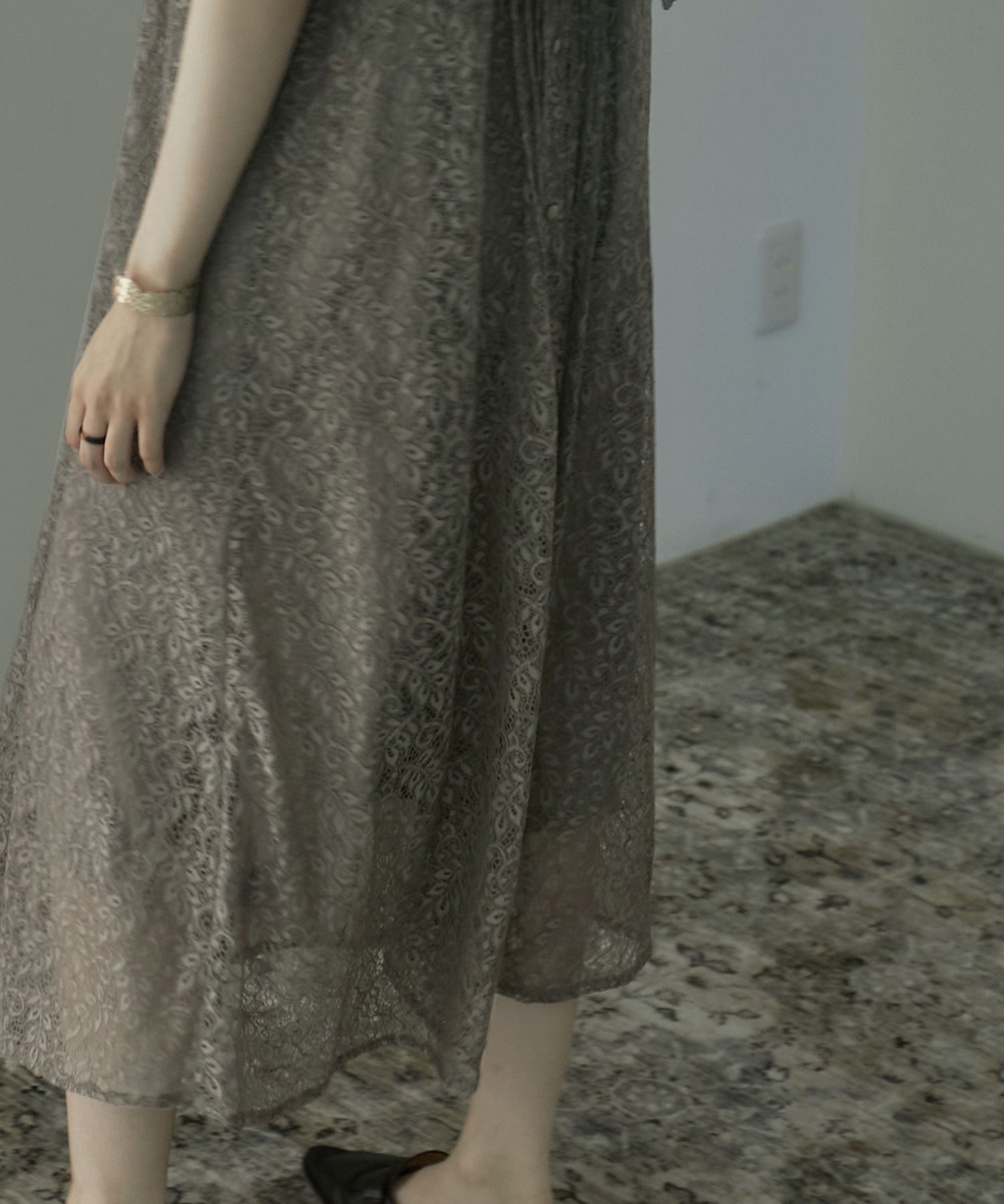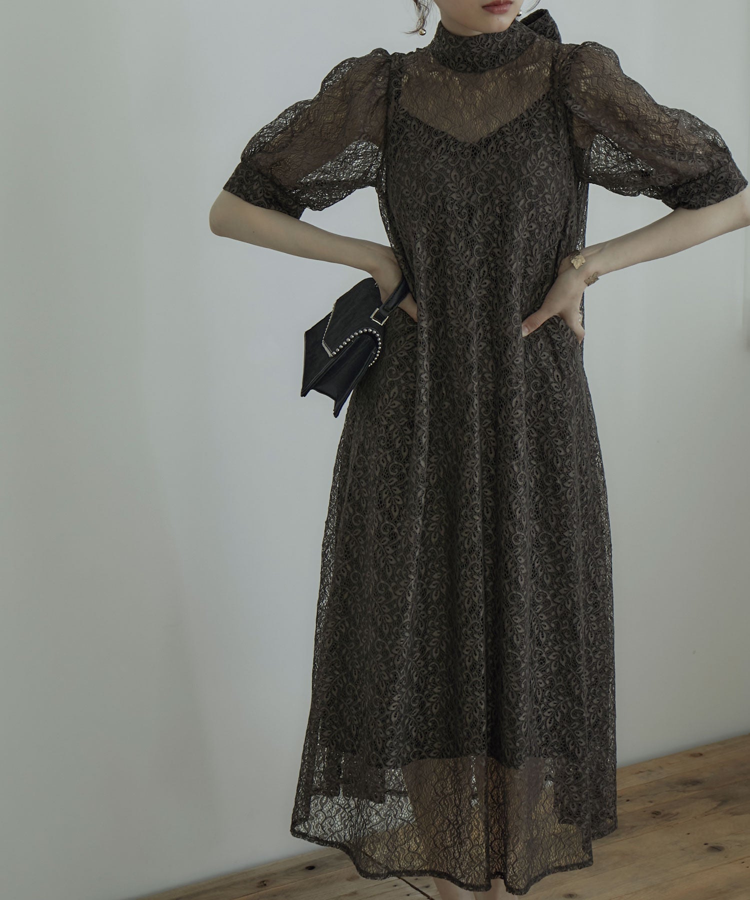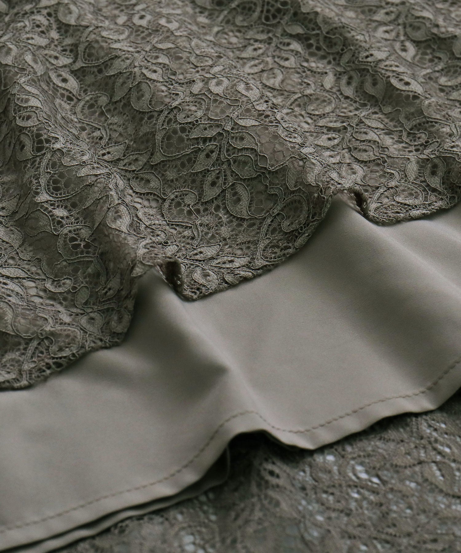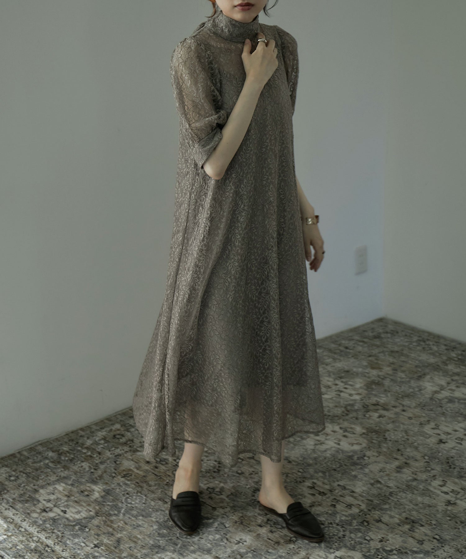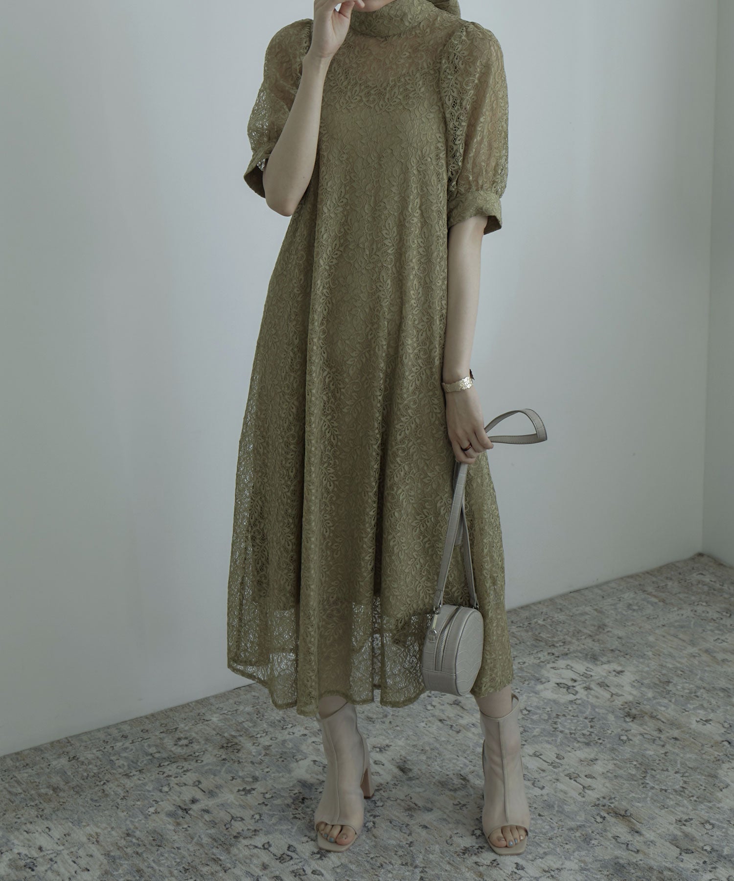 シアー感のあるレースが美しく、気になるボディラインもカバーしてくれるシルエットとふわっとしたボリューム袖が大人の女性らしさが際立つスタイルに仕上げてくれます。