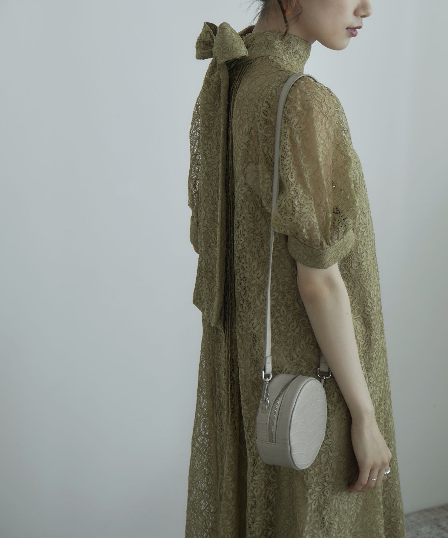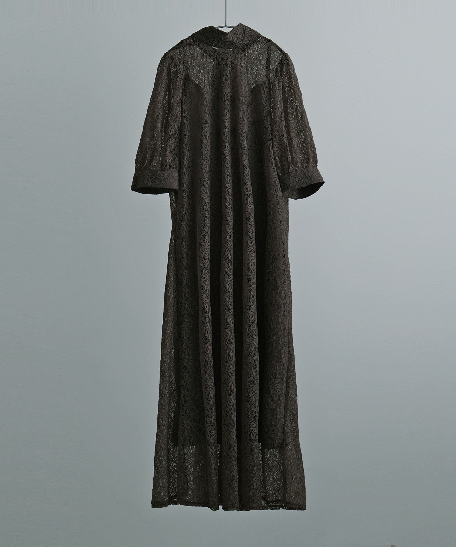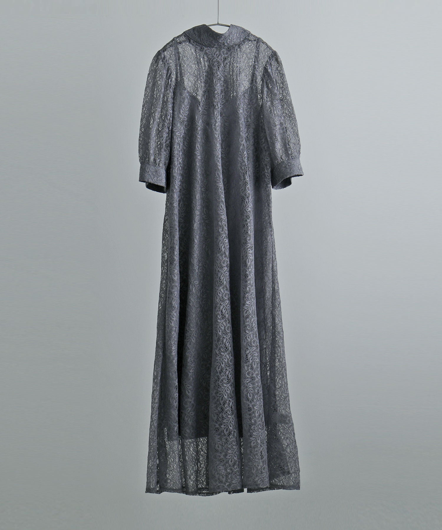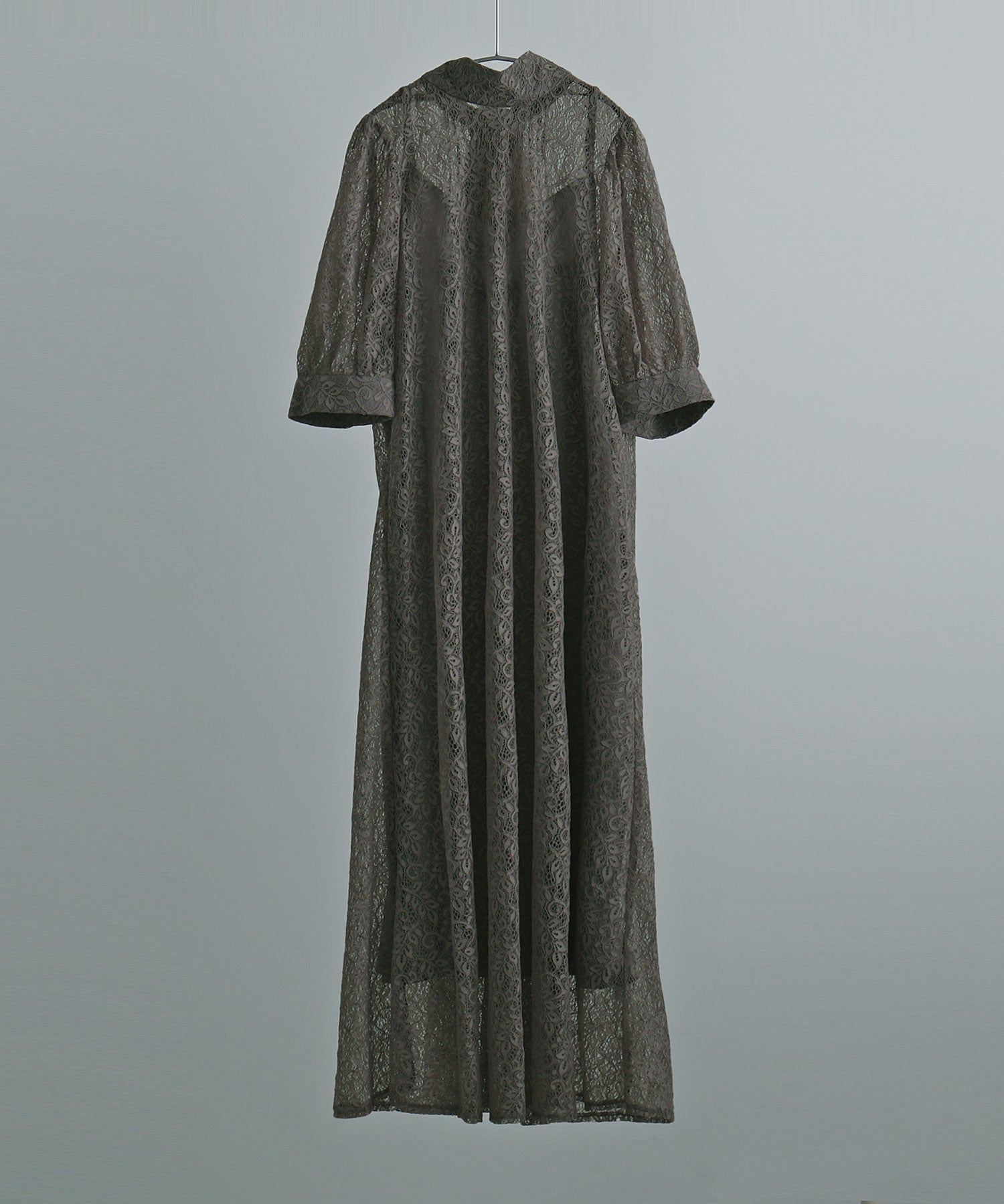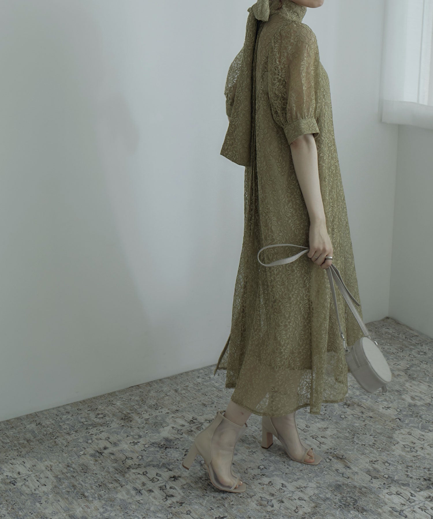 シアー感のあるレースが美しく、気になるボディラインもカバーしてくれるシルエットとふわっとしたボリューム袖が大人の女性らしさが際立つスタイルに仕上げてくれます。