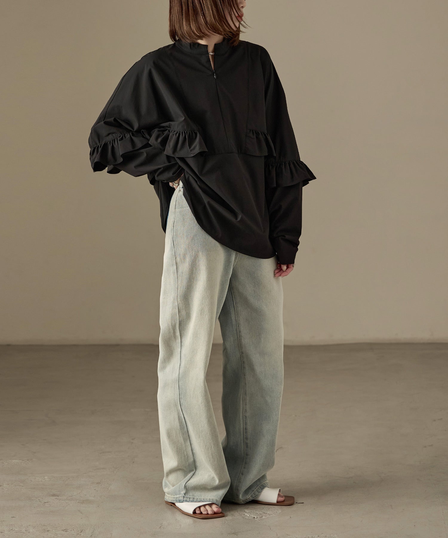 ゆったりめな幅広シルエットで体型カバー効果抜群。