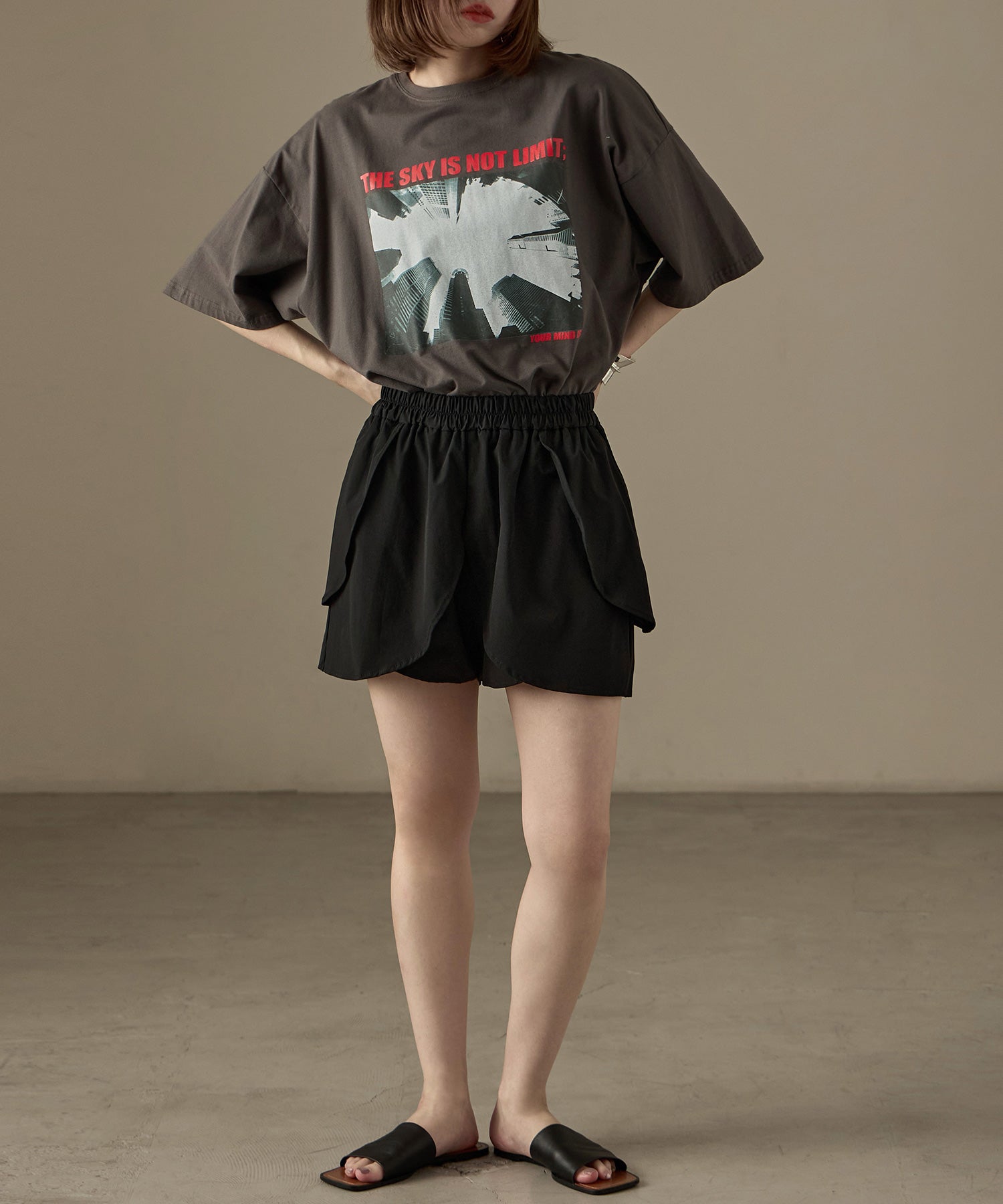 フレアシルエットと重なるフリルで気になる太ももをカバー。