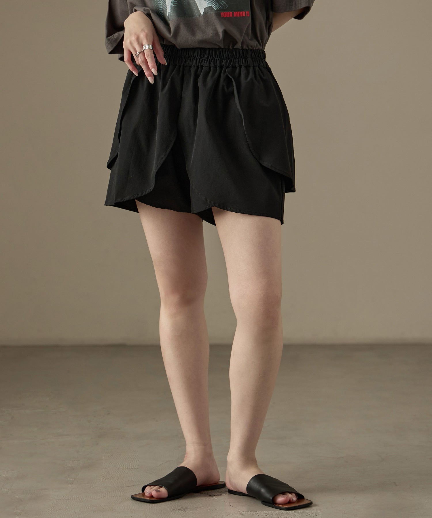 Rname 水陸両用 フリルデザイン ラッシュガード ショートパンツ セットアップ可能 パンツ ウエストゴム UVカット UPF50+ 紫外線対策 日焼け止め 速乾 韓国ファッション 軽量 無地 ランニング ガーデニング キャンプ バーベキュー プール 海水浴 フェス 日焼け防止
