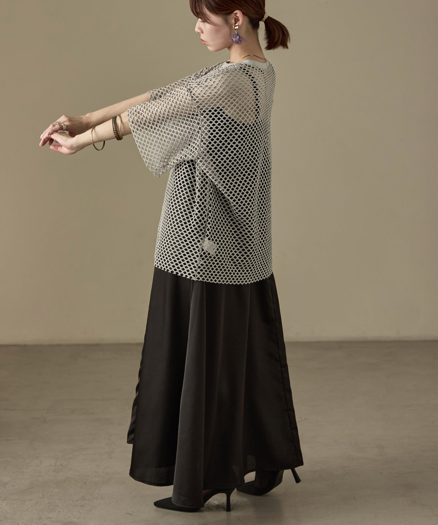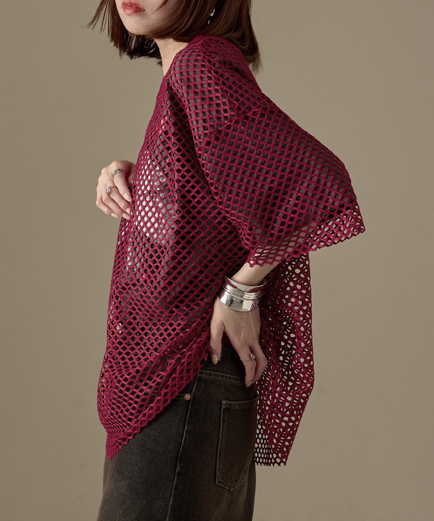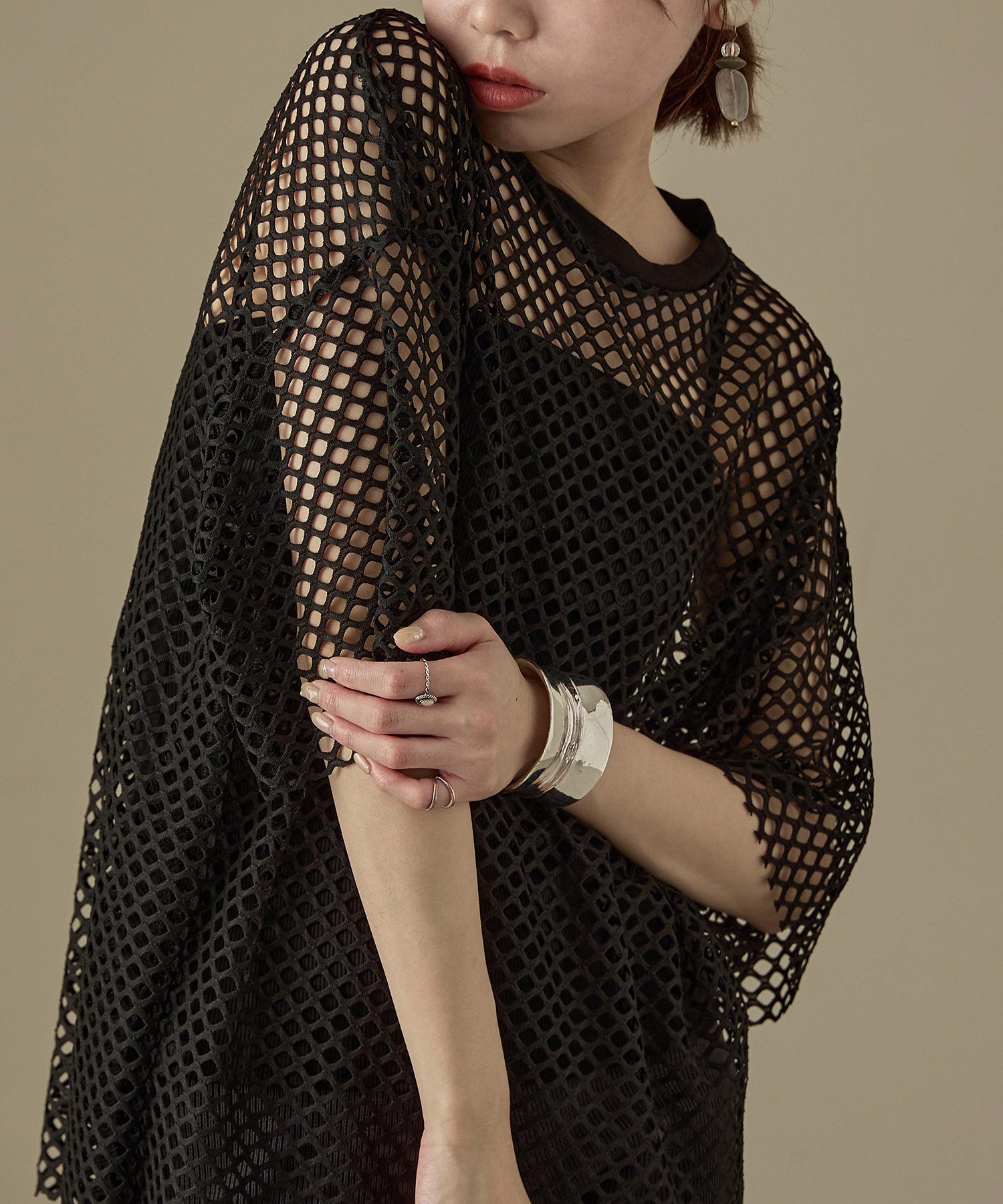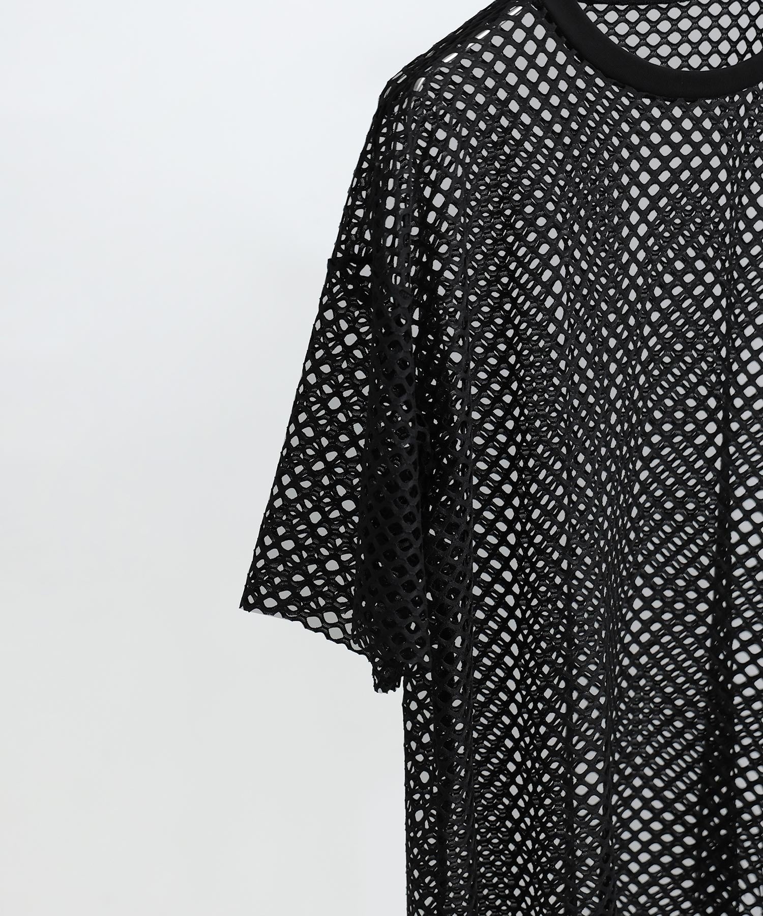 Rname シアーメッシュ オーバーサイズTシャツ カットソー ゆったり ビッグサイズ 大きめ 無地 トップス レディース シアー 半袖 5分袖 五分袖 韓国ファッション 大人 低身長 高身長 レイヤード ママコーデ 無地 メッシュニット