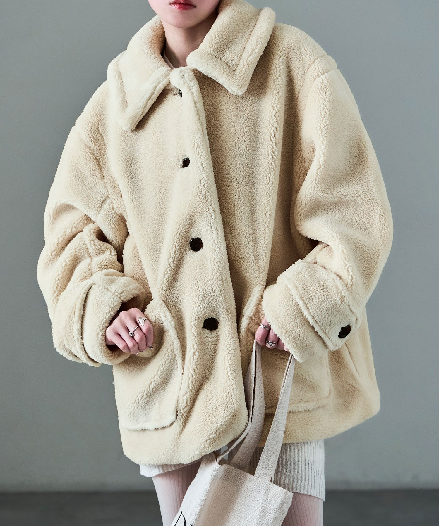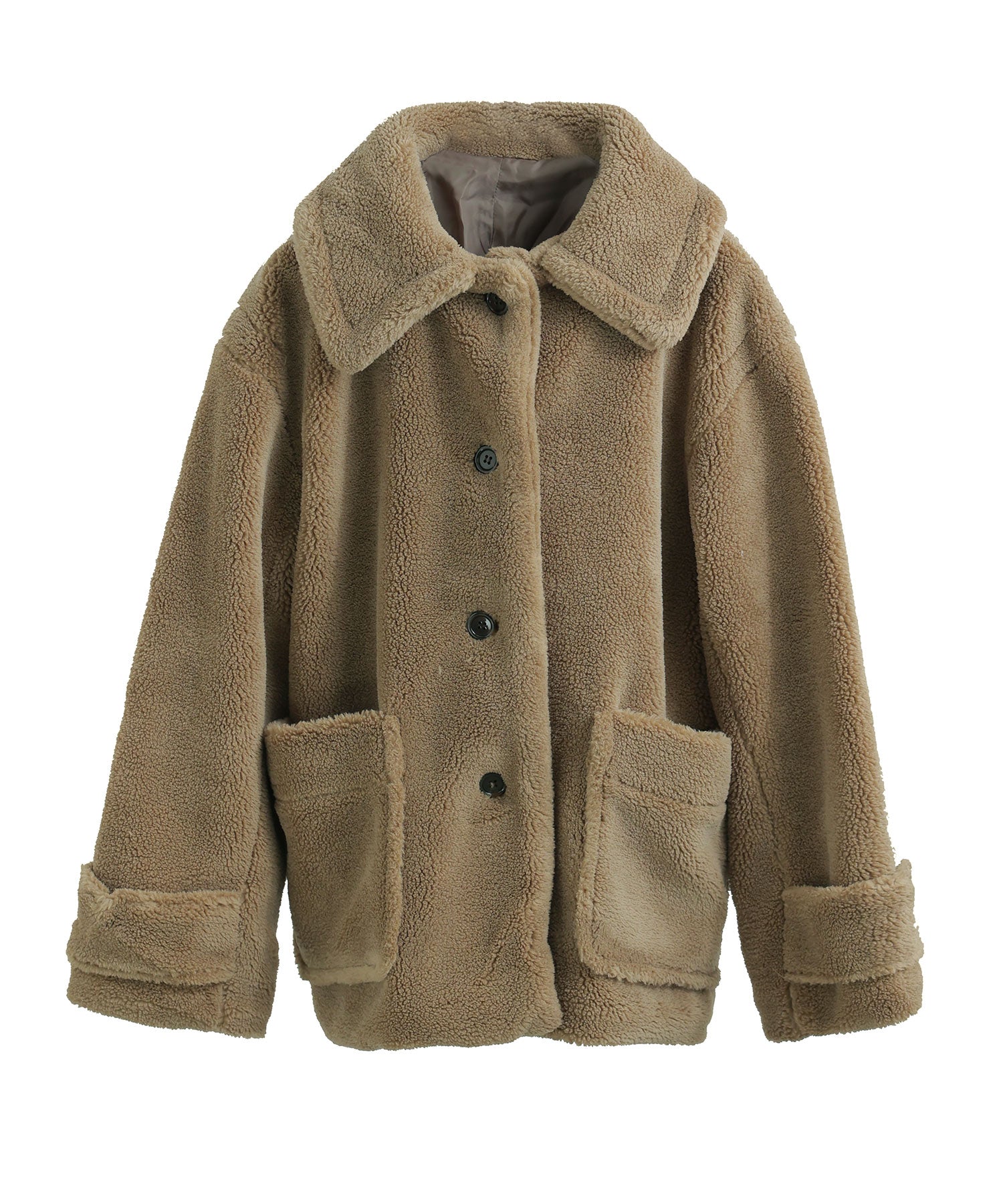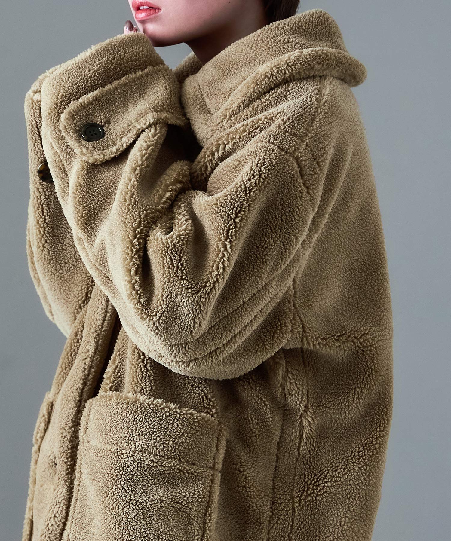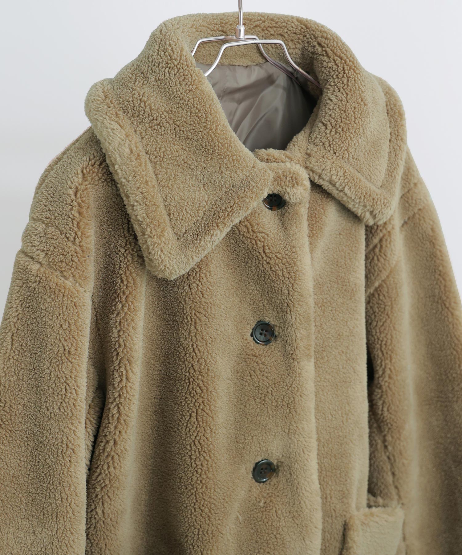 Rname ミドル丈 テディボア ステンカラーコート テディコート ショートコート ジャケット ブルゾン ボア ゆったり ロング丈 韓国ファッション 低身長 高身長 あったか アウター ママコーデ きれいめ