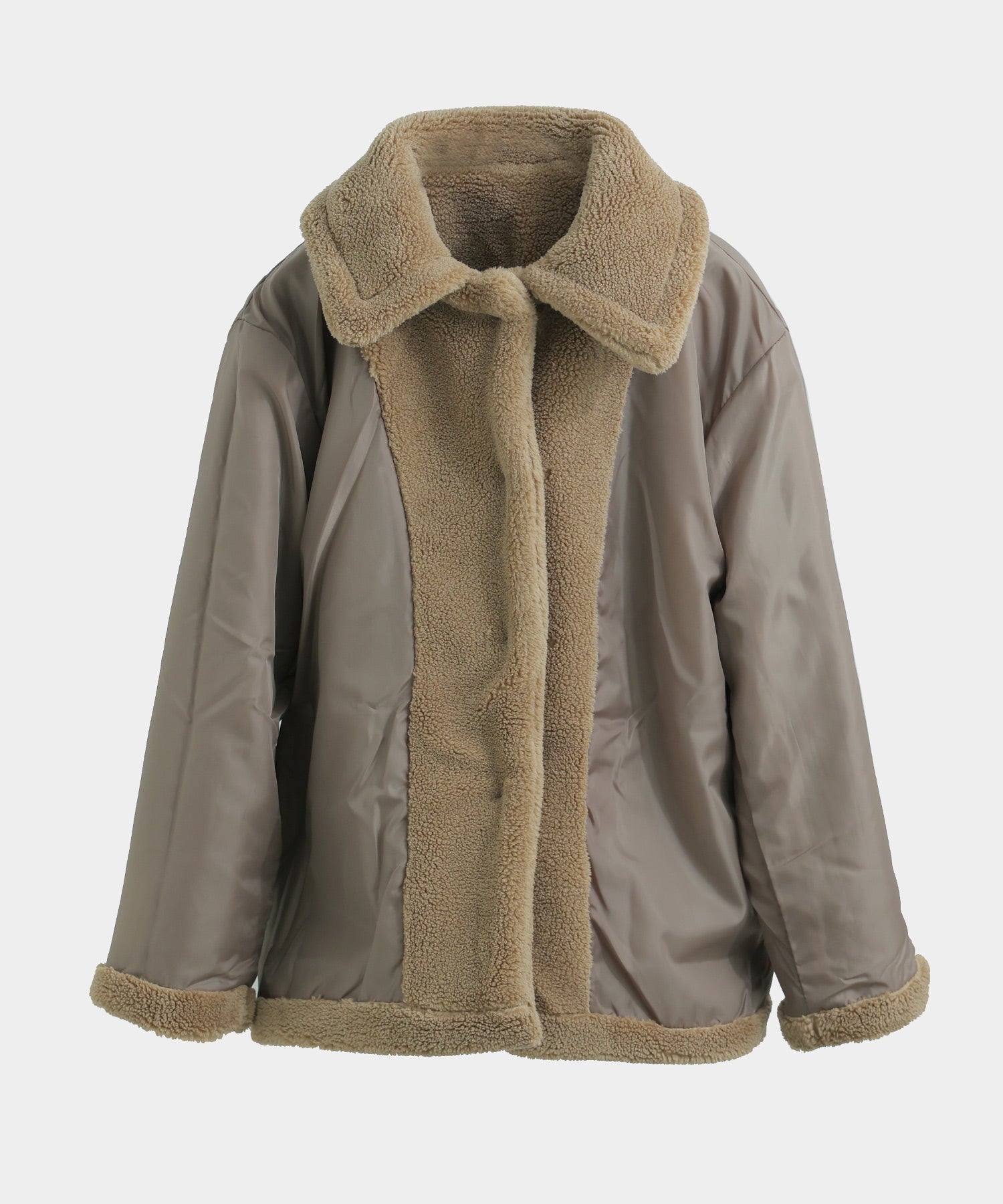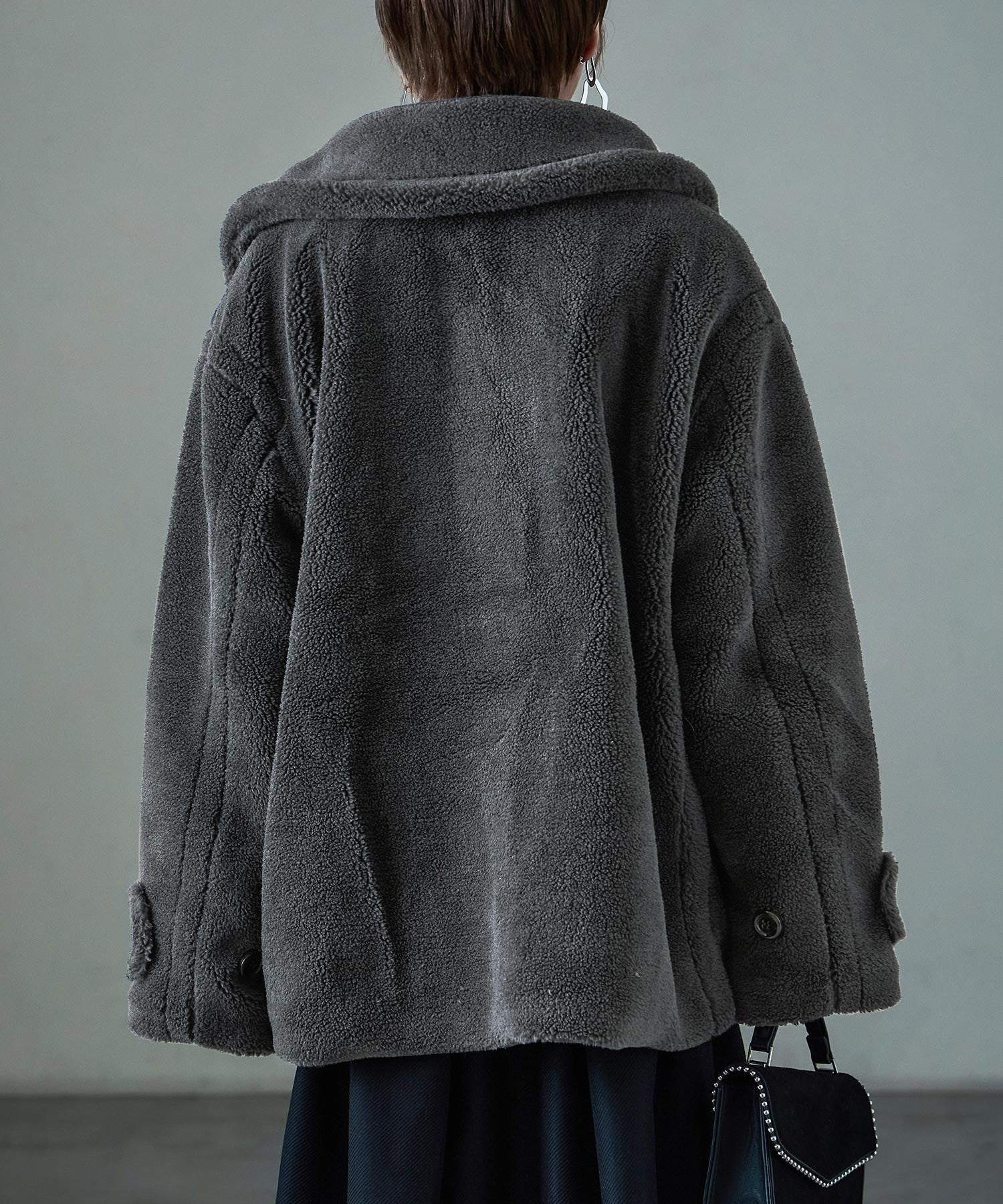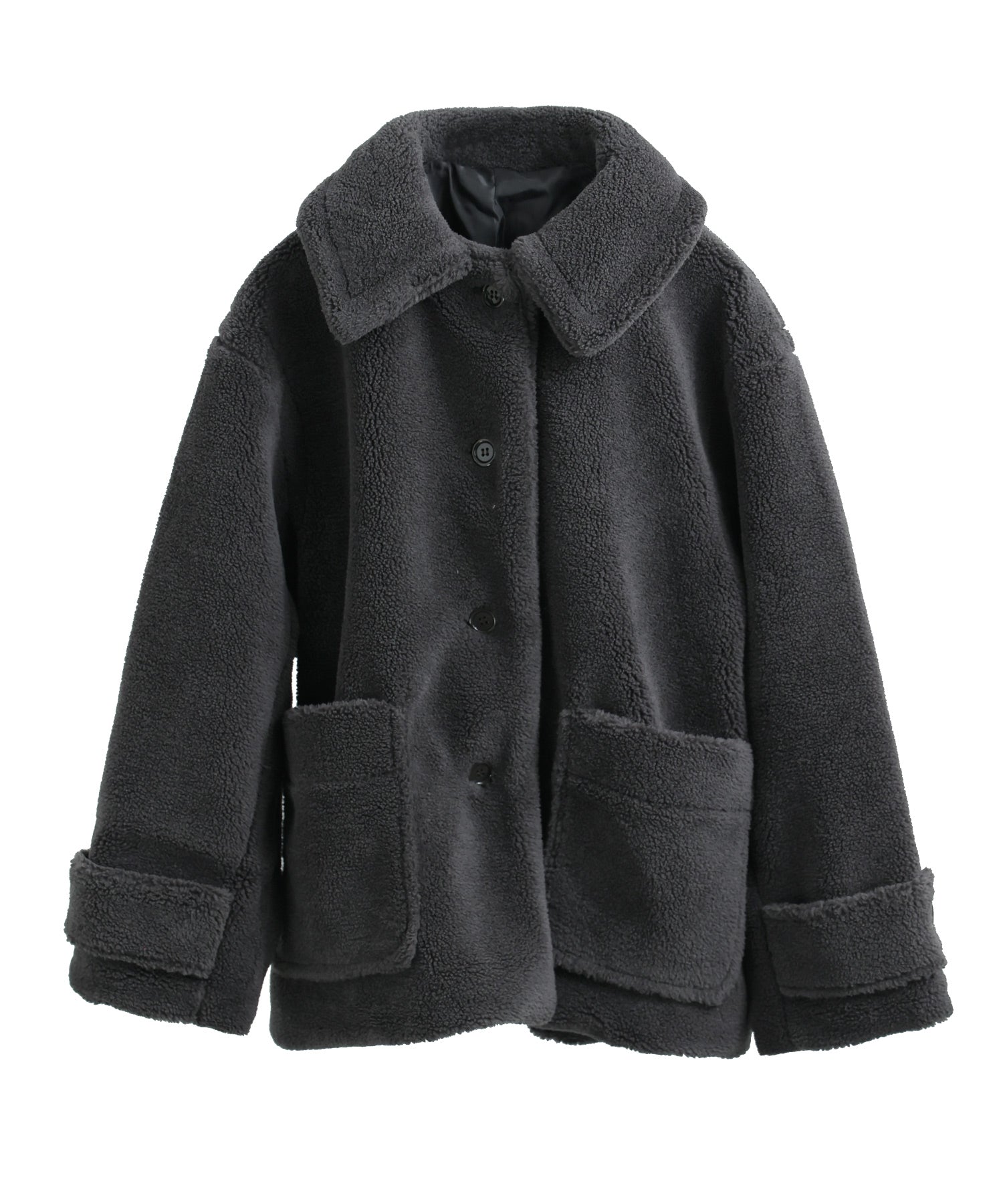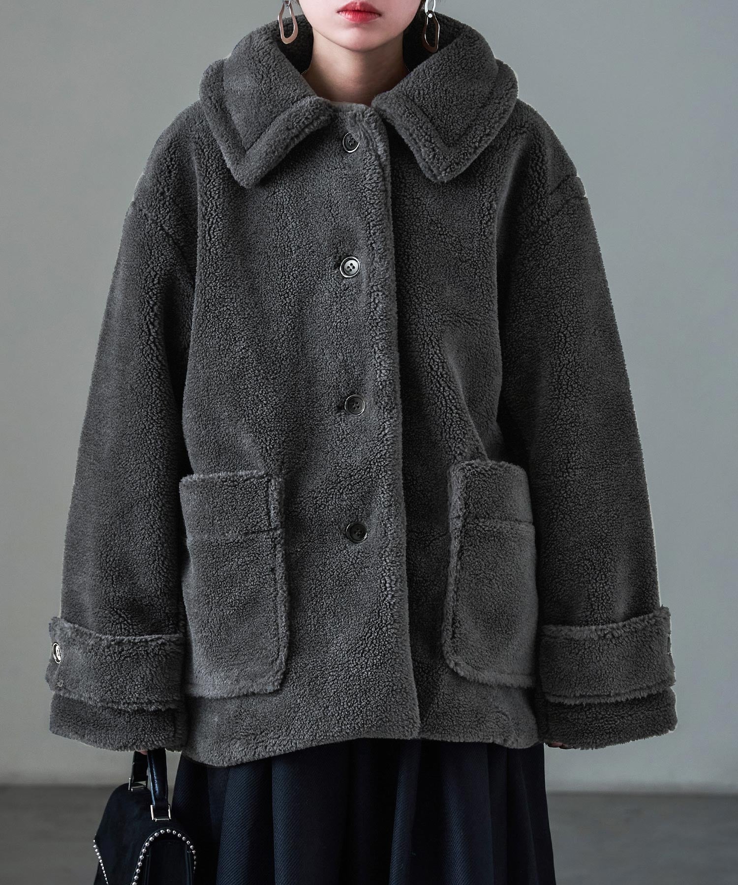 Rname ミドル丈 テディボア ステンカラーコート テディコート ショートコート ジャケット ブルゾン ボア ゆったり ロング丈 韓国ファッション 低身長 高身長 あったか アウター ママコーデ きれいめ