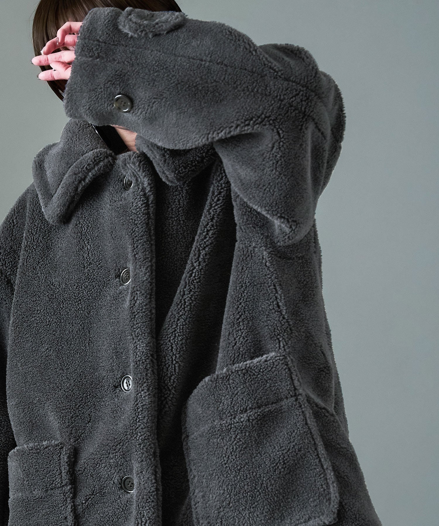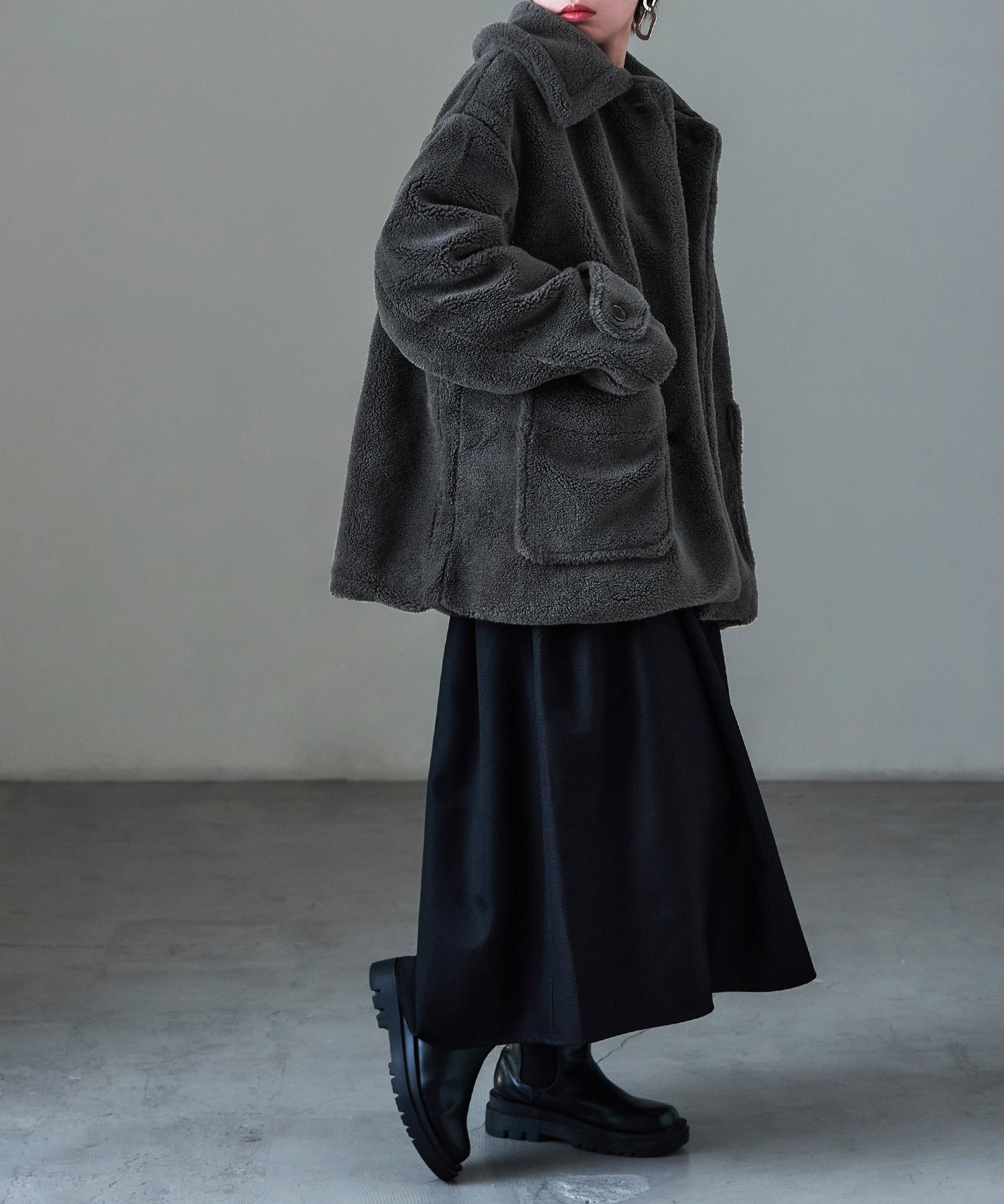 ゆったりとしたサイジングで厚手のニットやスウェットの上にも羽織りやすく、真冬にも対応。