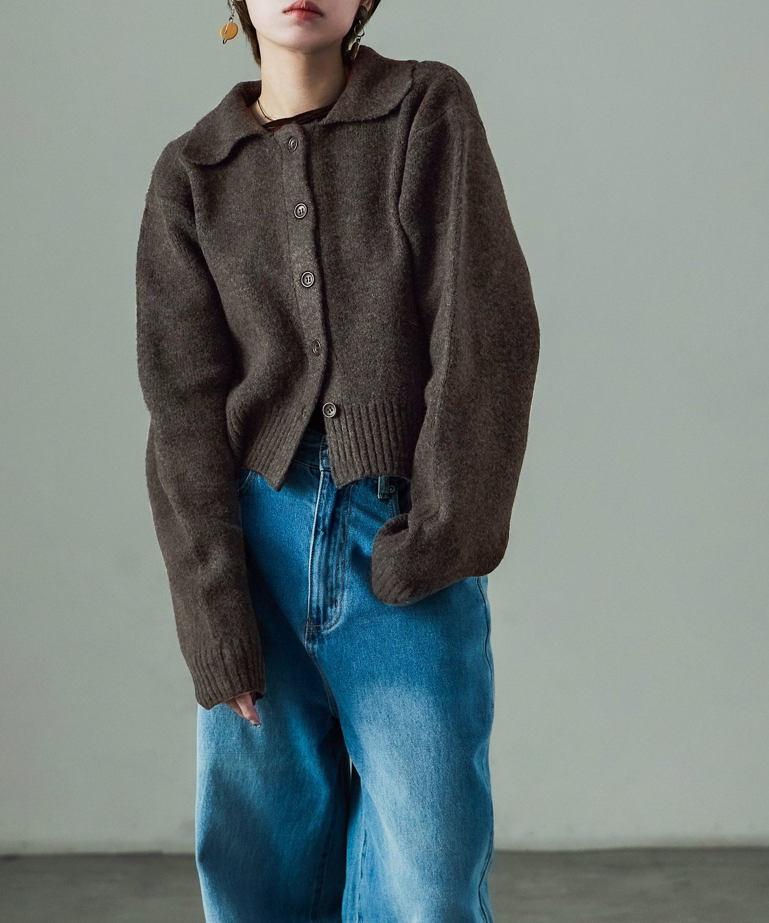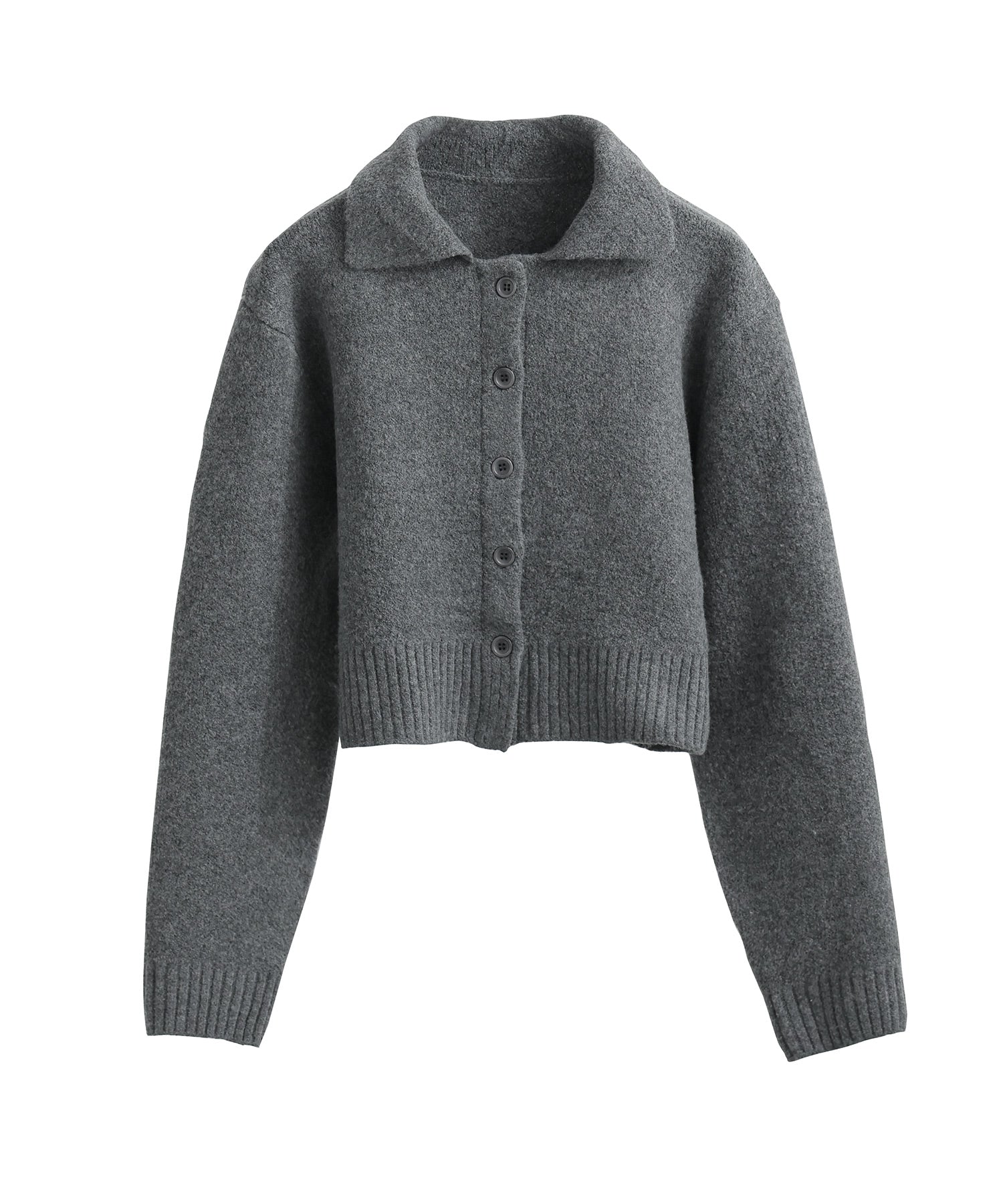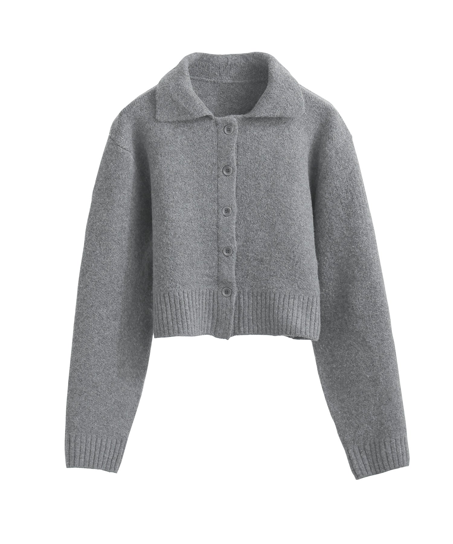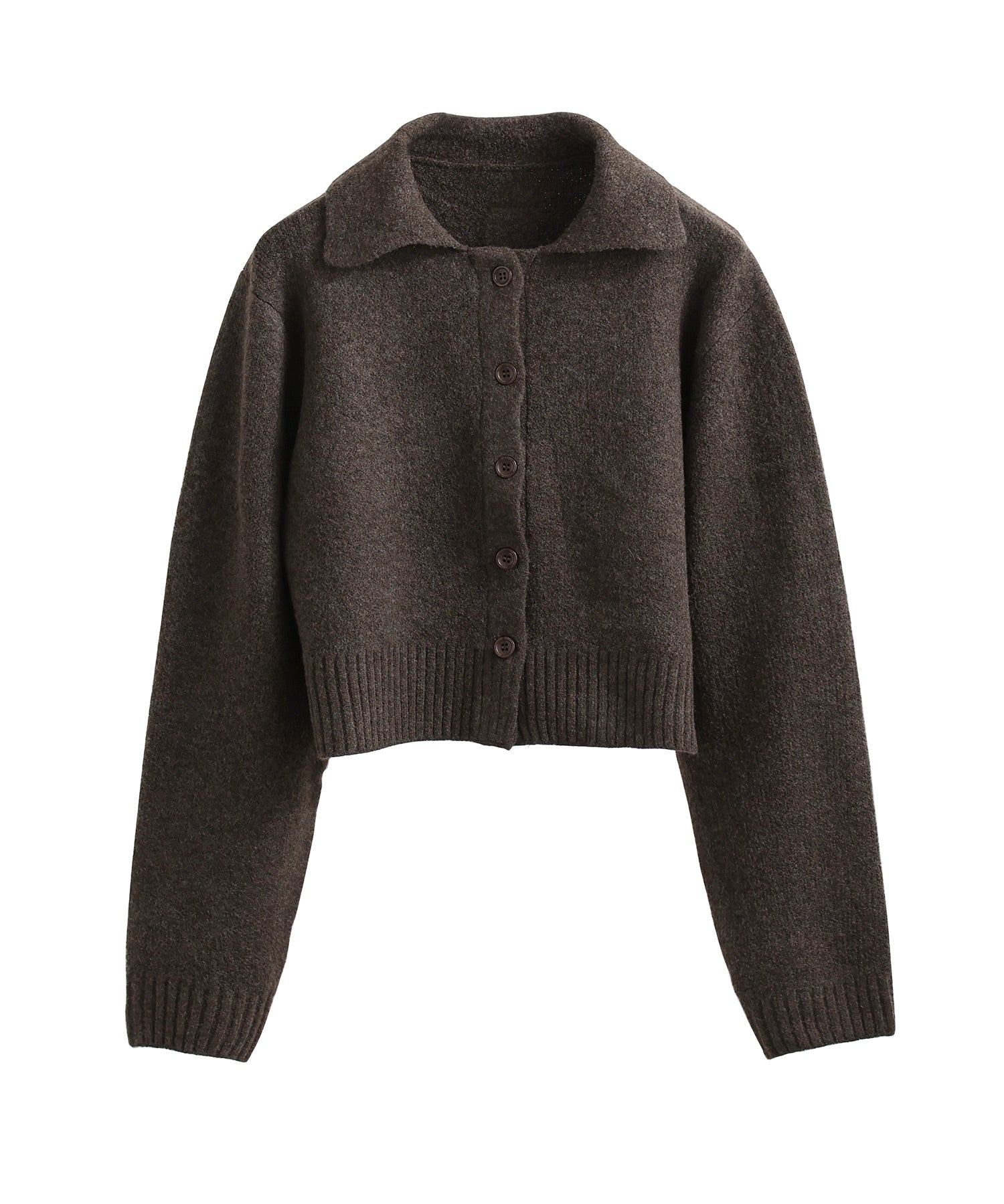 衿付きデザインが韓国っぽくて可愛いショート丈のニットカーディガン。