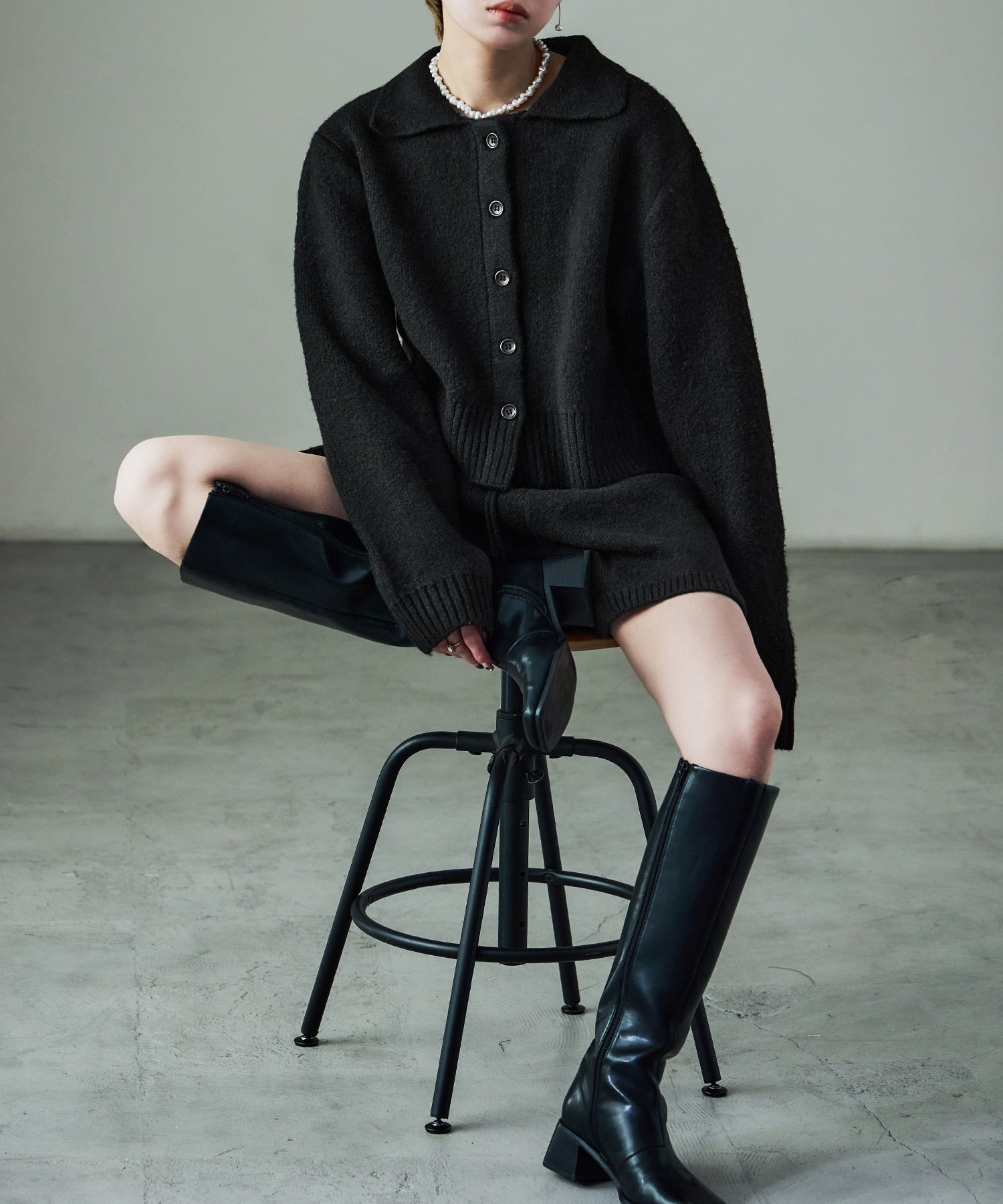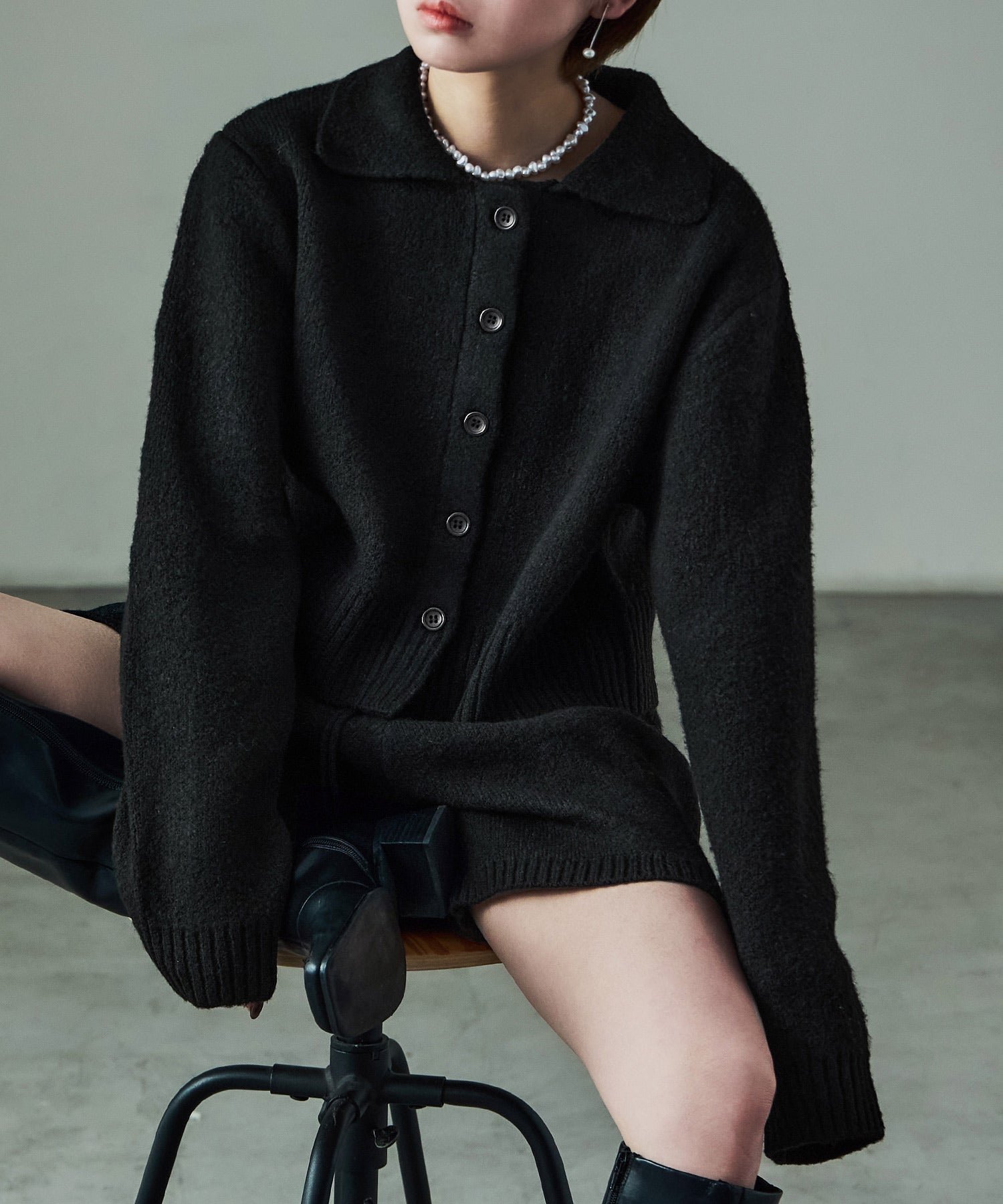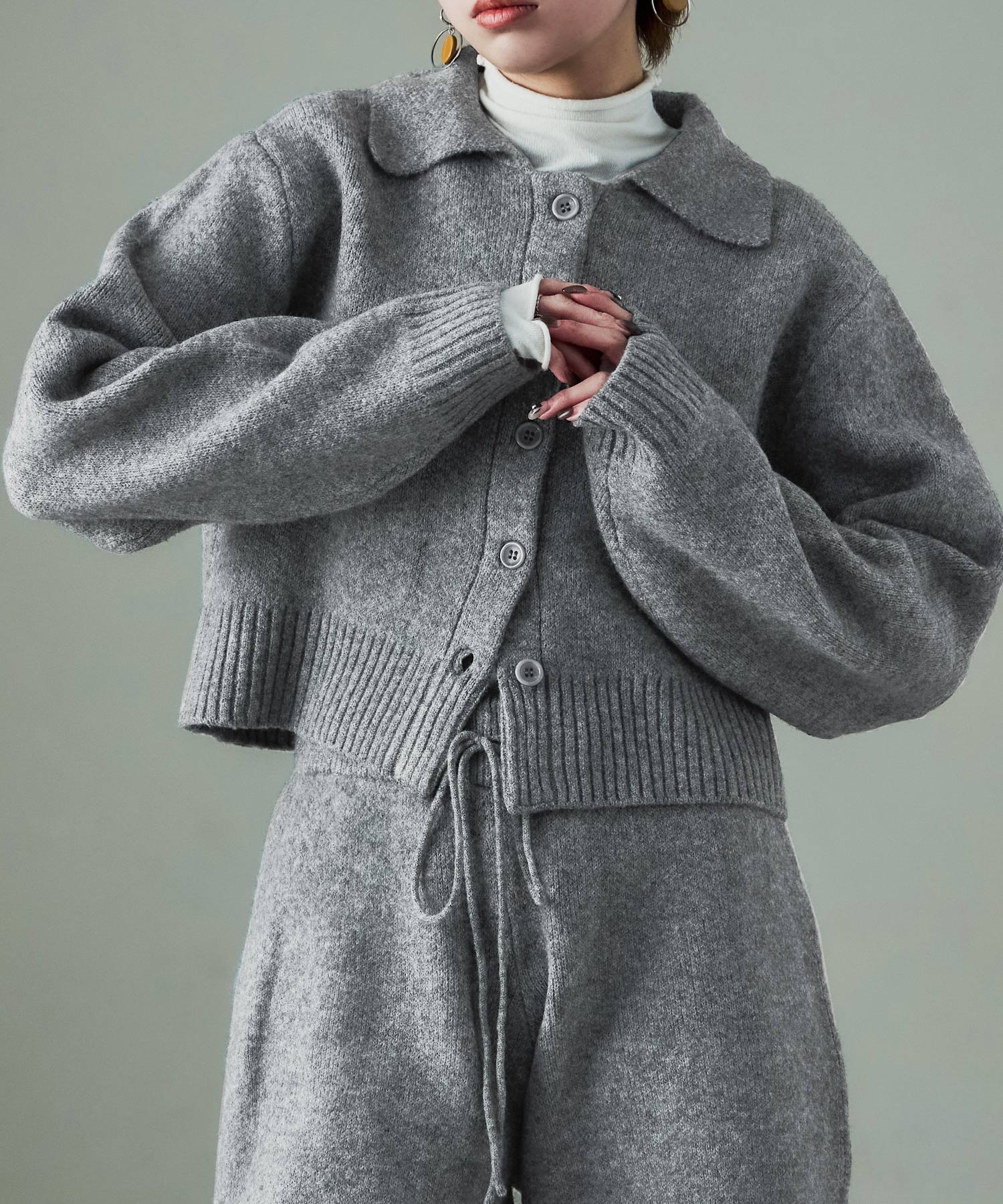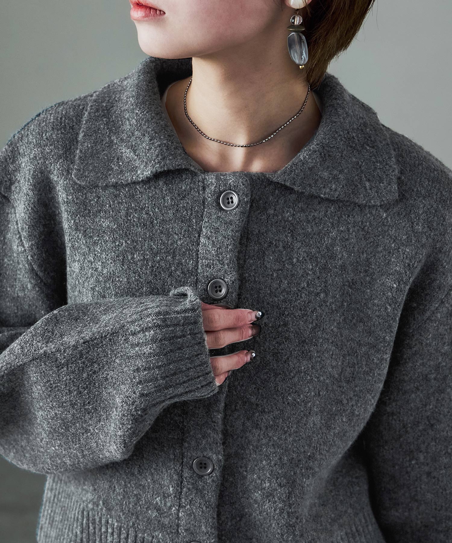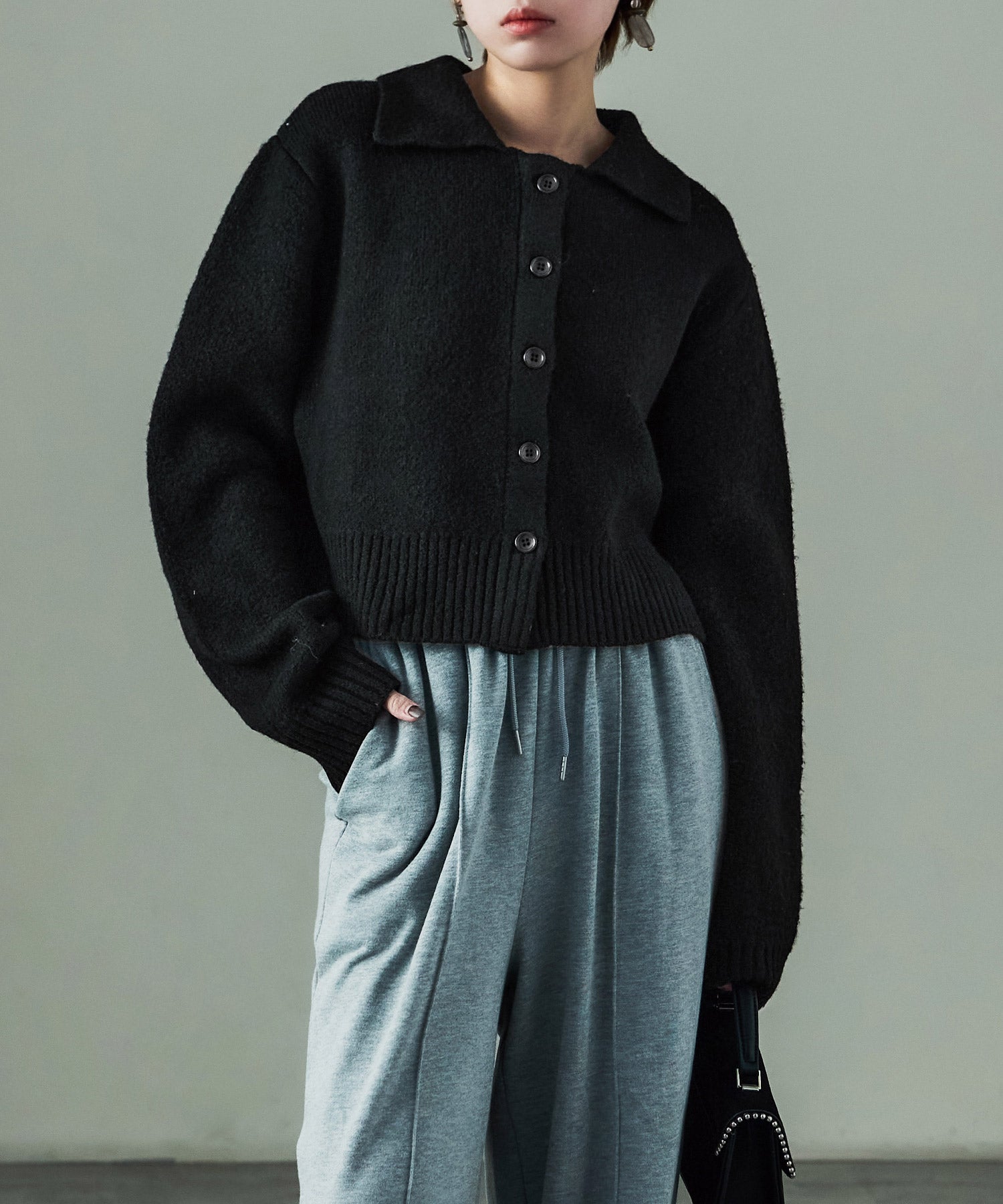 衿付きデザインが韓国っぽくて可愛いショート丈のニットカーディガン。