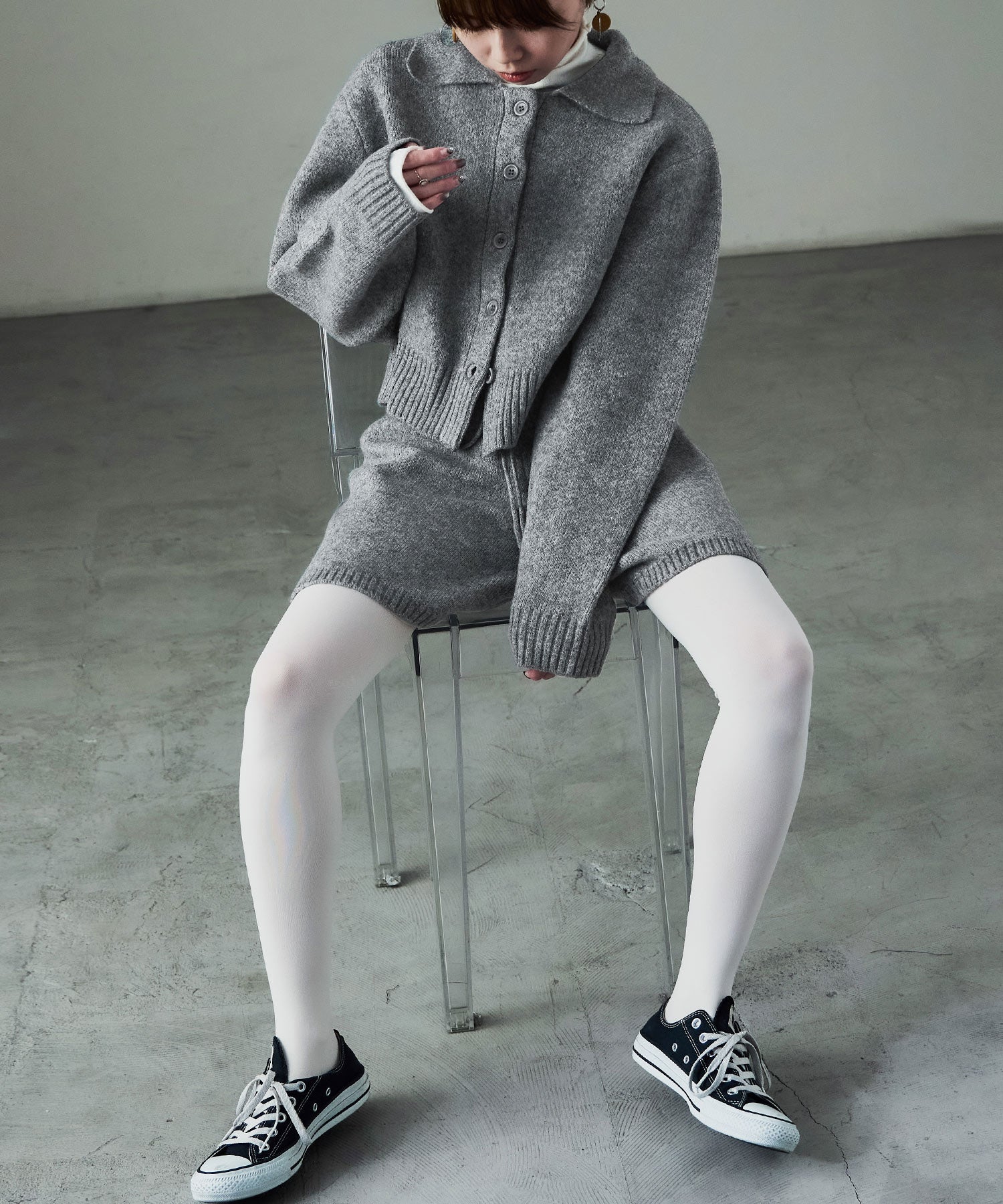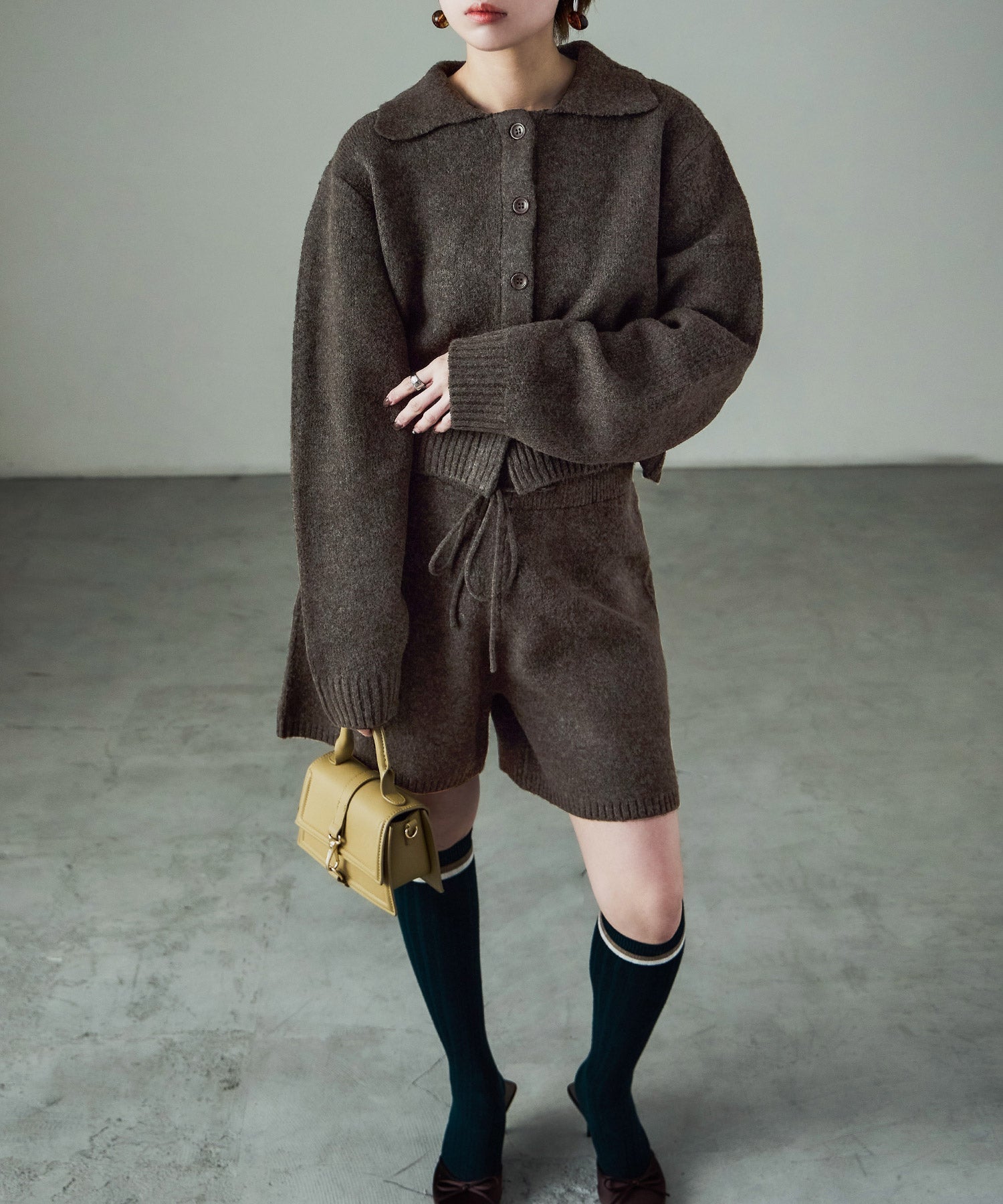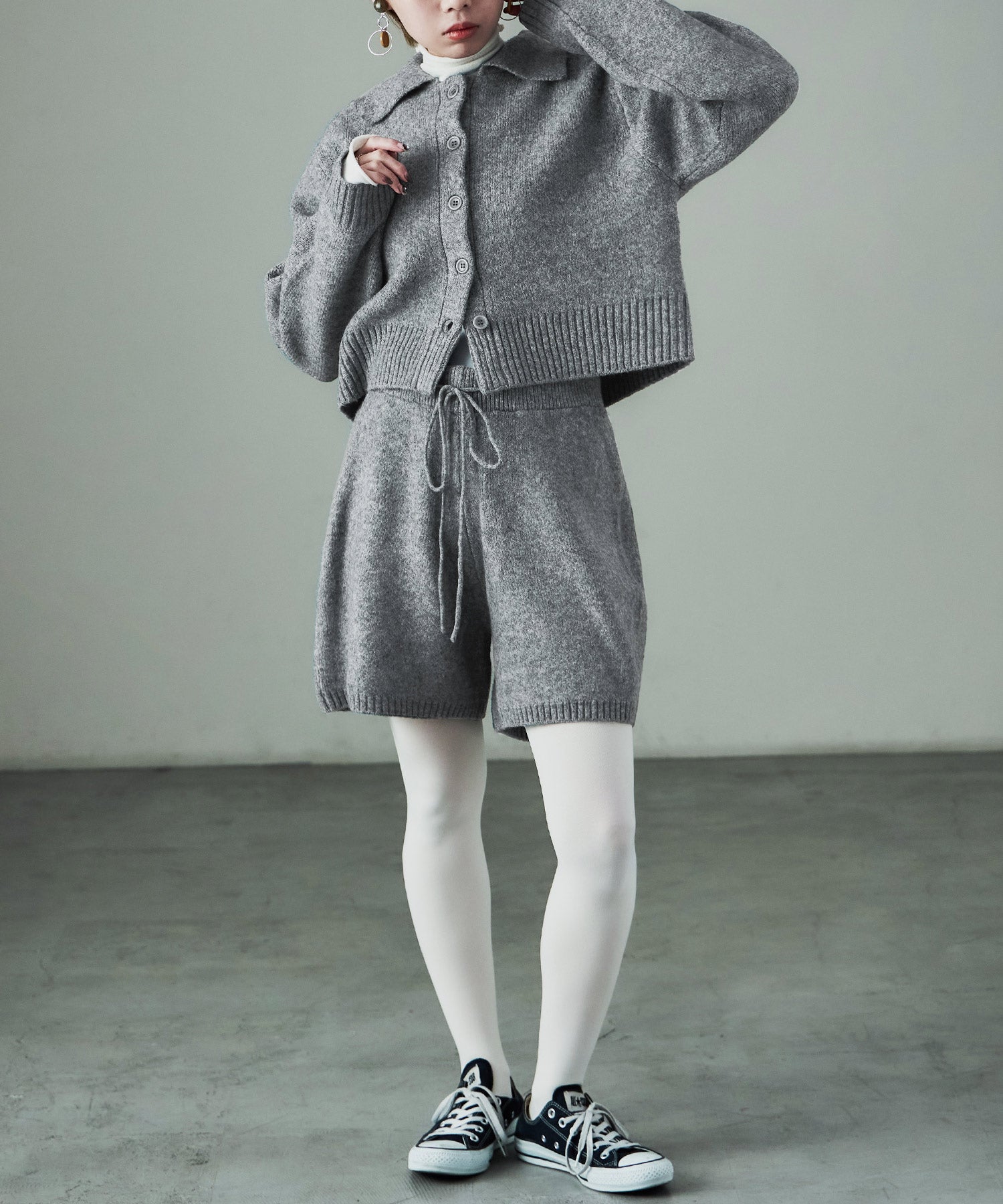 同素材のft0230008744(メランジニット ショートパンツ)とのセットアップでの着用が可愛い。