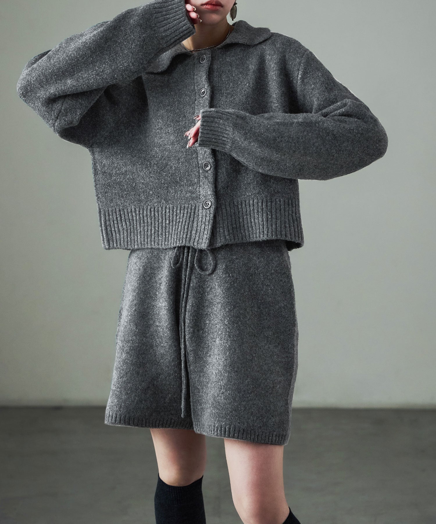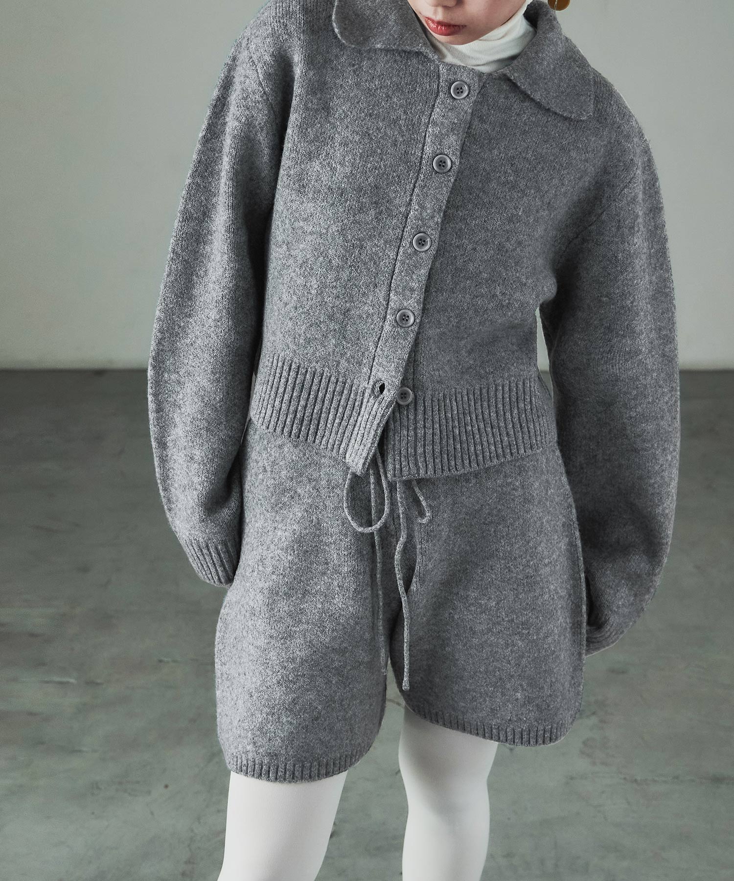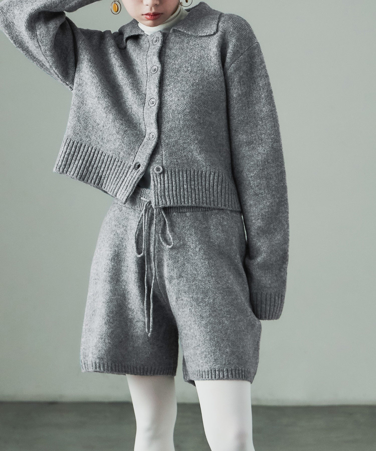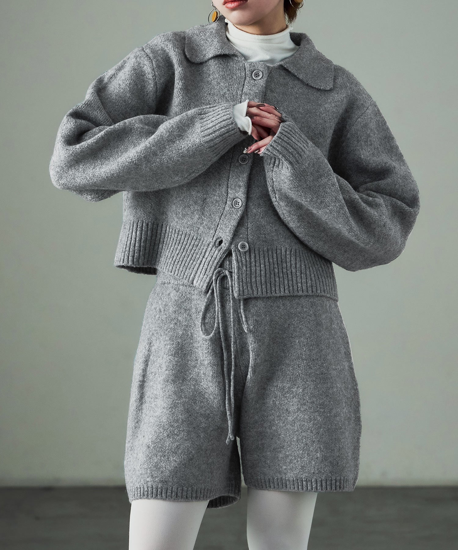 同素材のft0230008743(メランジニット クロップドカーディガン)とのセットアップでの着用が可愛い。