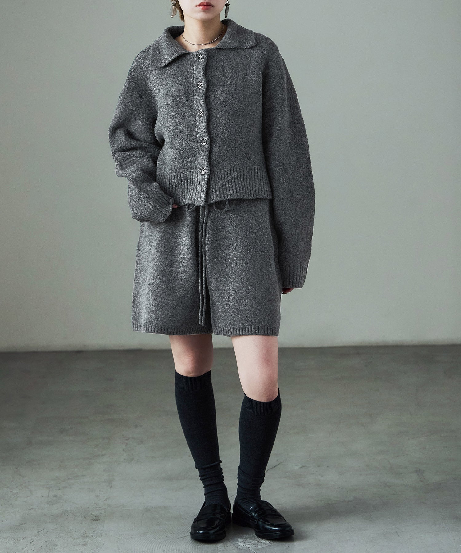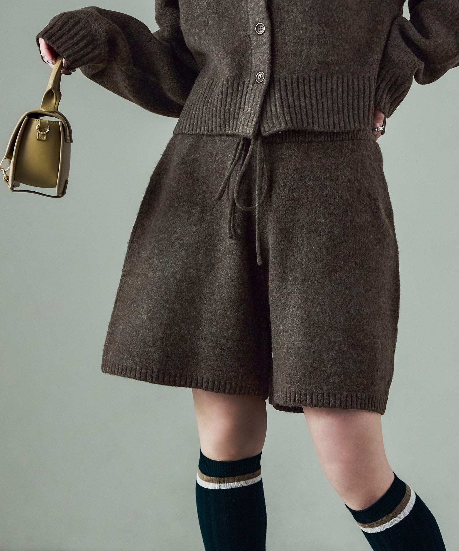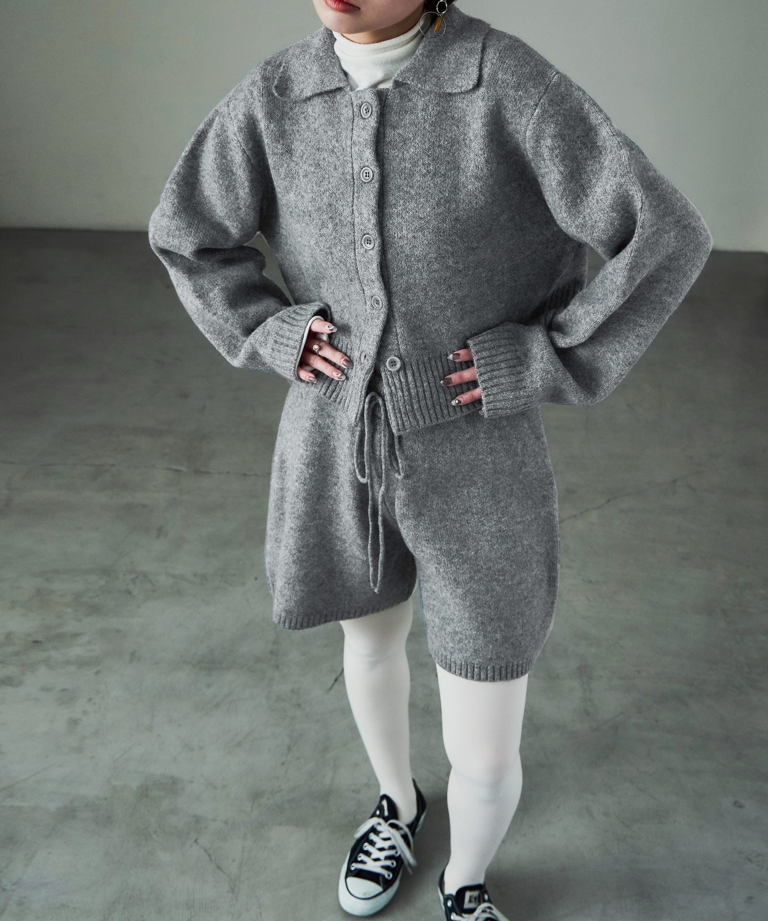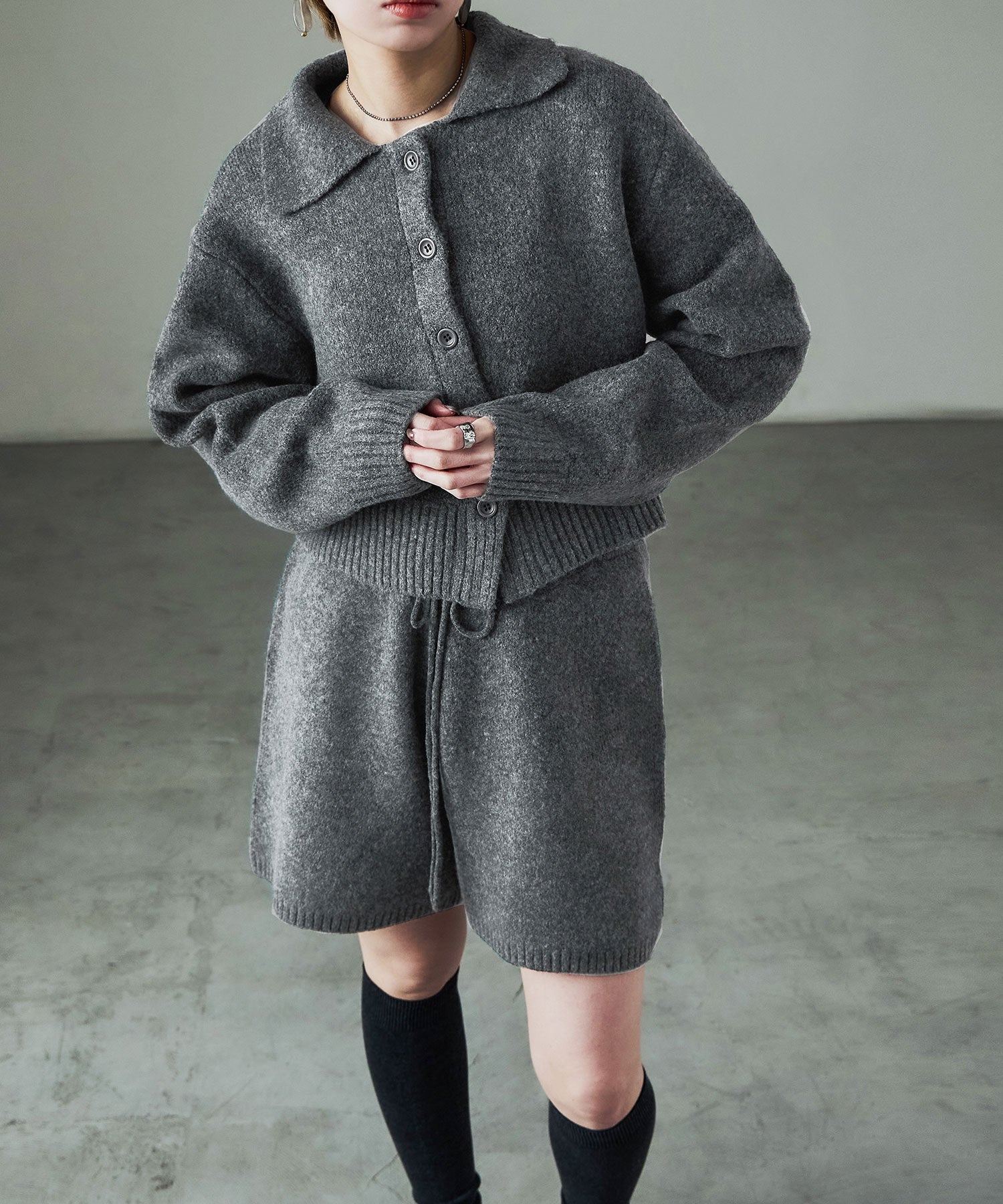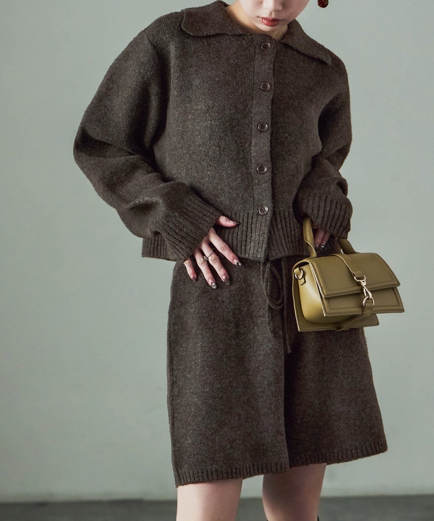 同素材のft0230008743(メランジニット クロップドカーディガン)とのセットアップでの着用が可愛い。