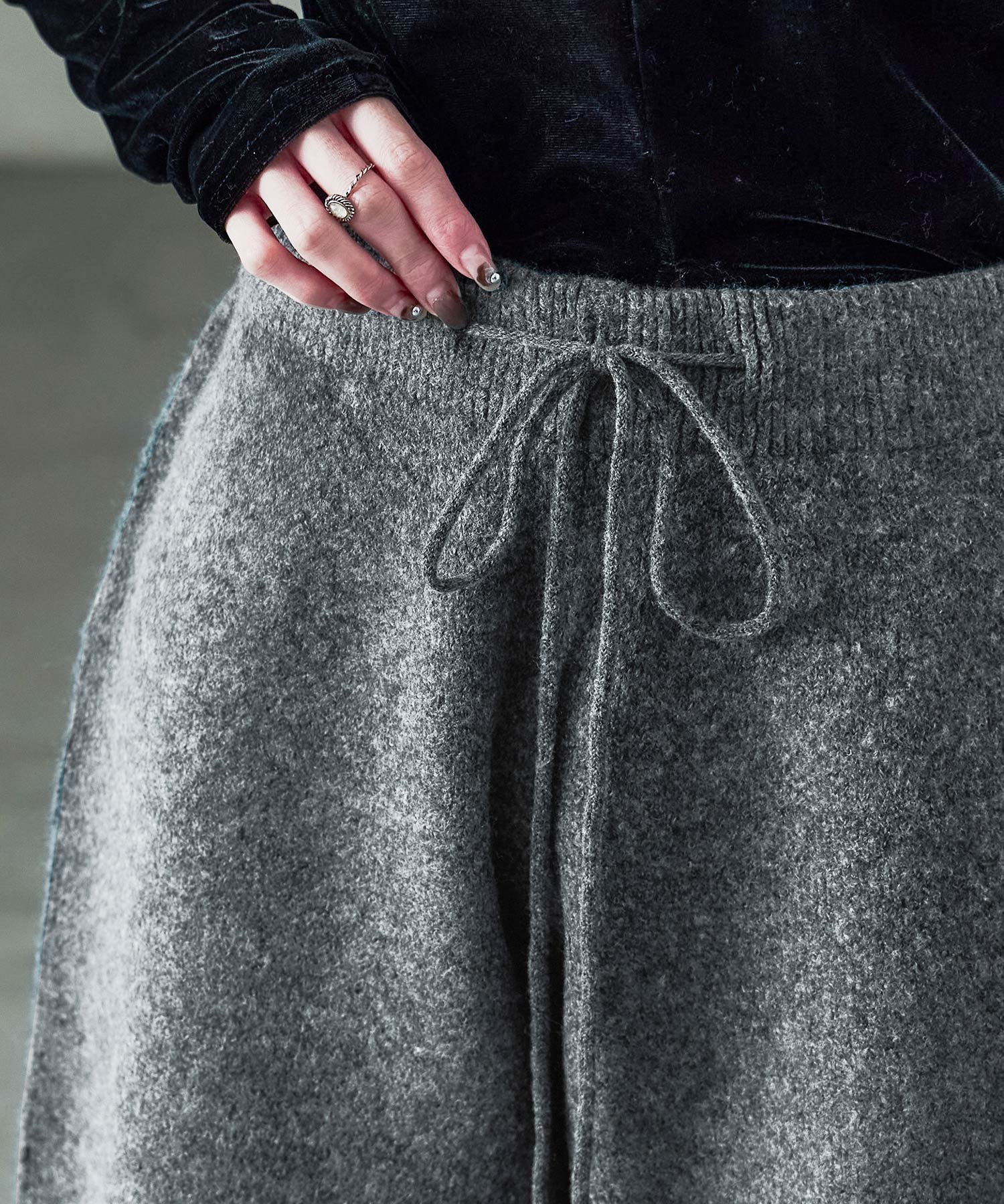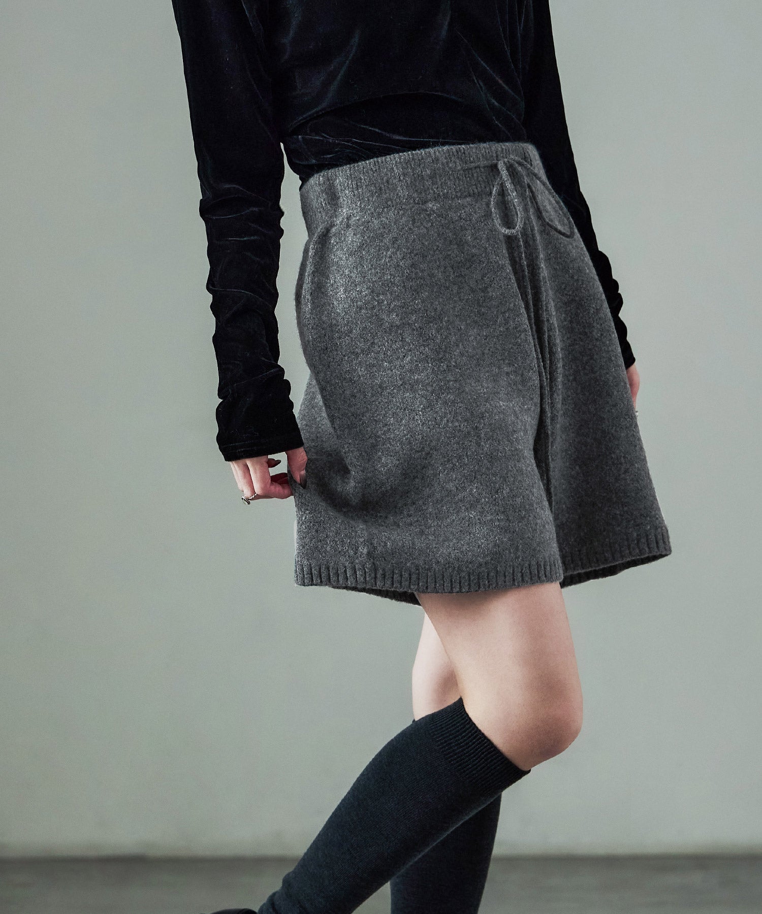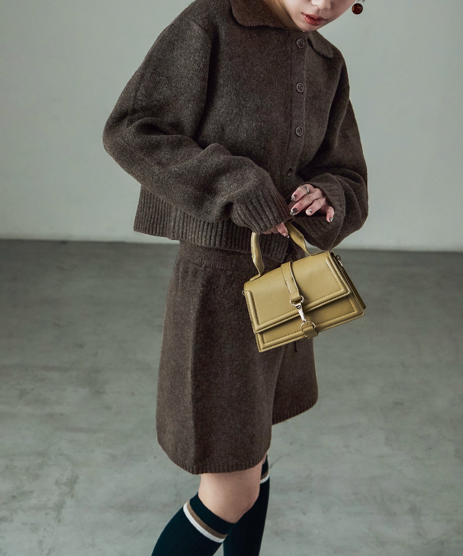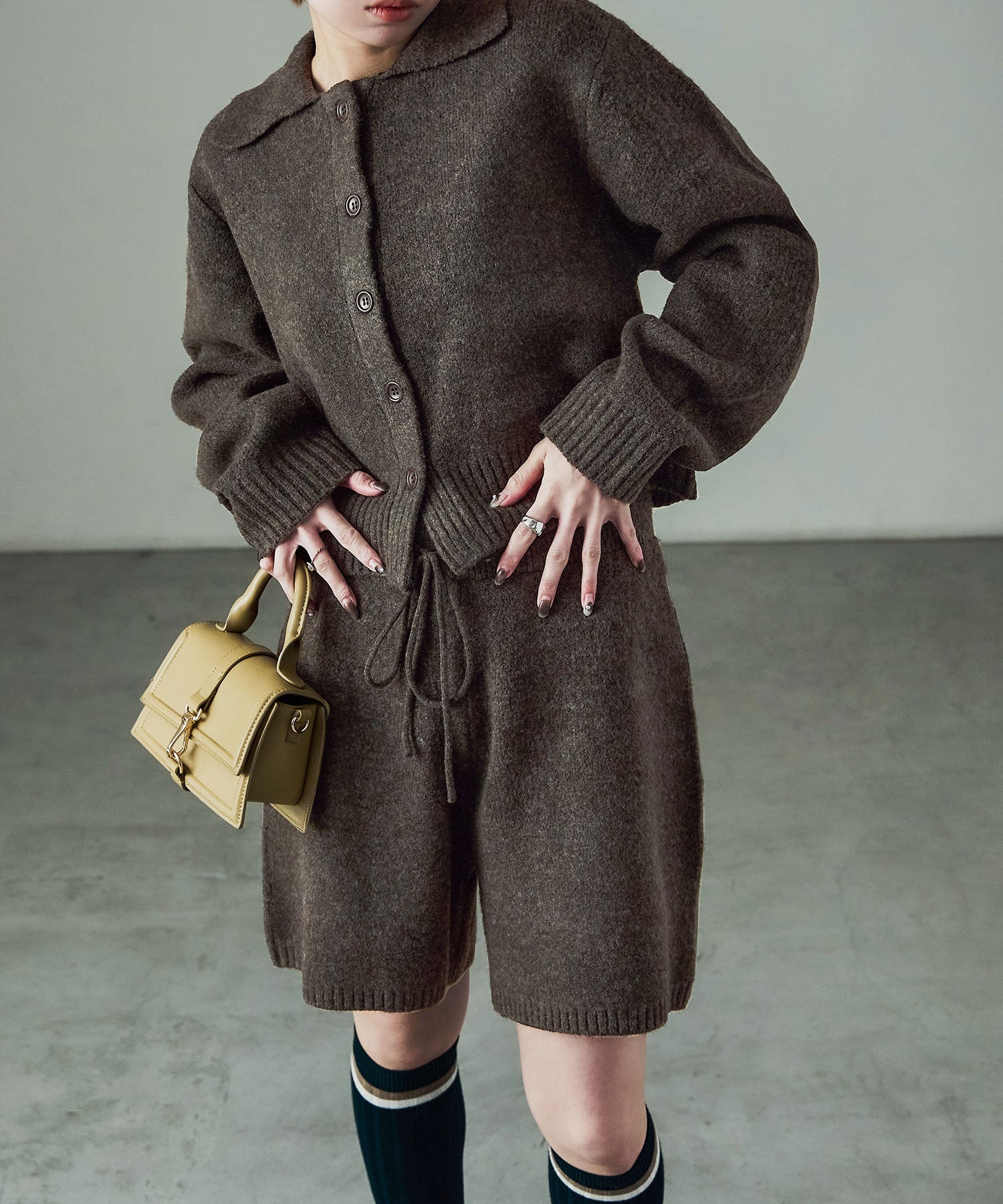 同素材のft0230008743(メランジニット クロップドカーディガン)とのセットアップでの着用が可愛い。