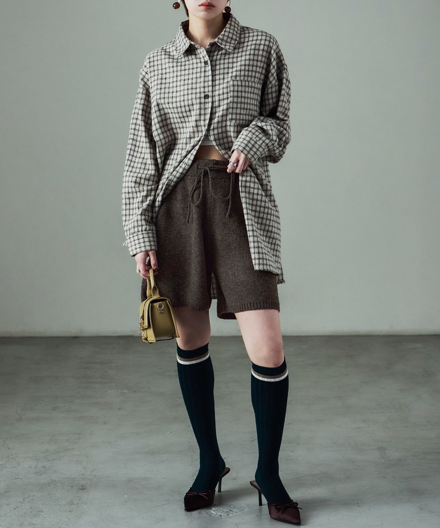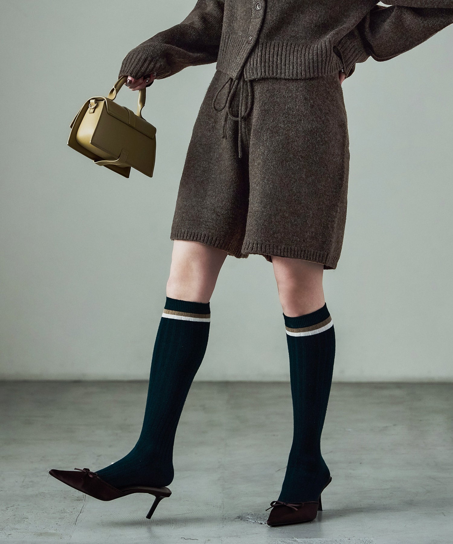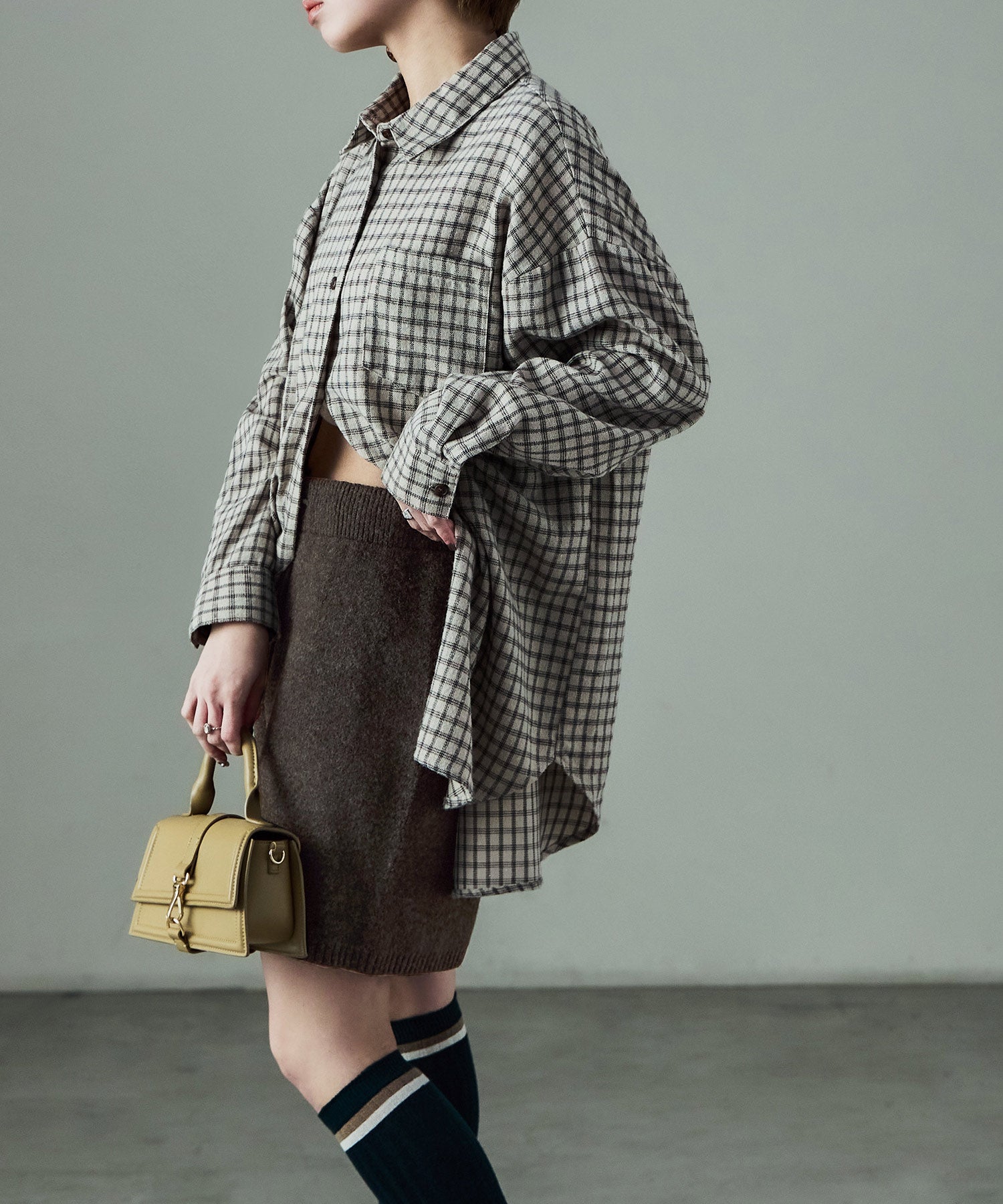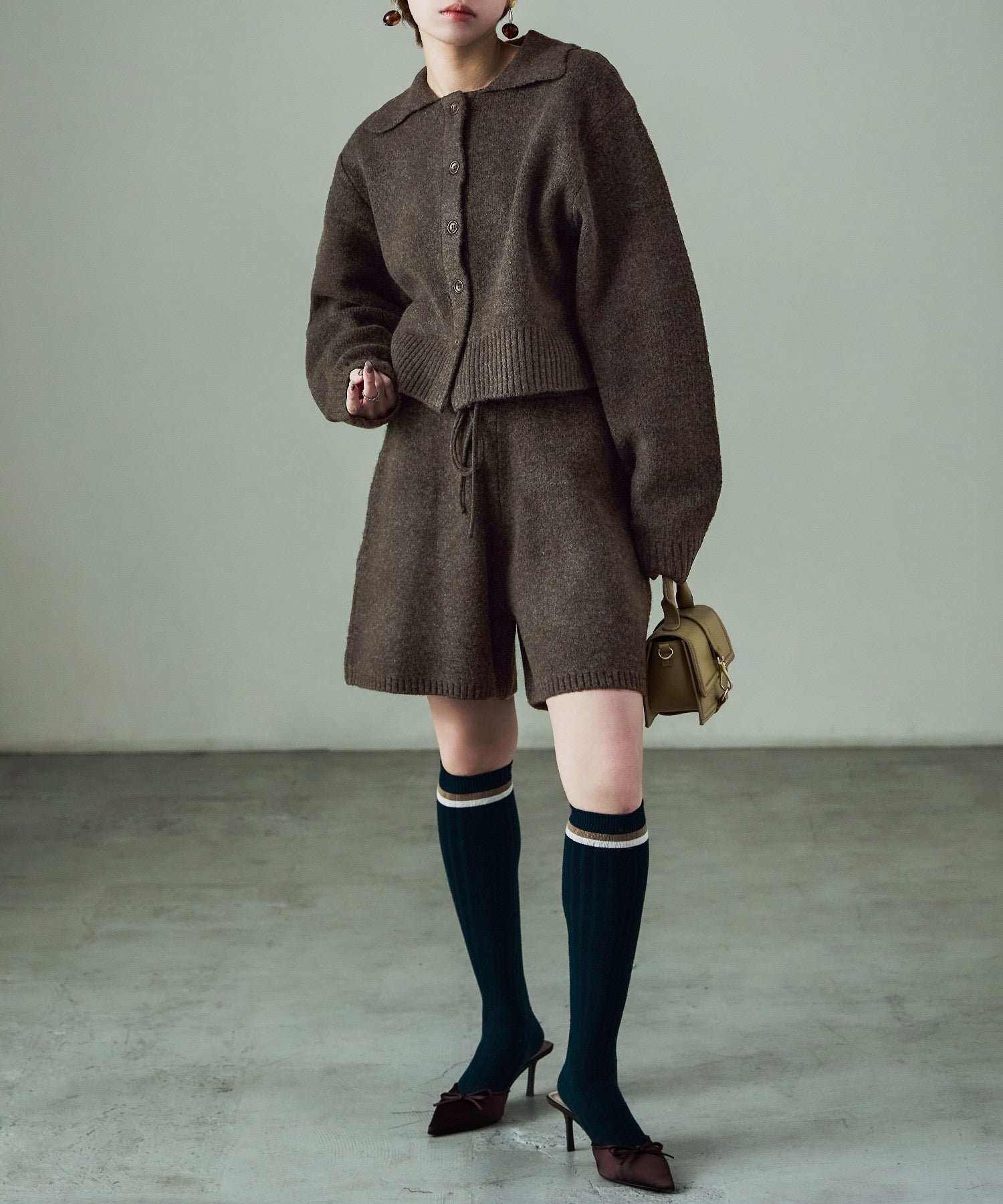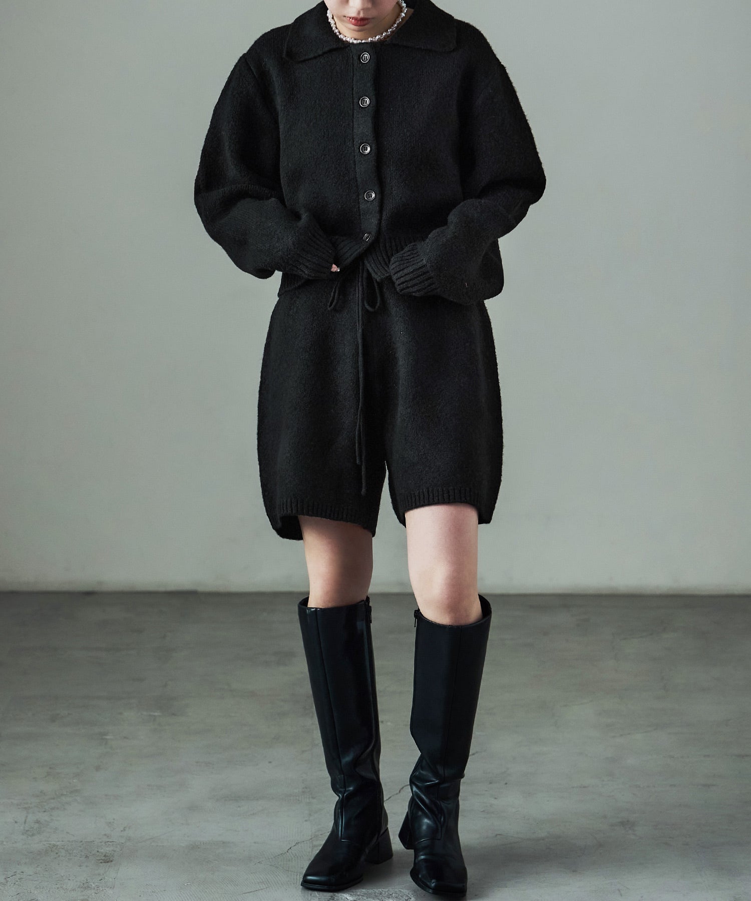 同素材のft0230008743(メランジニット クロップドカーディガン)とのセットアップでの着用が可愛い。