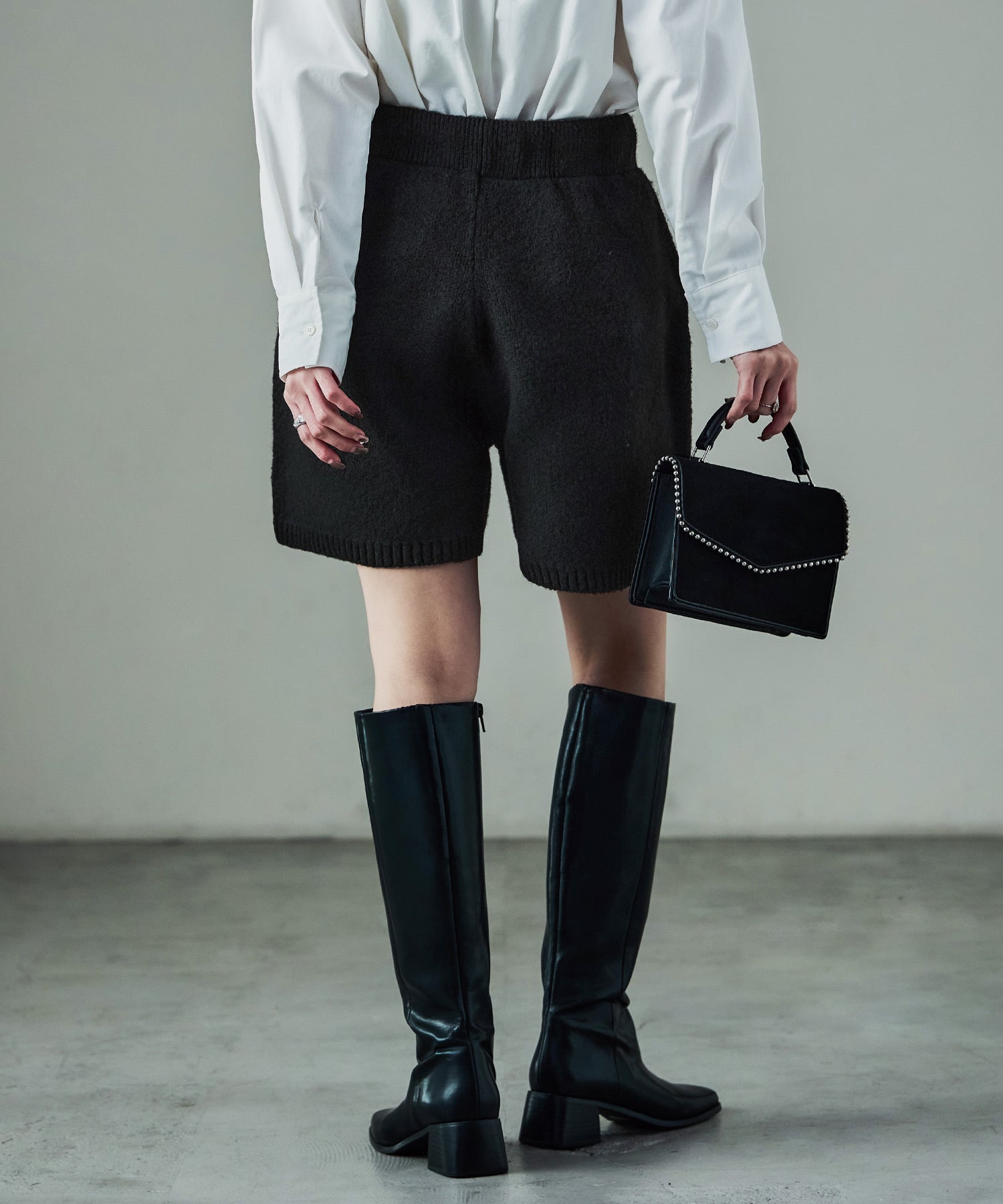 Rname セットアップ対応 メランジニットショートパンツ ゆったり セットアップ ロンパース パンツ 韓国ファッション 低身長 高身長 セーター ニット きれいめ レディース カジュアル