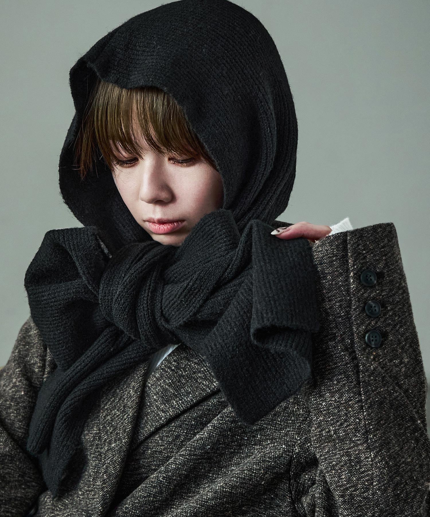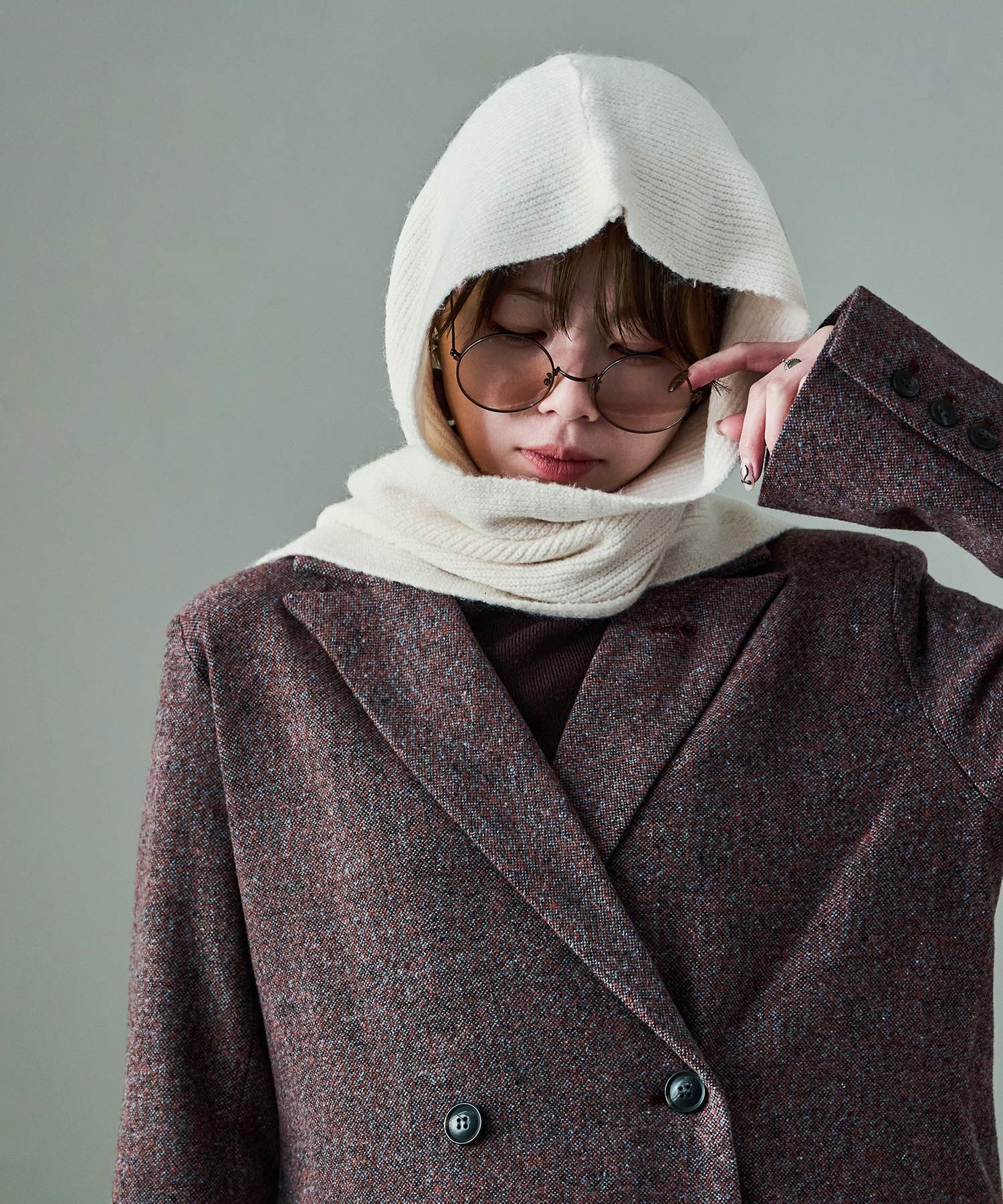暖かさはもちろん、顔周りを立体的に包んでくれる絶妙なデザインで小顔効果も狙える。