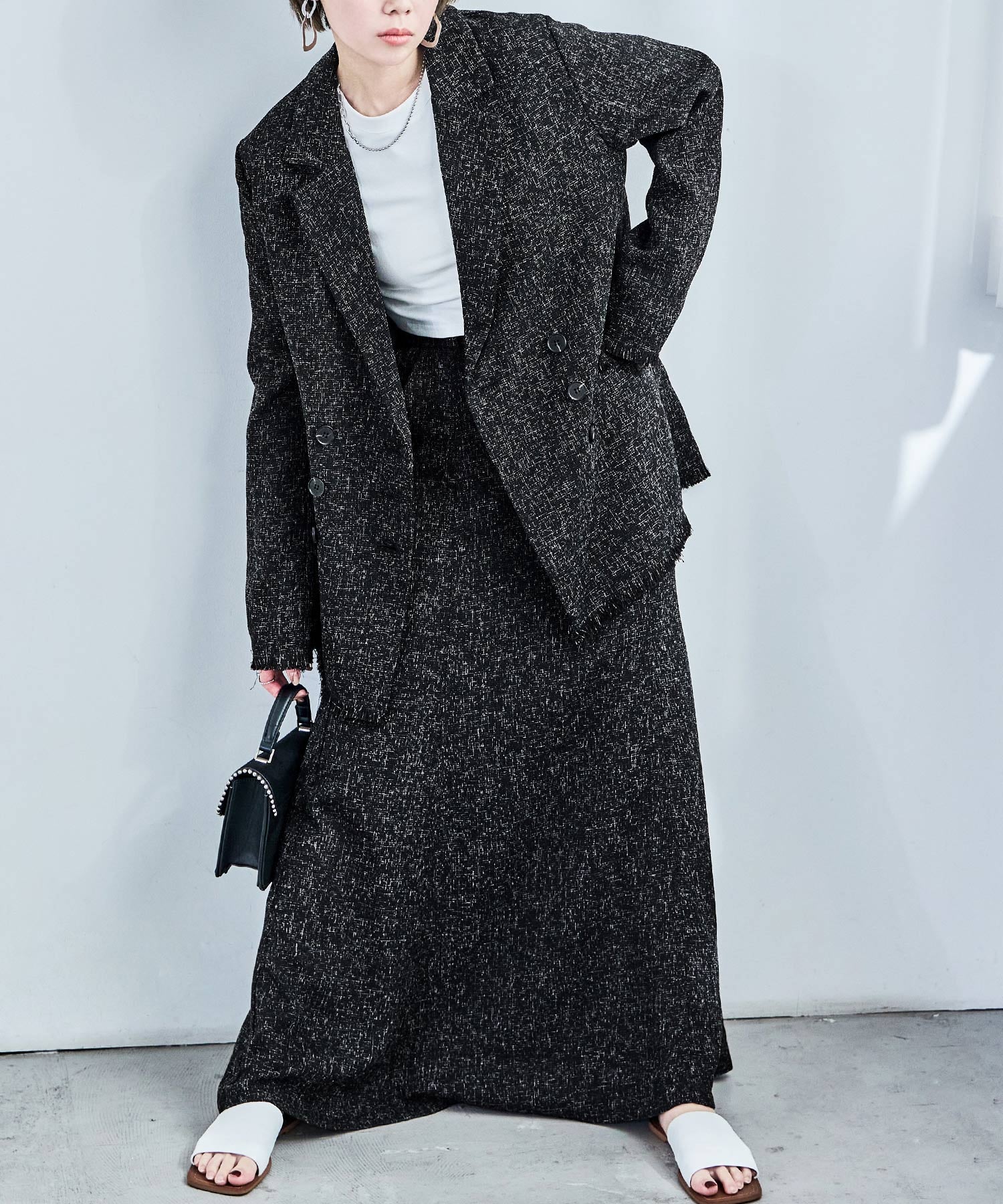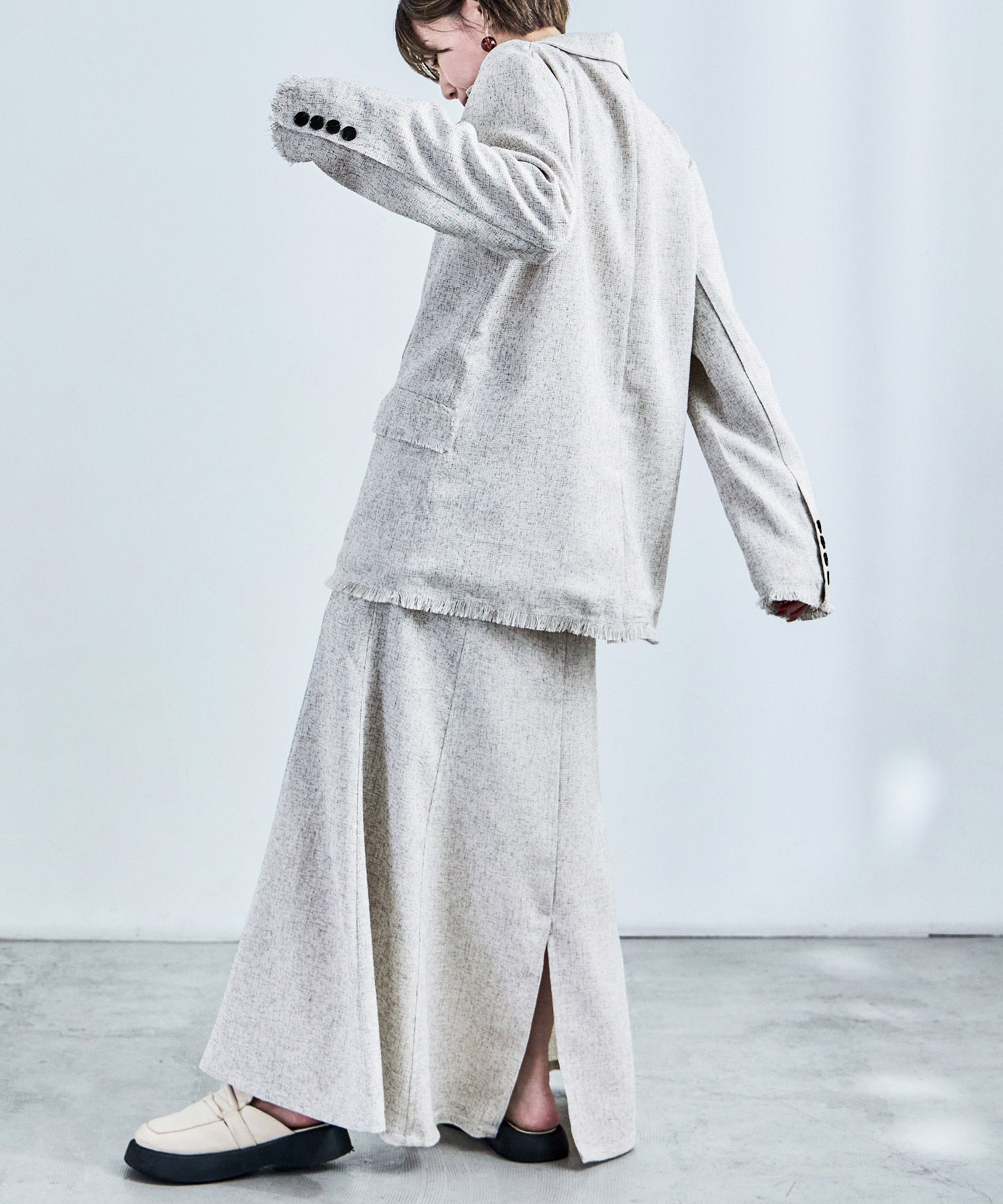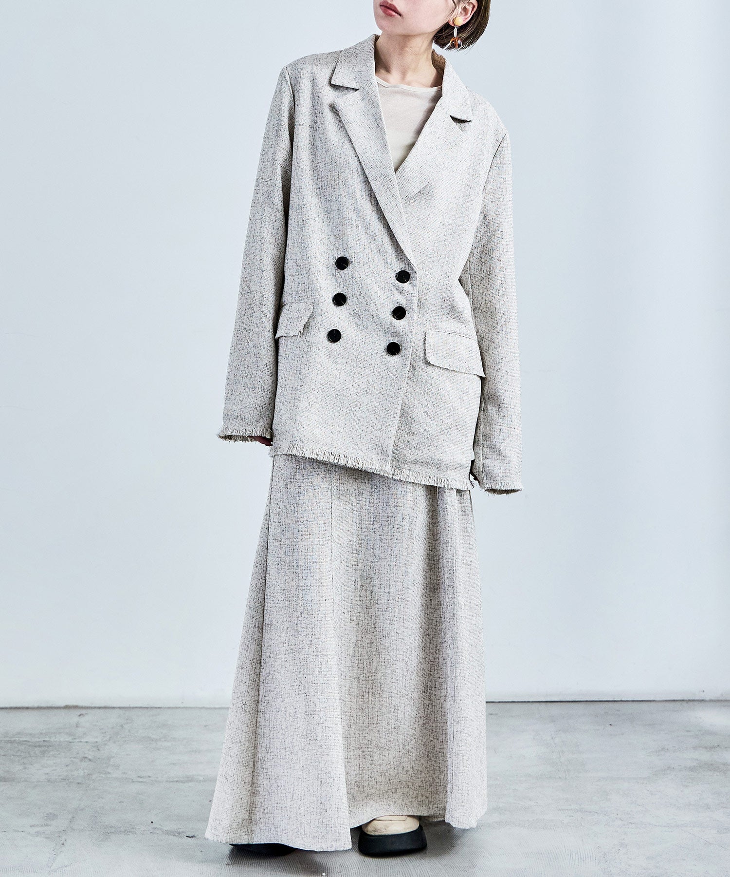 ft0230008939(スラブネップツイードテーラードジャケット)とのセットアップでの着用も可能。