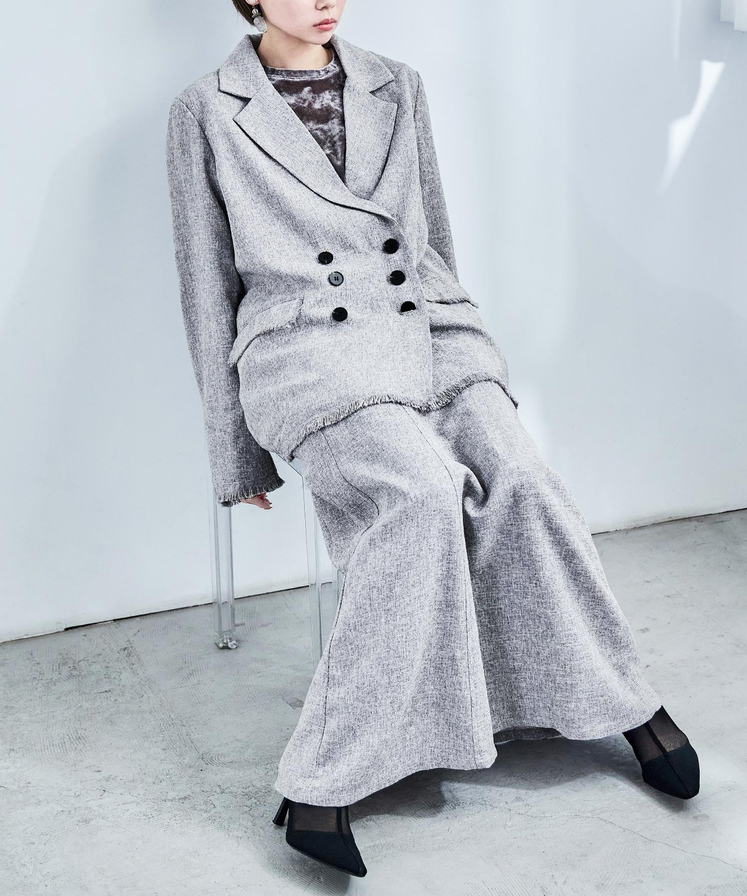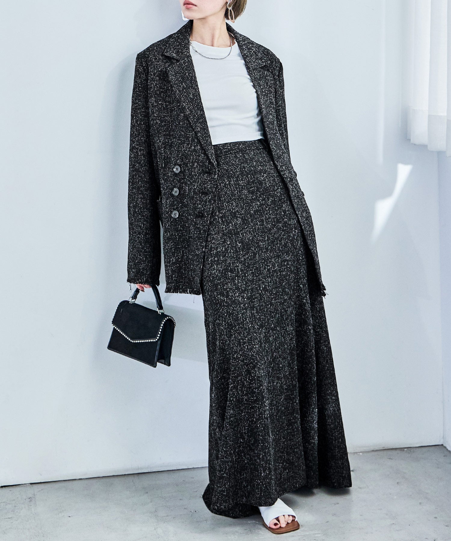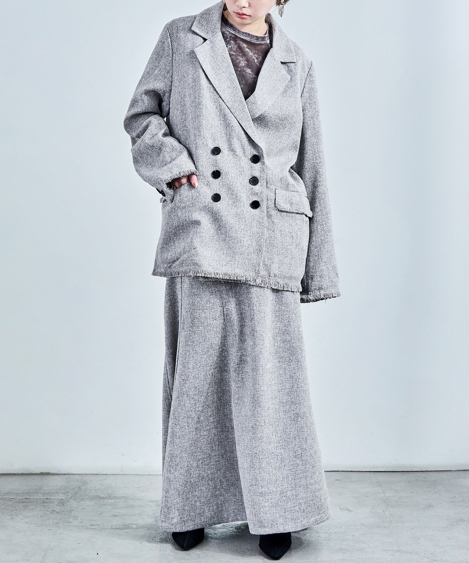 ft0230008939(スラブネップツイードテーラードジャケット)とのセットアップでの着用も可能。