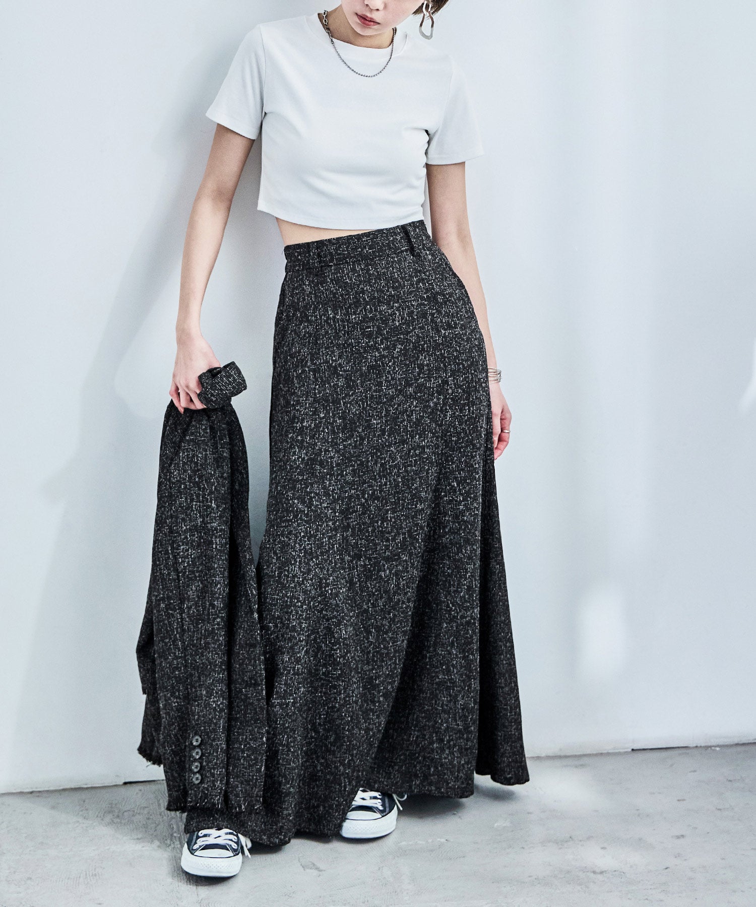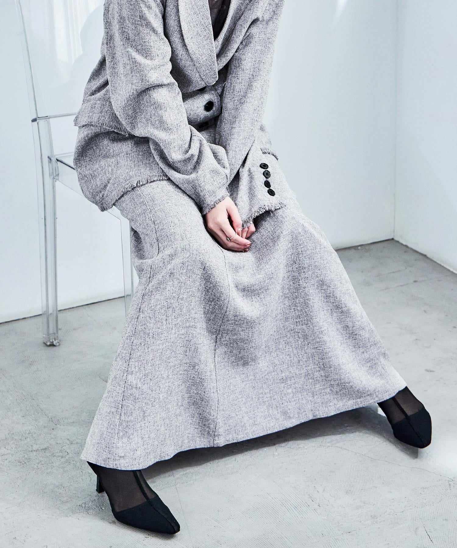Zname セットアップ可能 スラブネップ ツイードマーメイドロングスカート