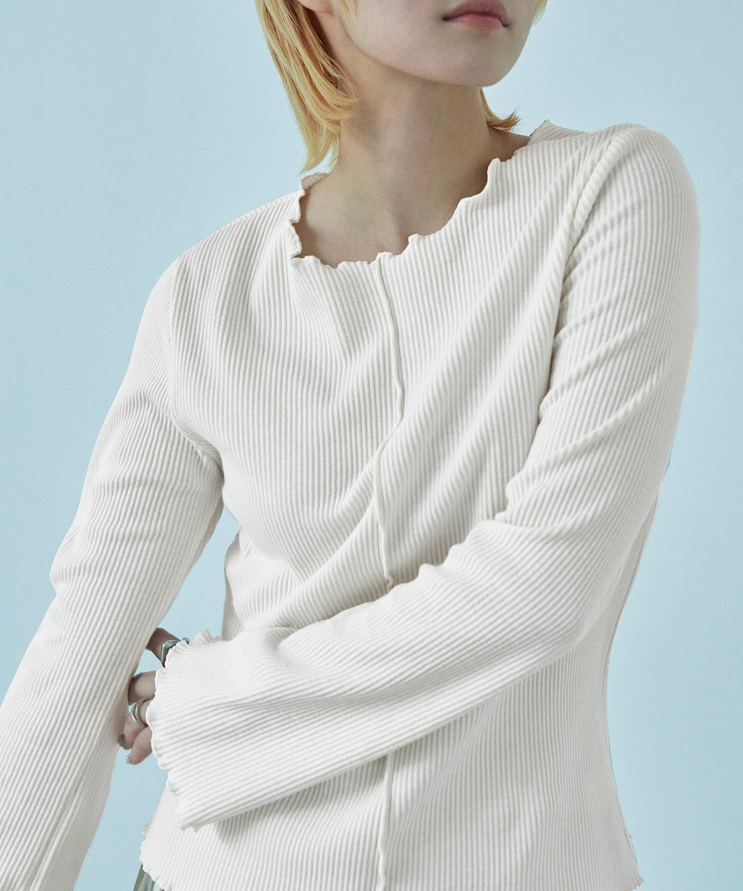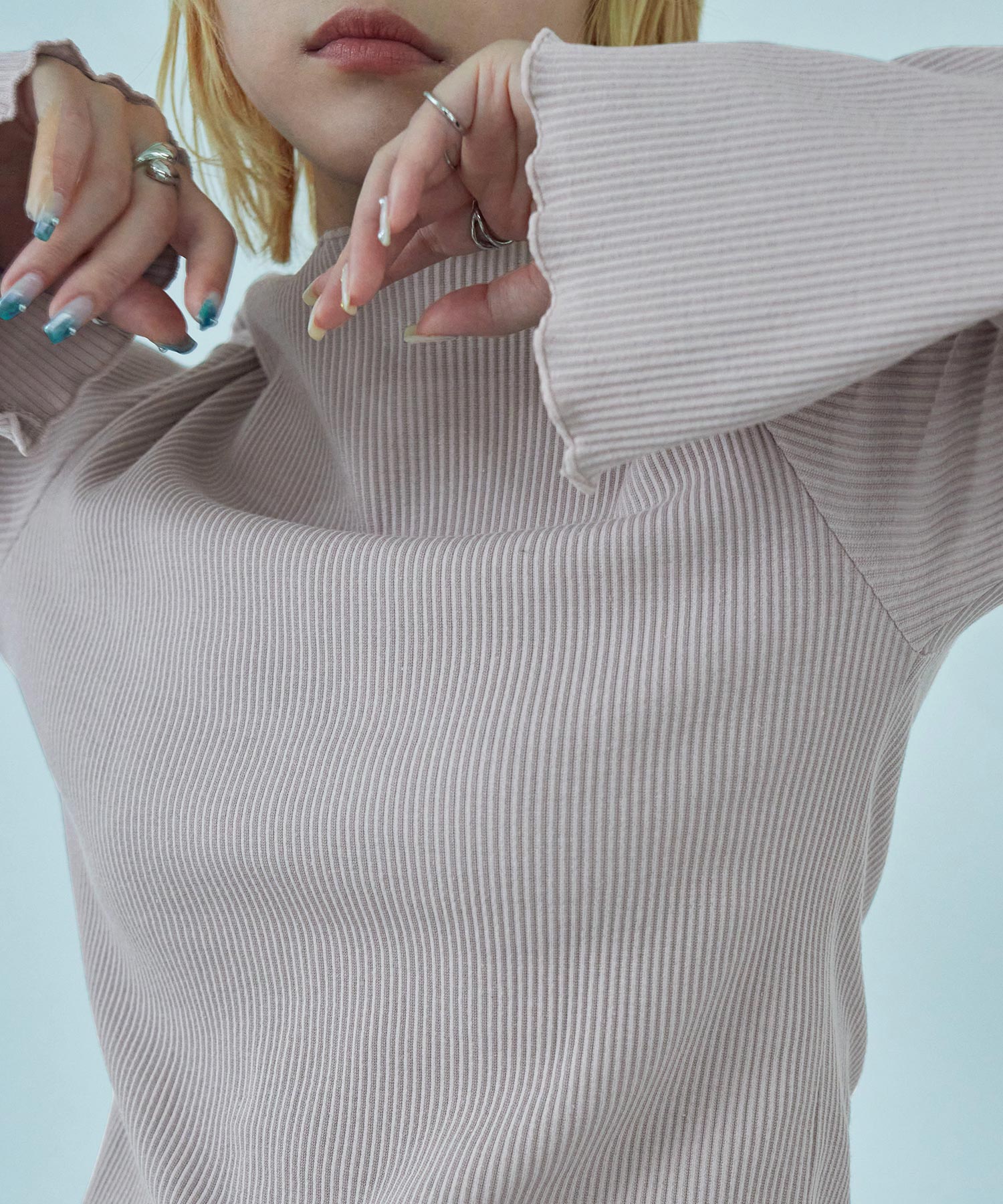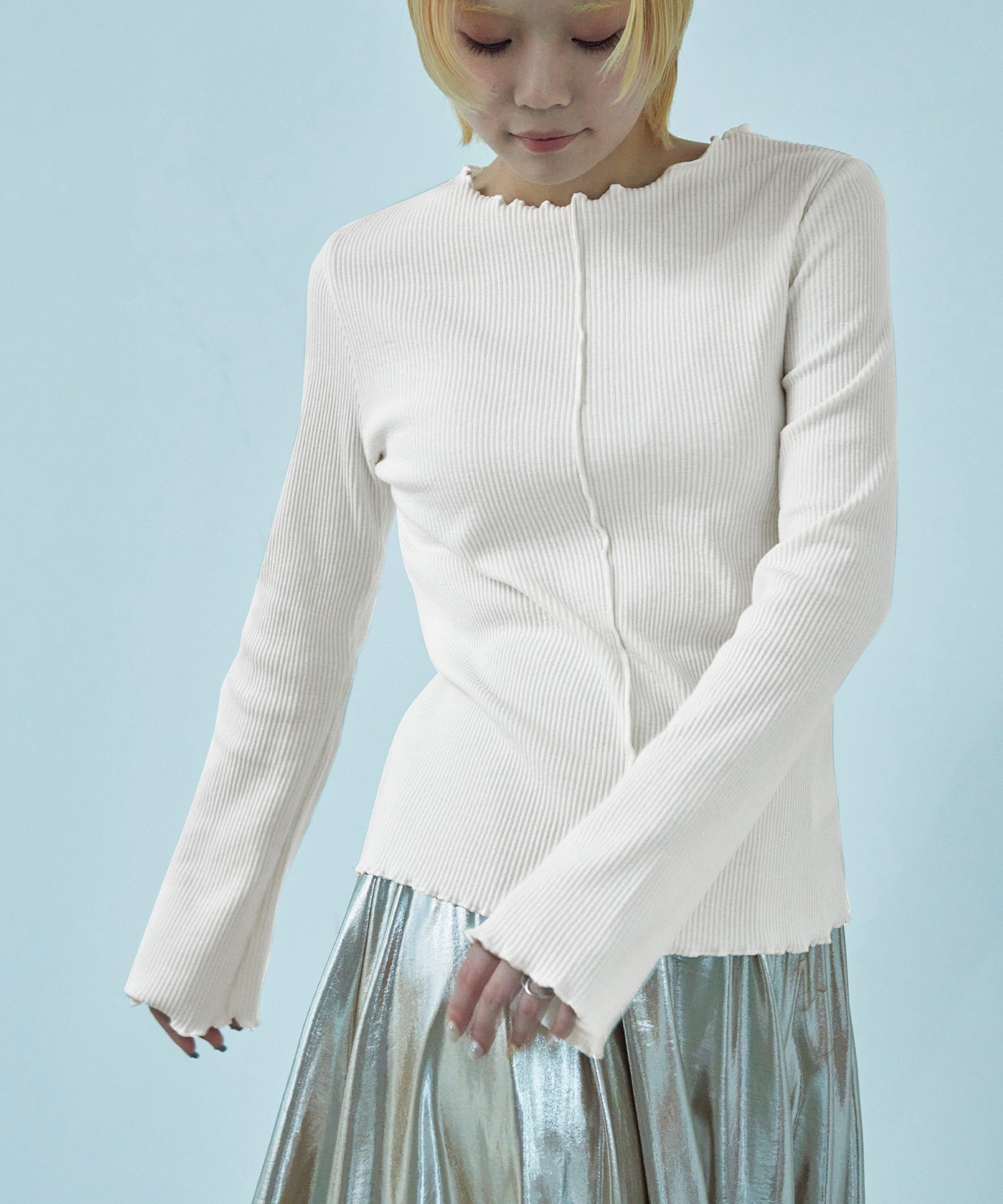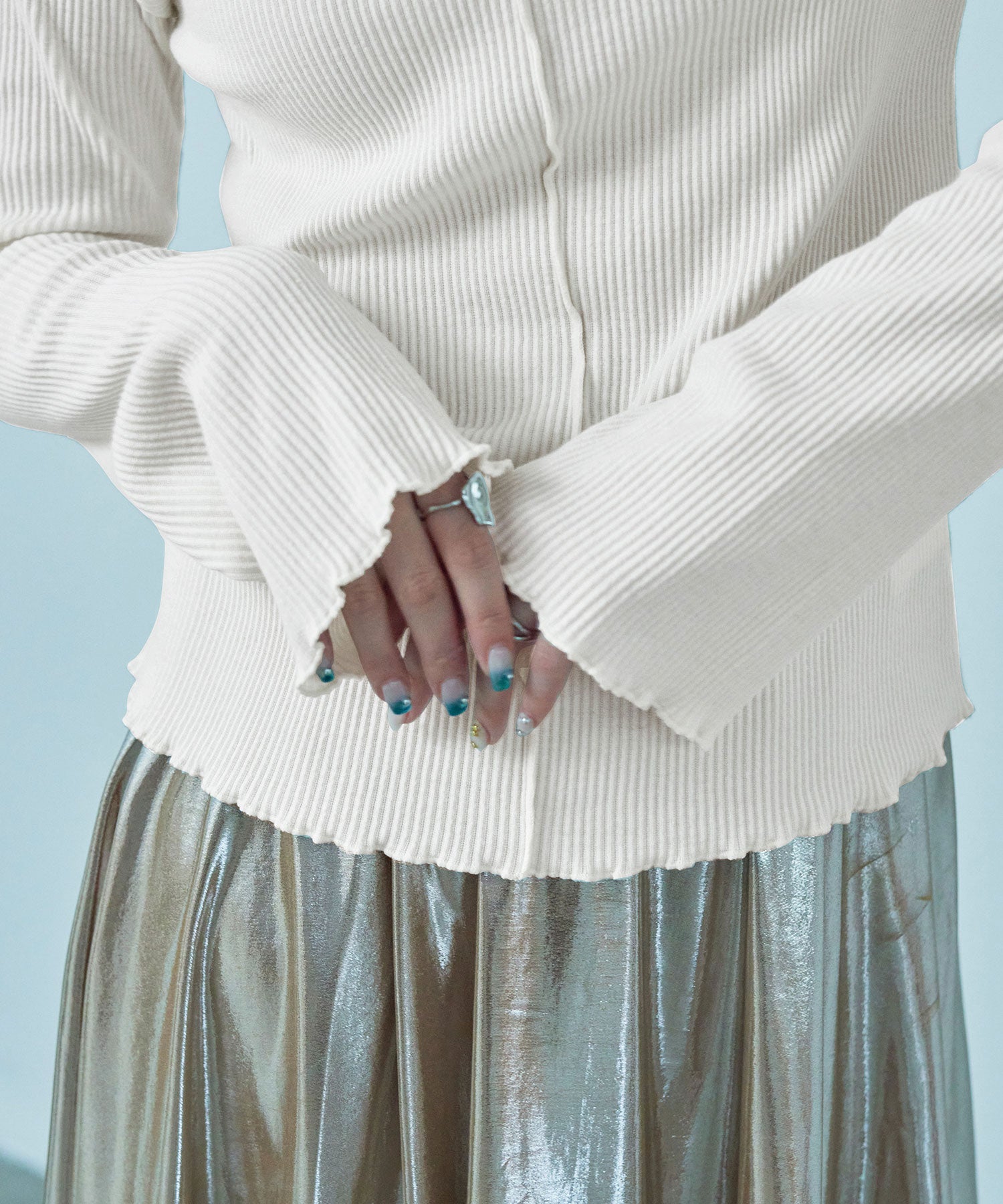 フリフリのメロウデザインと、リブの素材感で、かっちりし過ぎずカジュアルにもなり過ぎないので幅広いシーンで着回せる。