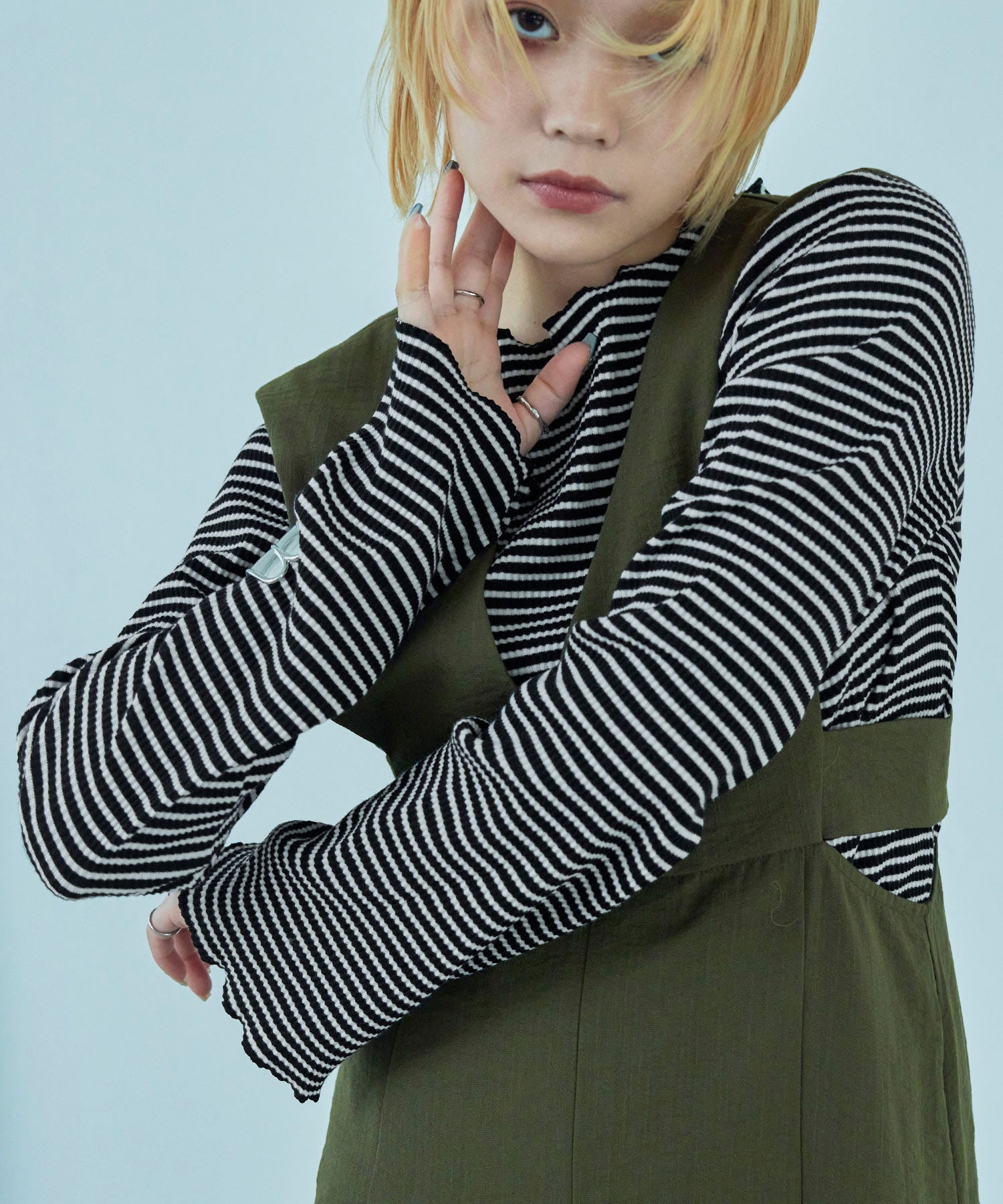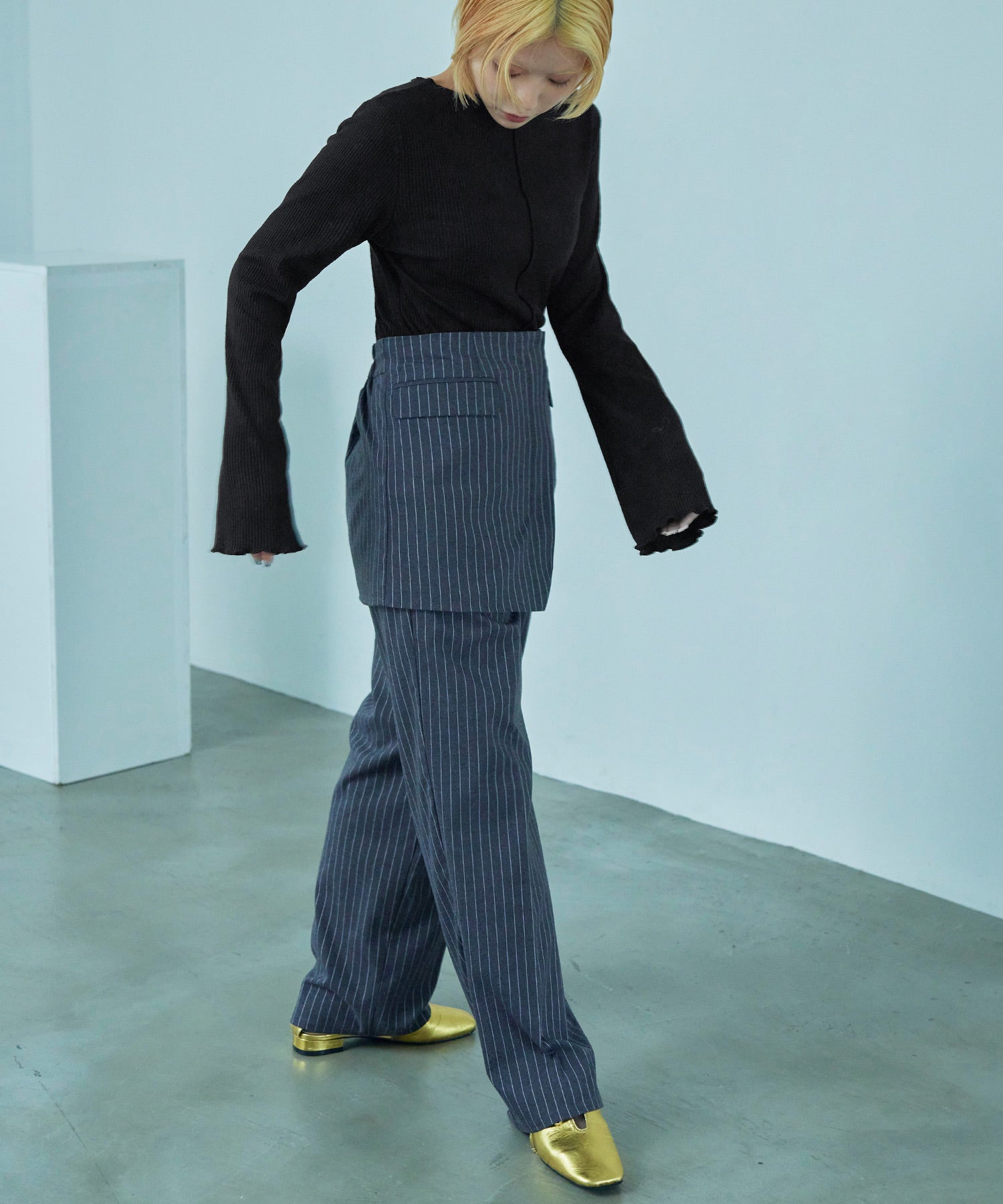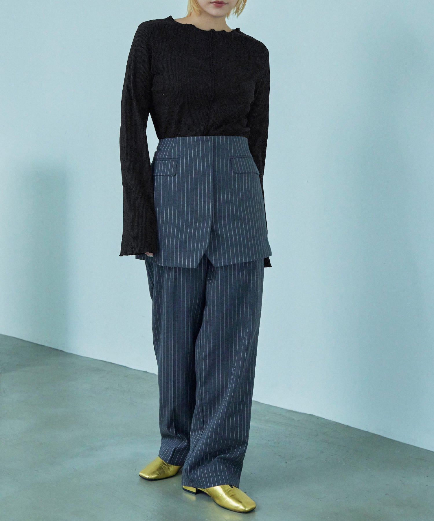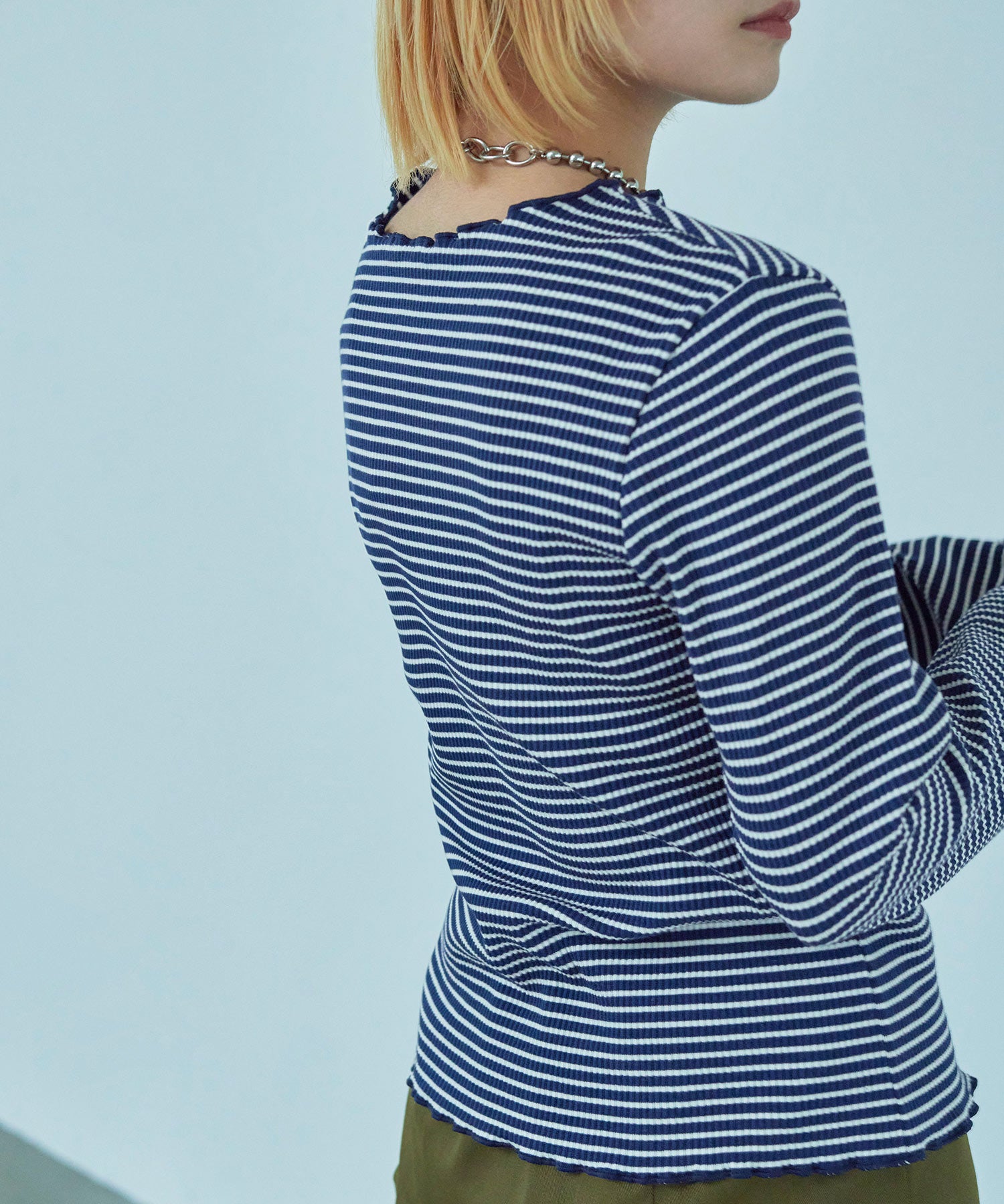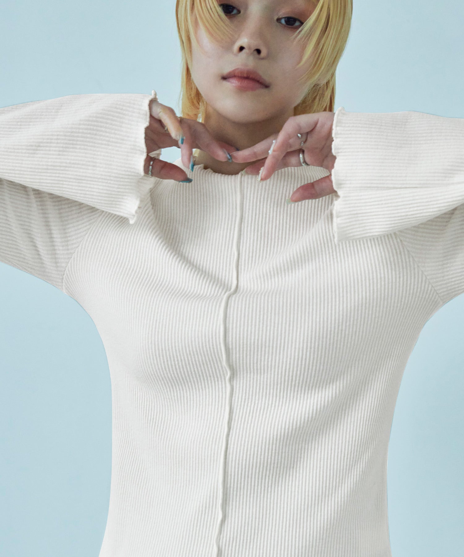フリフリのメロウデザインと、リブの素材感で、かっちりし過ぎずカジュアルにもなり過ぎないので幅広いシーンで着回せる。