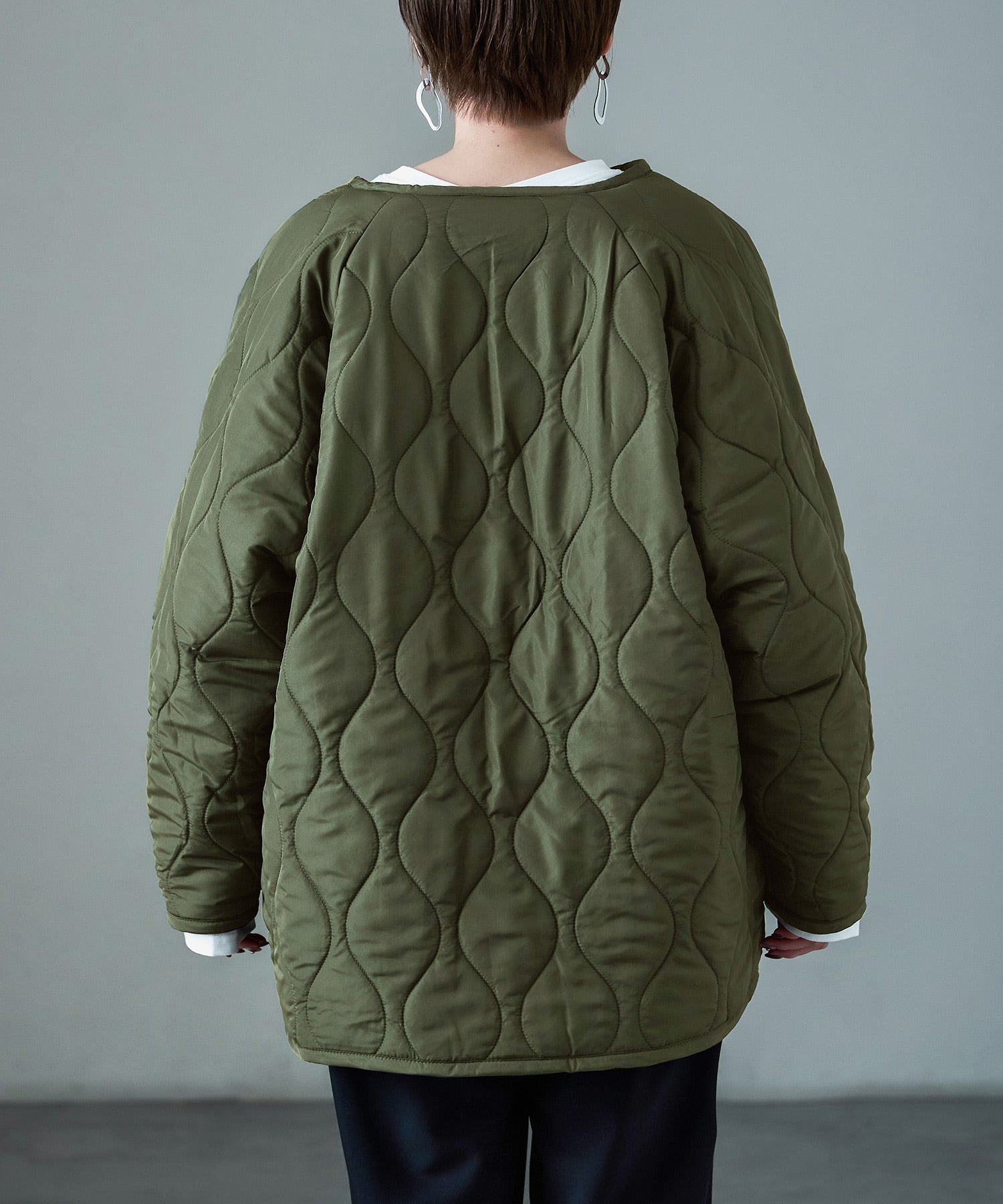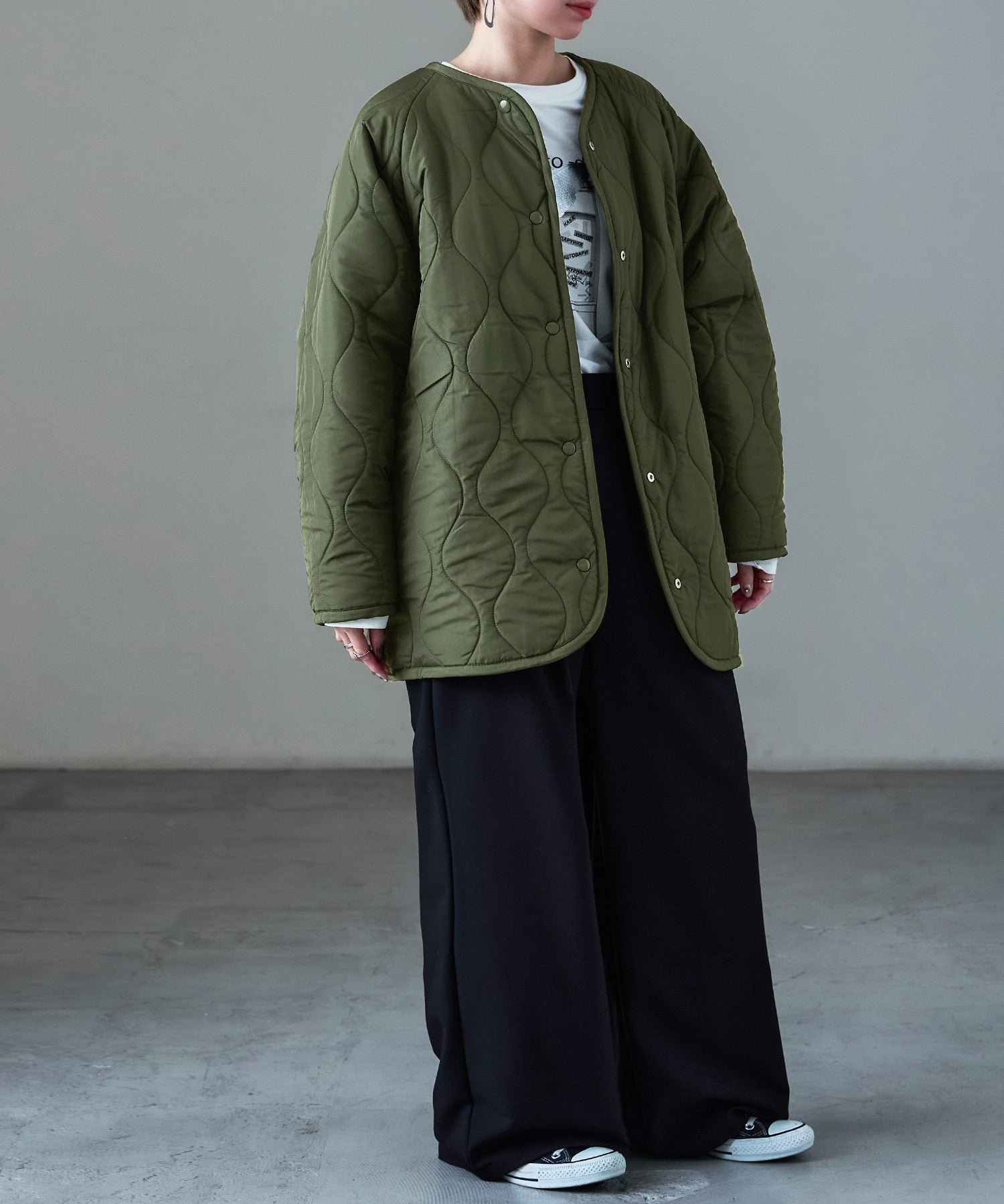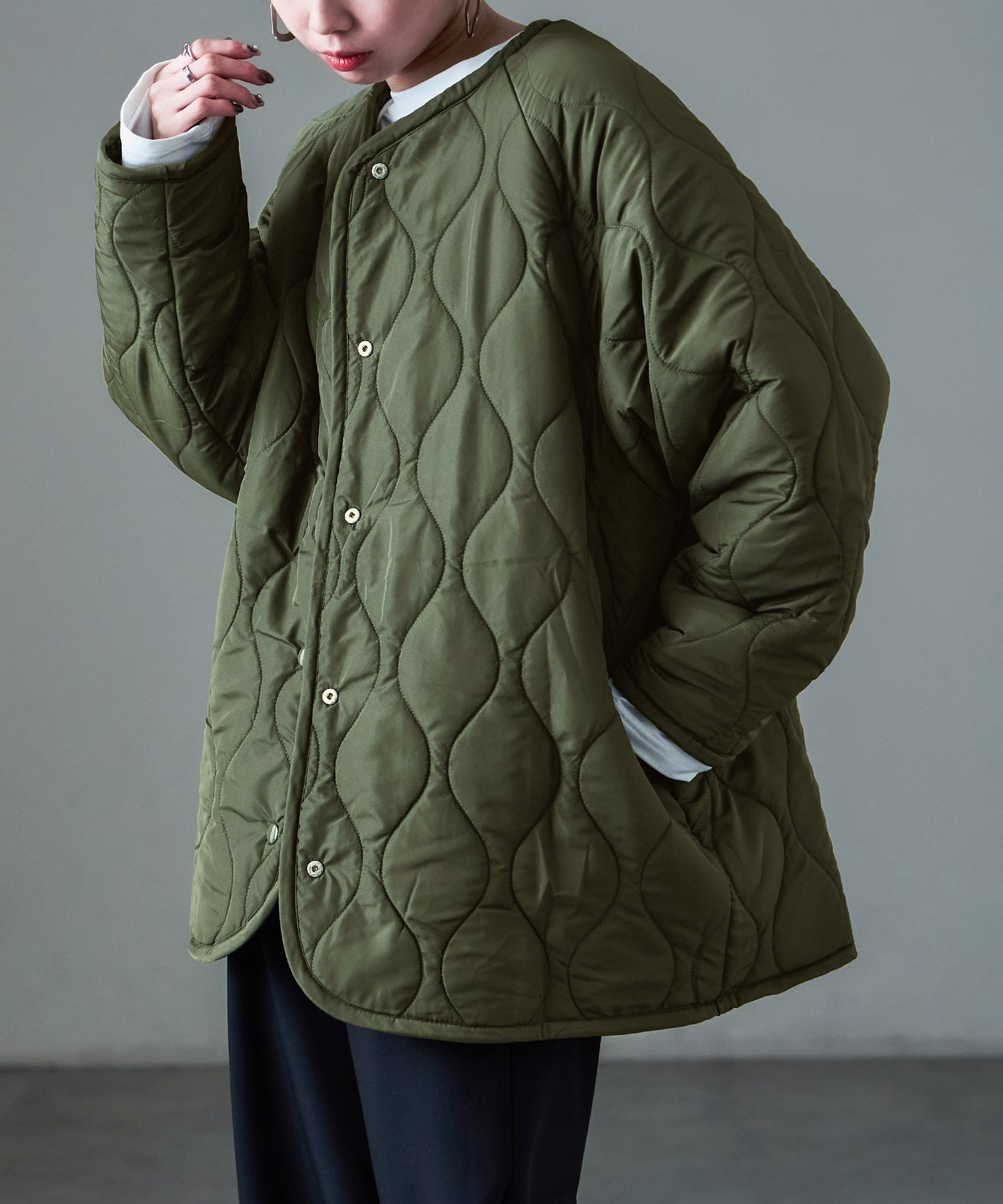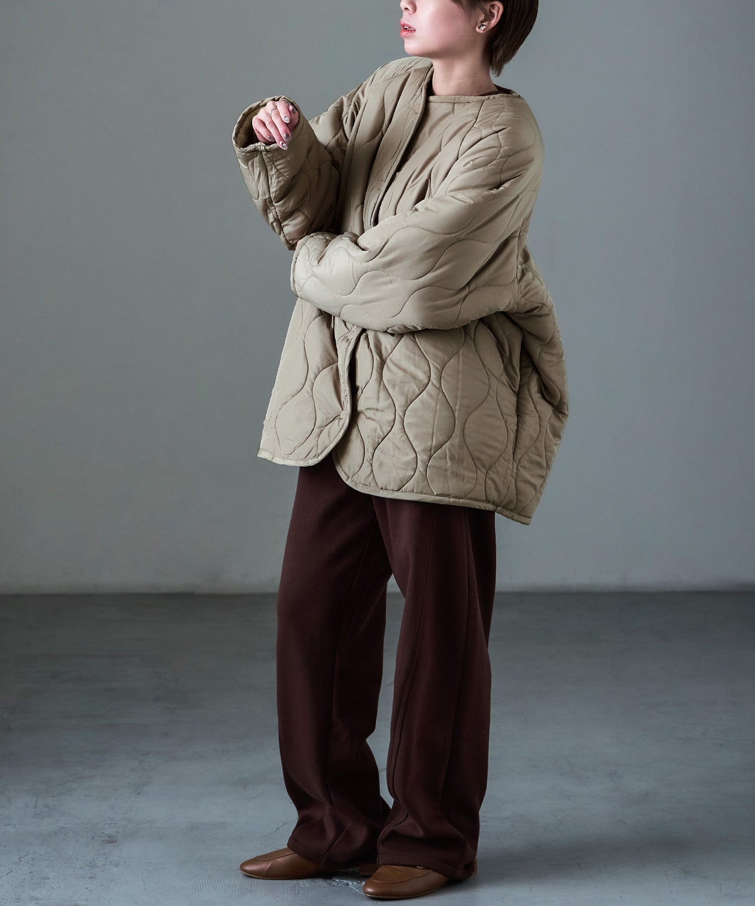 ゆったりしたサイズ感で厚手のニットやスウェットの上からでも羽織りやすい。