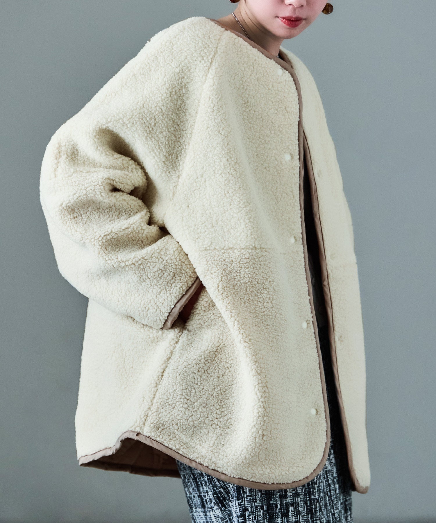 ボアとキルティング、気分やコーデによって2つの顔を楽しめる。