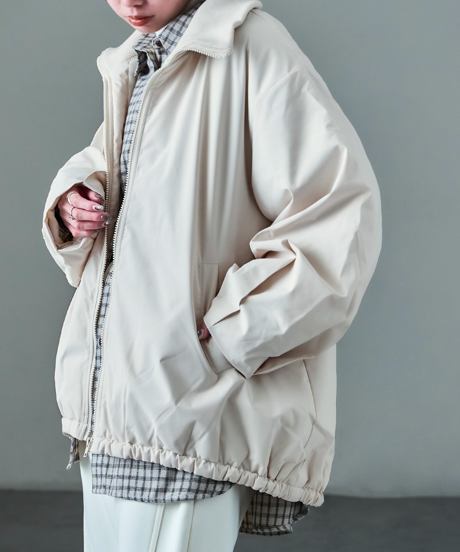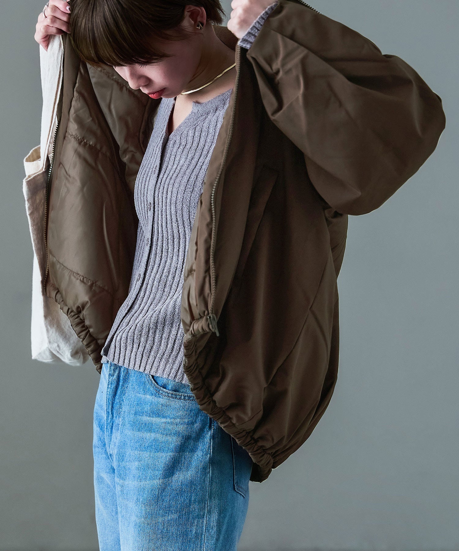 オーバーサイズで厚手のニットやスウェットの上にも羽織りやすく、さらに軽量なのでストレスフリー。