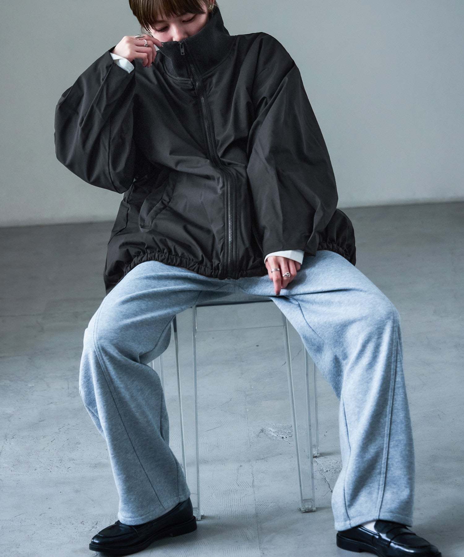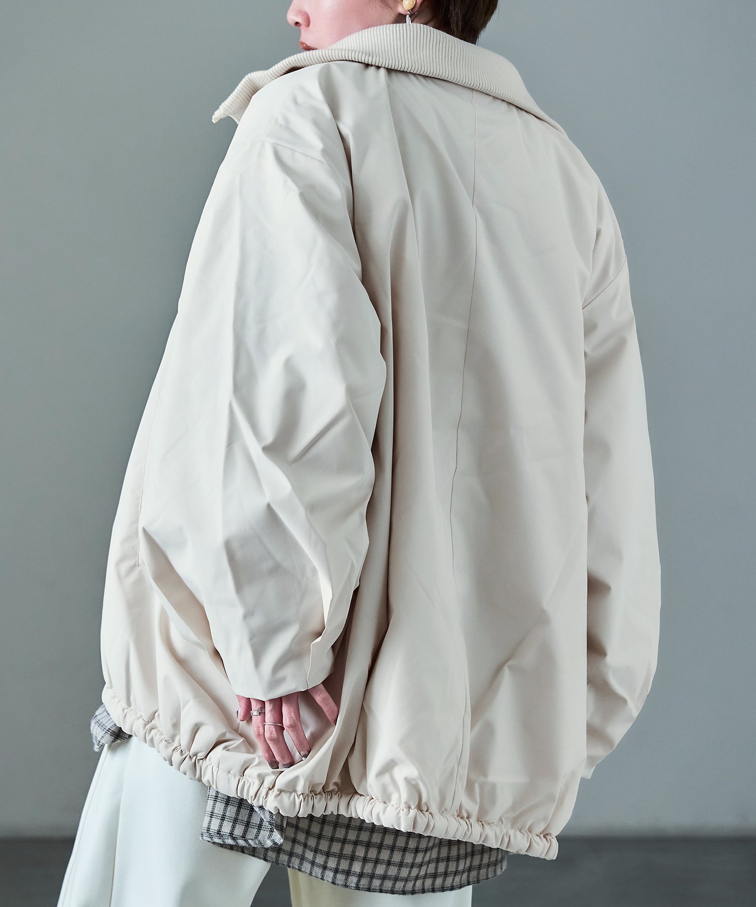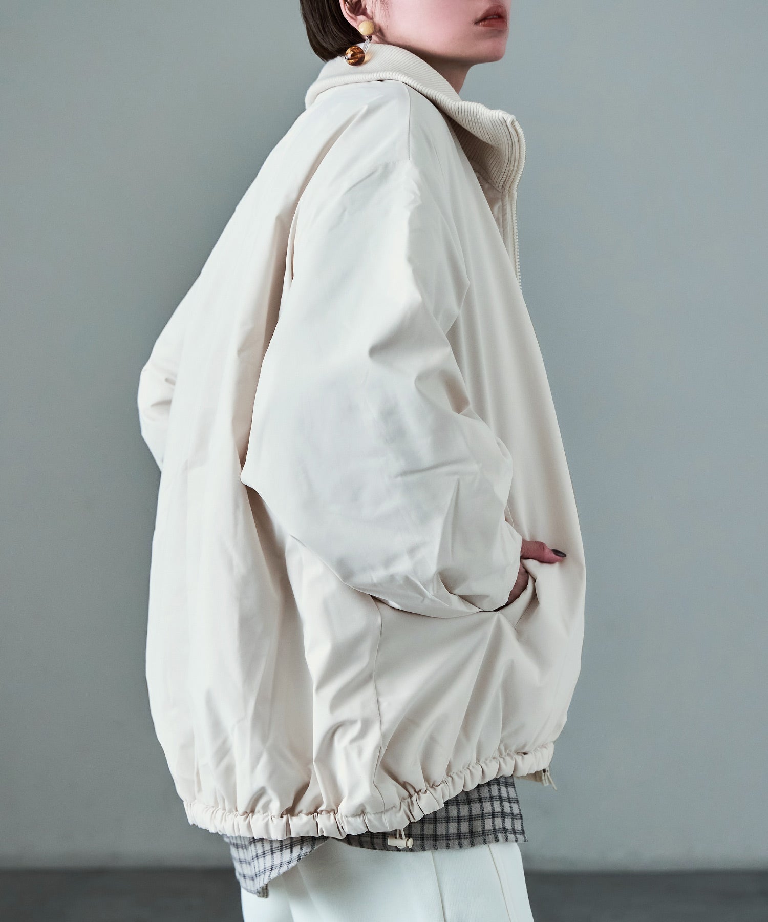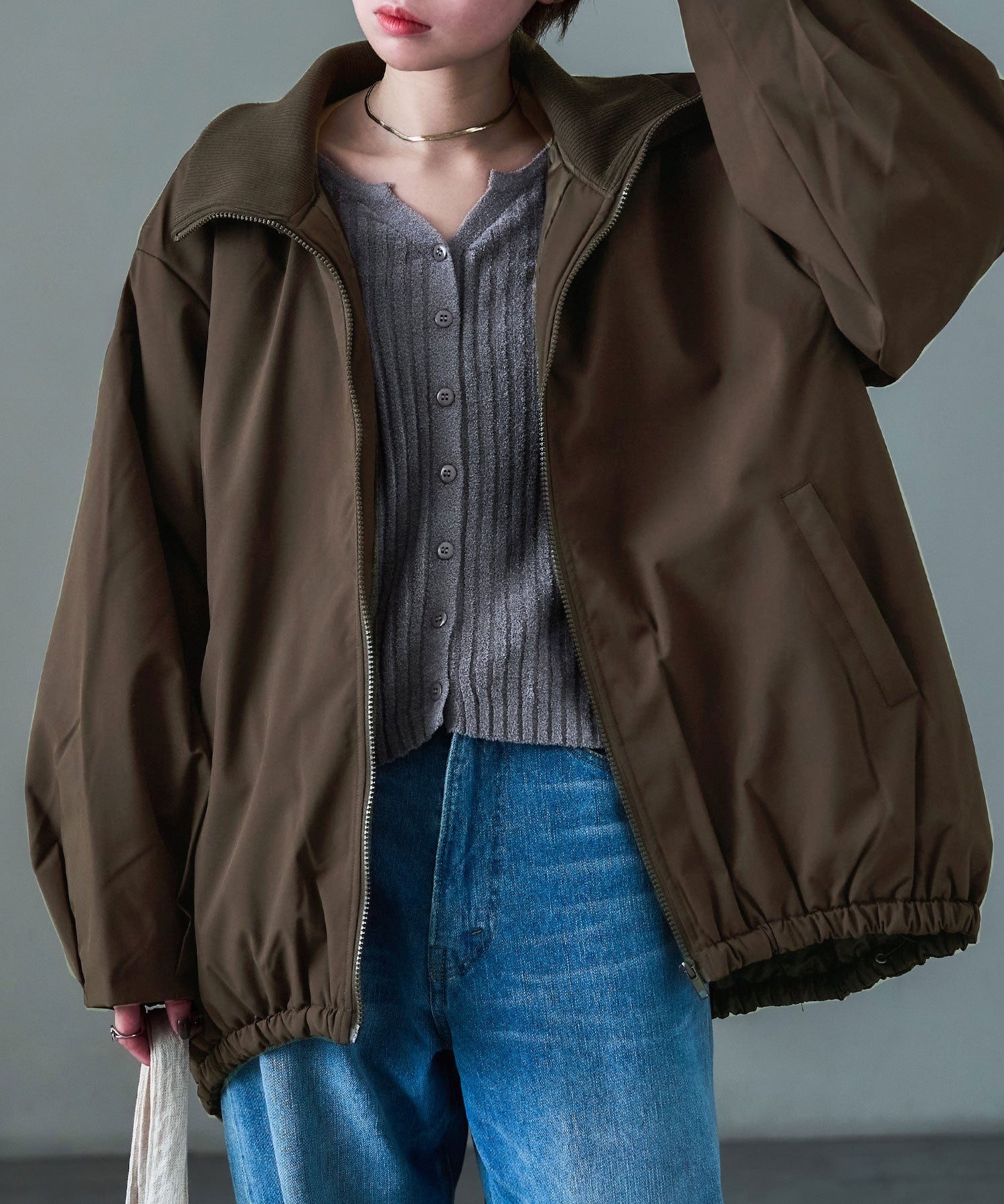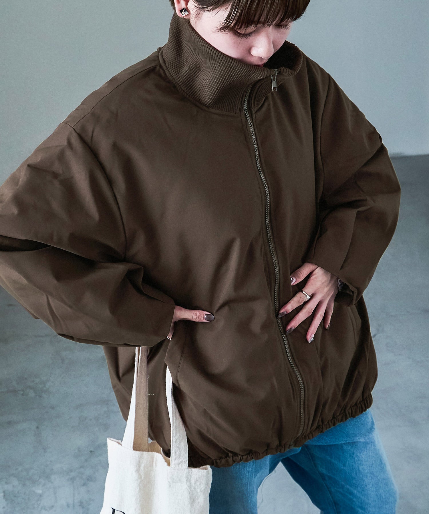長めのリブカラーは上までジップを締めると首元暖かでマフラー要らず。