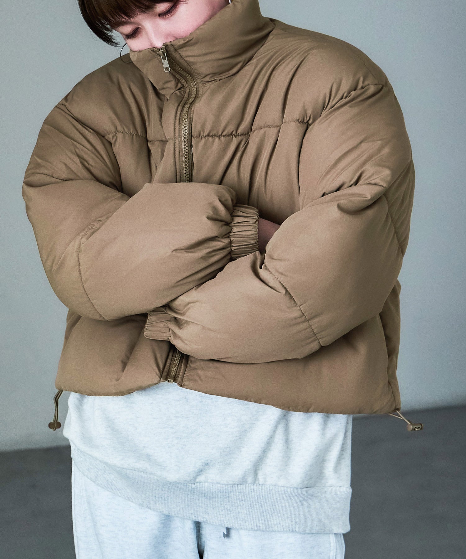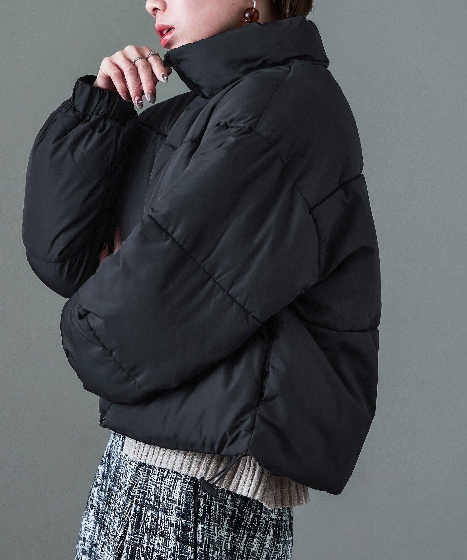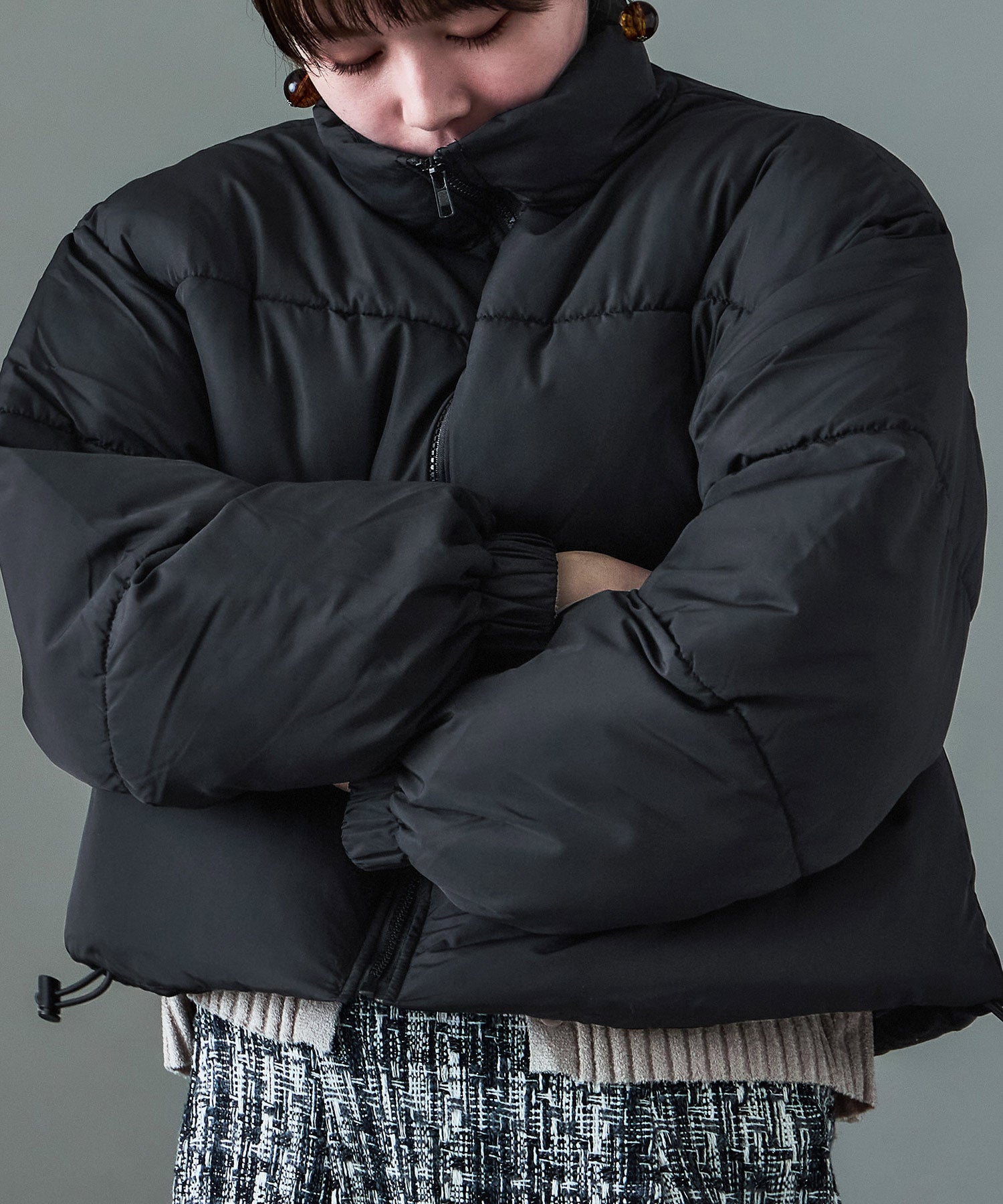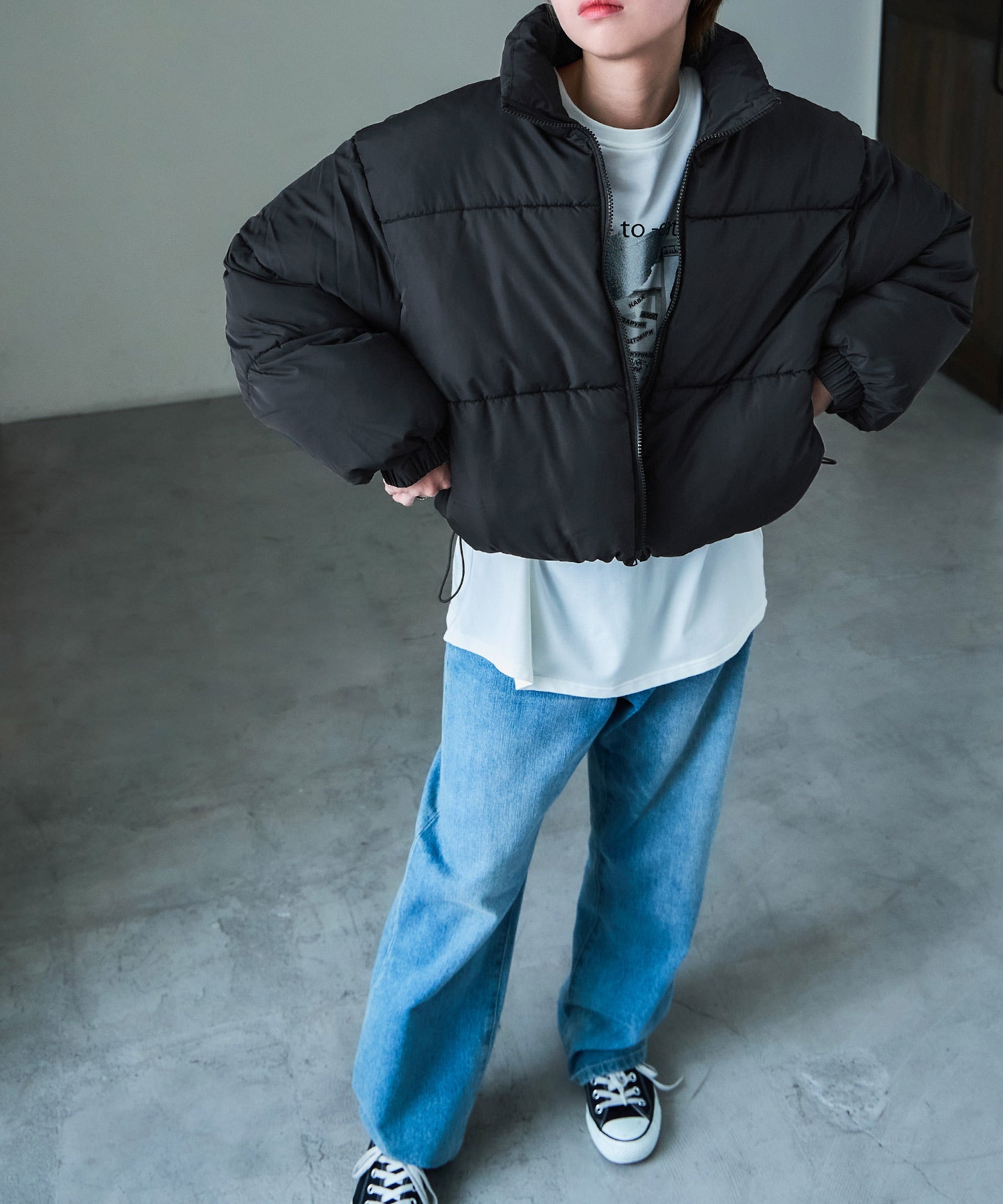 Rname ショート丈 パフジャケット 中綿ダウンジャケット ショートダウンジャケット ショート丈 レディース ダウンコート 軽量 クロップド丈 ジャケット コート 中綿 中わた 冬 あったか ゆったり ビッグシルエット 大きめ オーバーサイズ パディングコート