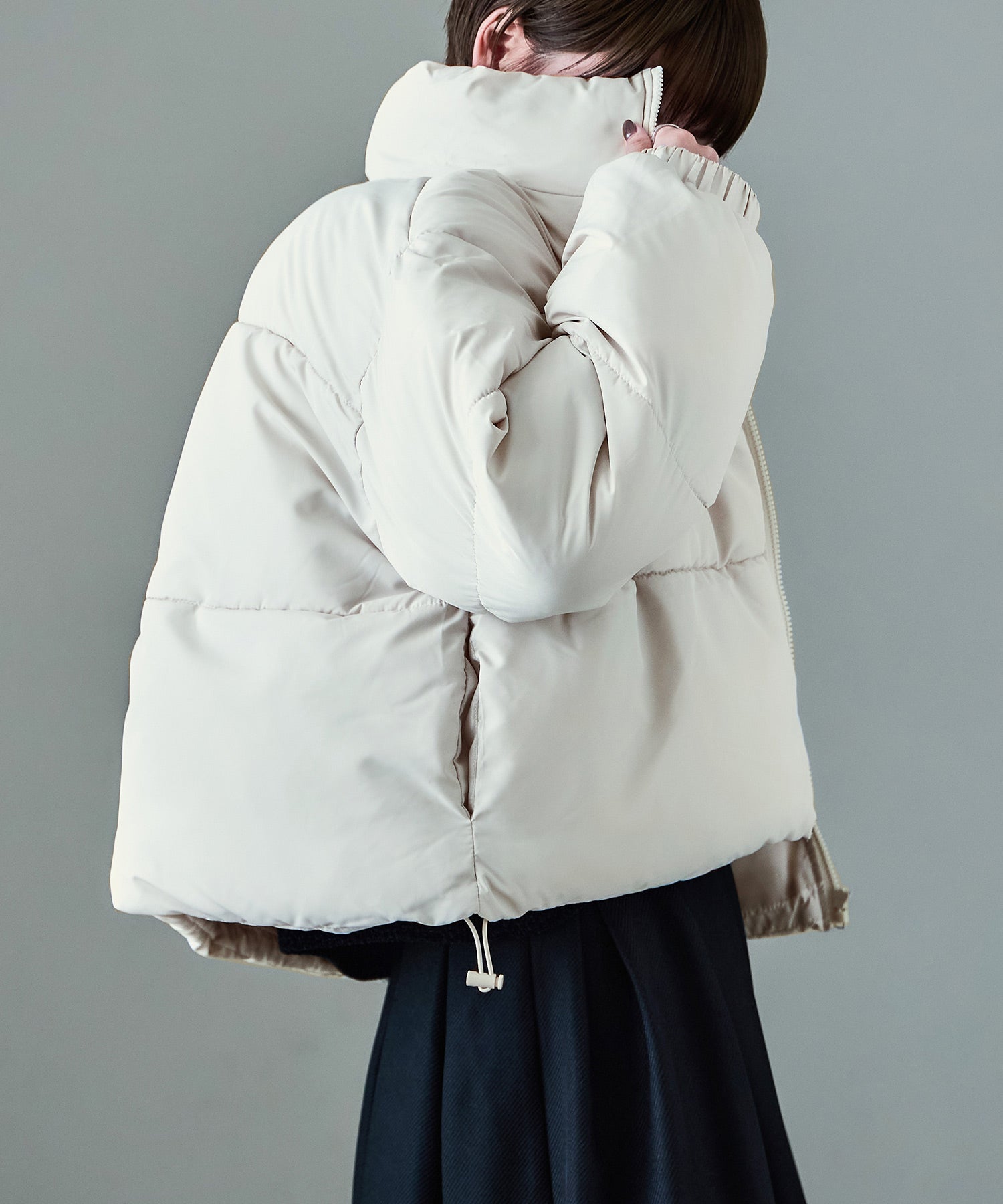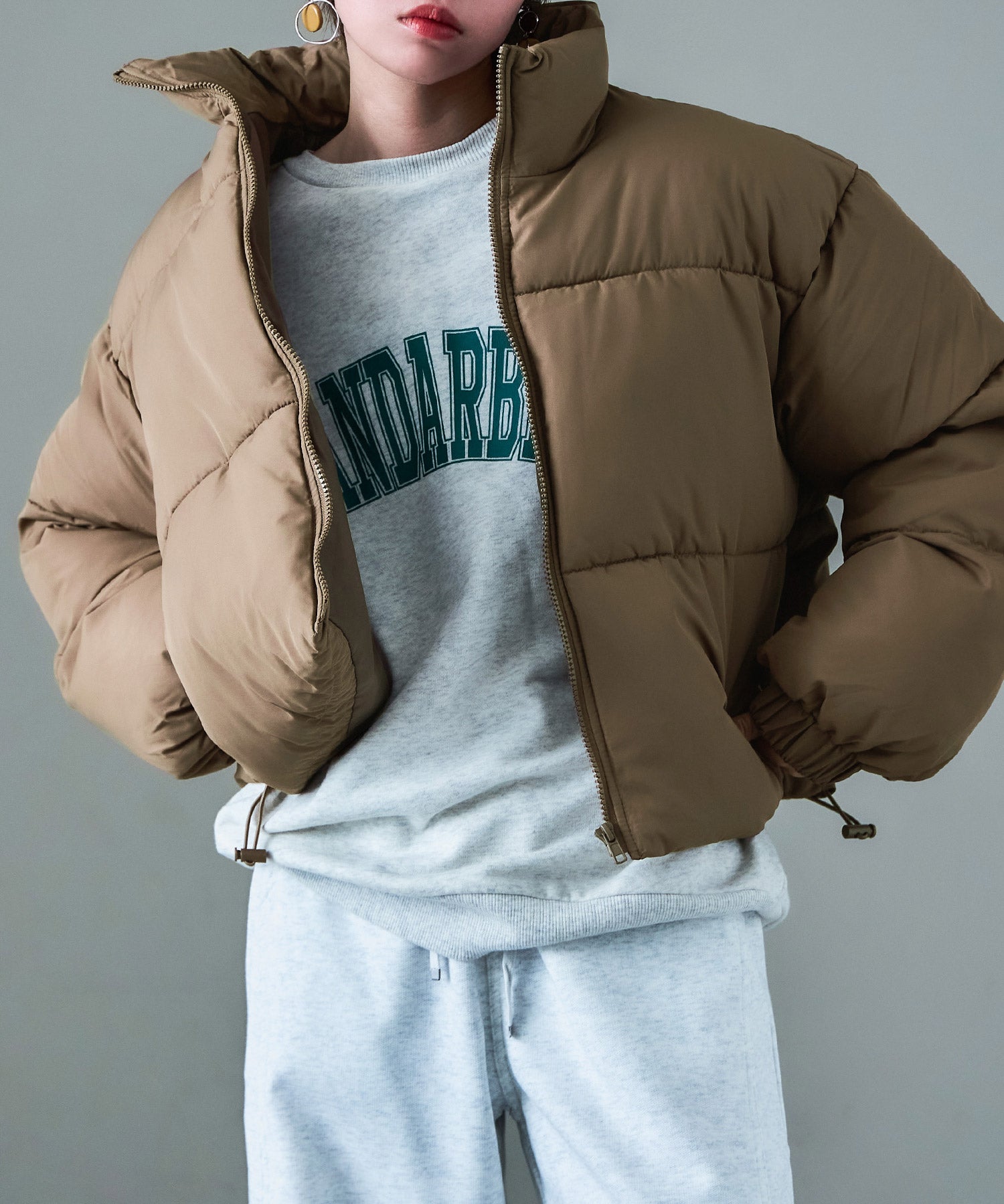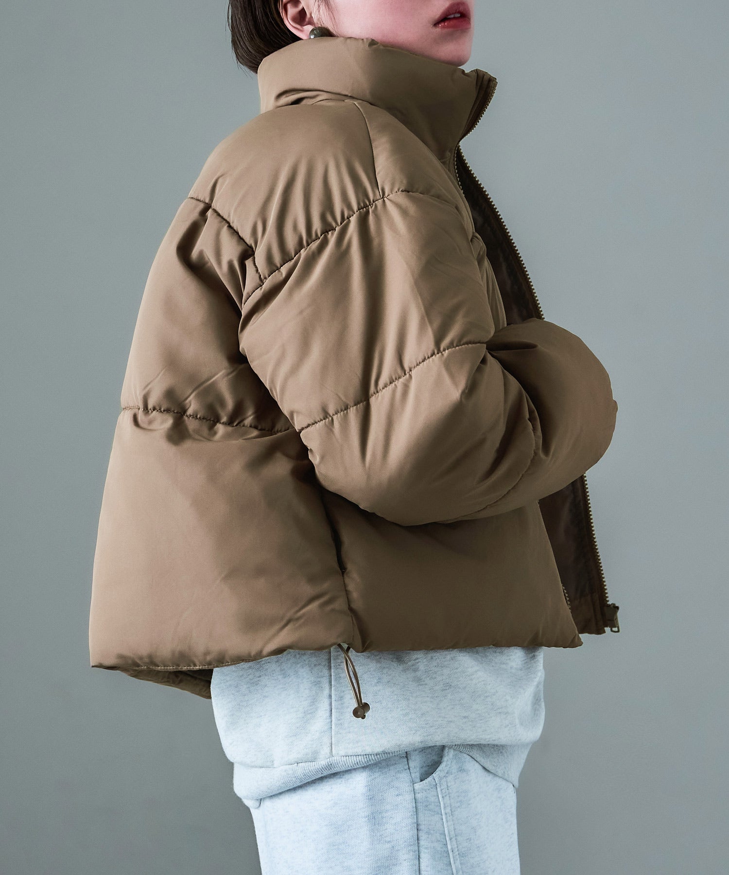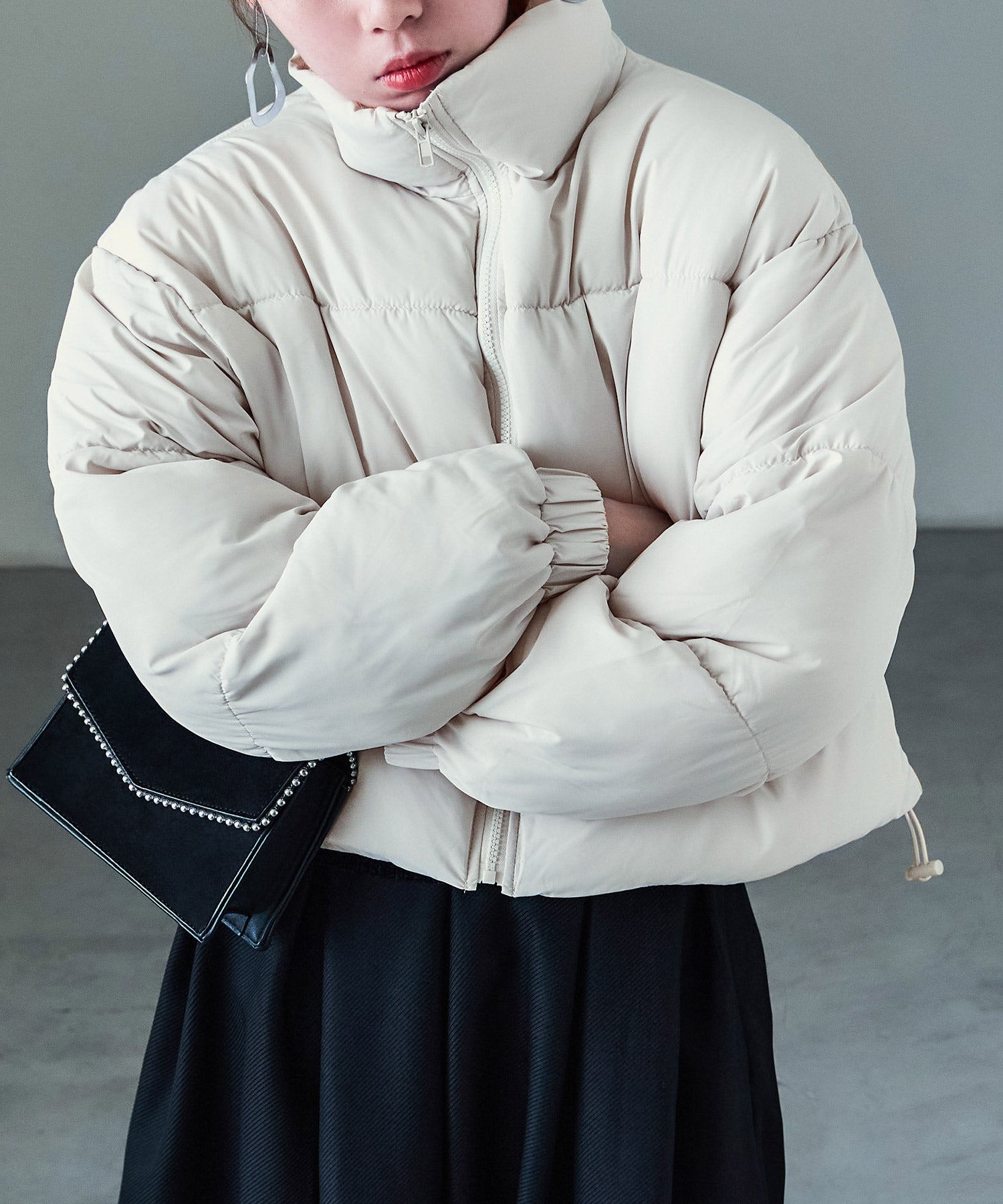 Rname ショート丈 パフジャケット 中綿ダウンジャケット ショートダウンジャケット ショート丈 レディース ダウンコート 軽量 クロップド丈 ジャケット コート 中綿 中わた 冬 あったか ゆったり ビッグシルエット 大きめ オーバーサイズ パディングコート