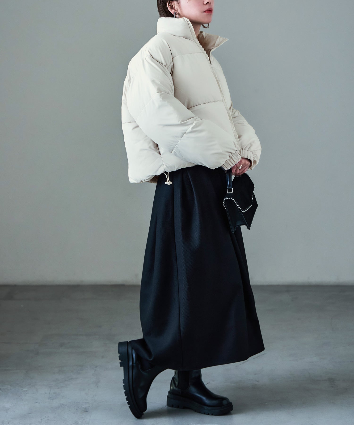 スラックスやスカートに合わせてモードな雰囲気にも合う。