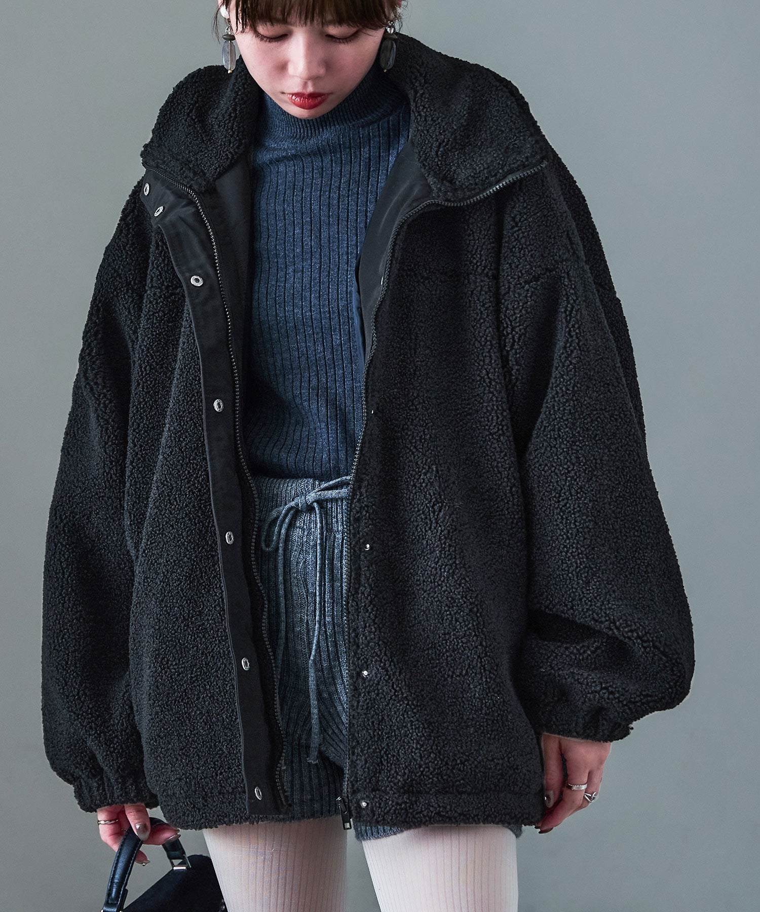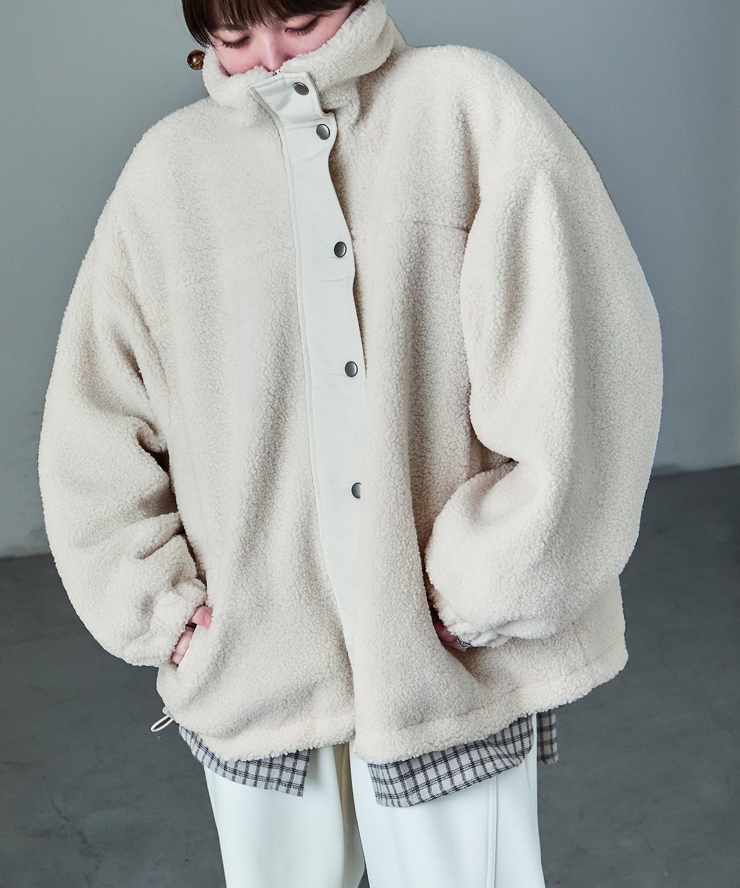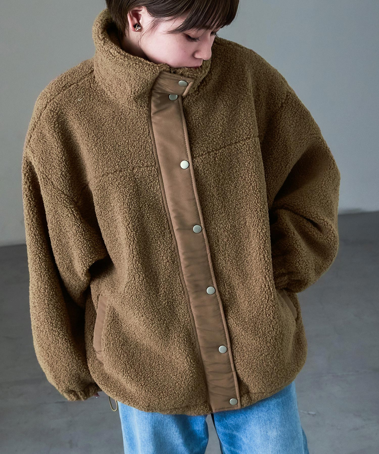 Zname スタンドカラー オーバーサイズ ボアブルゾン