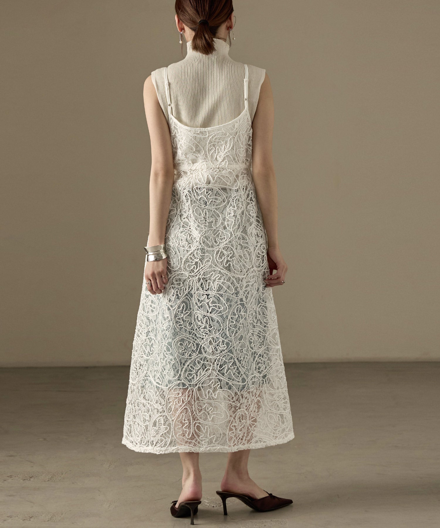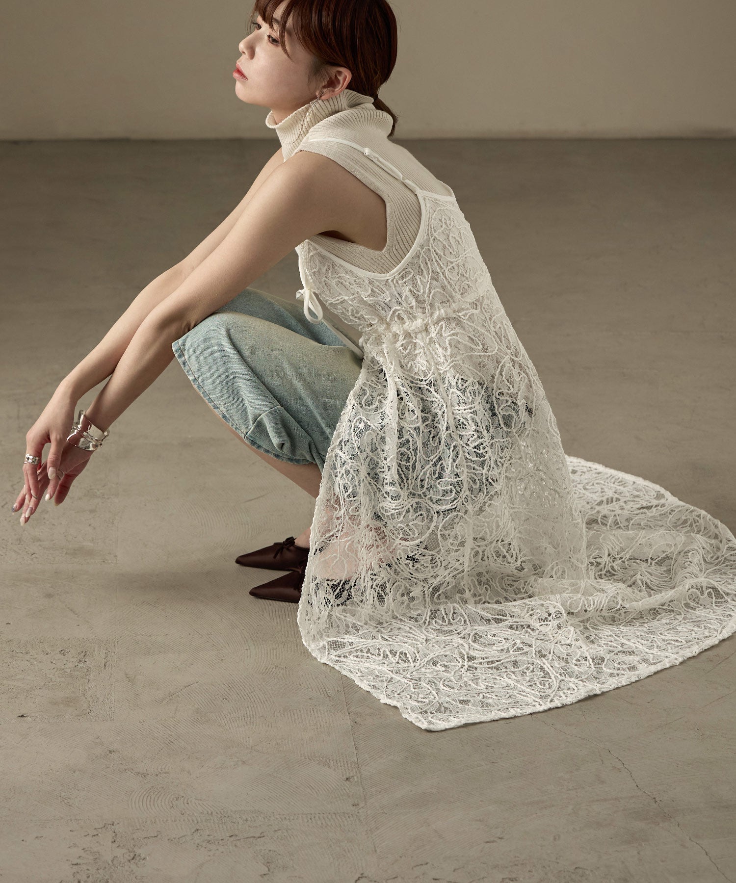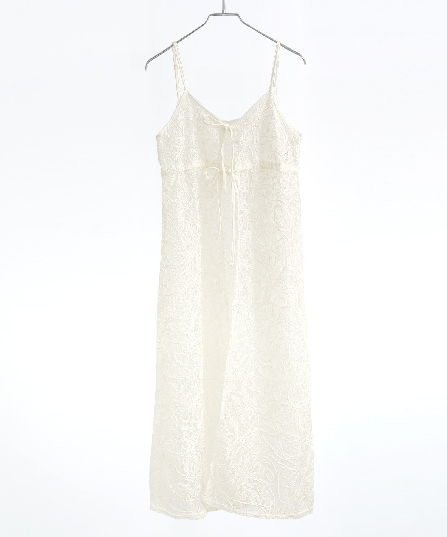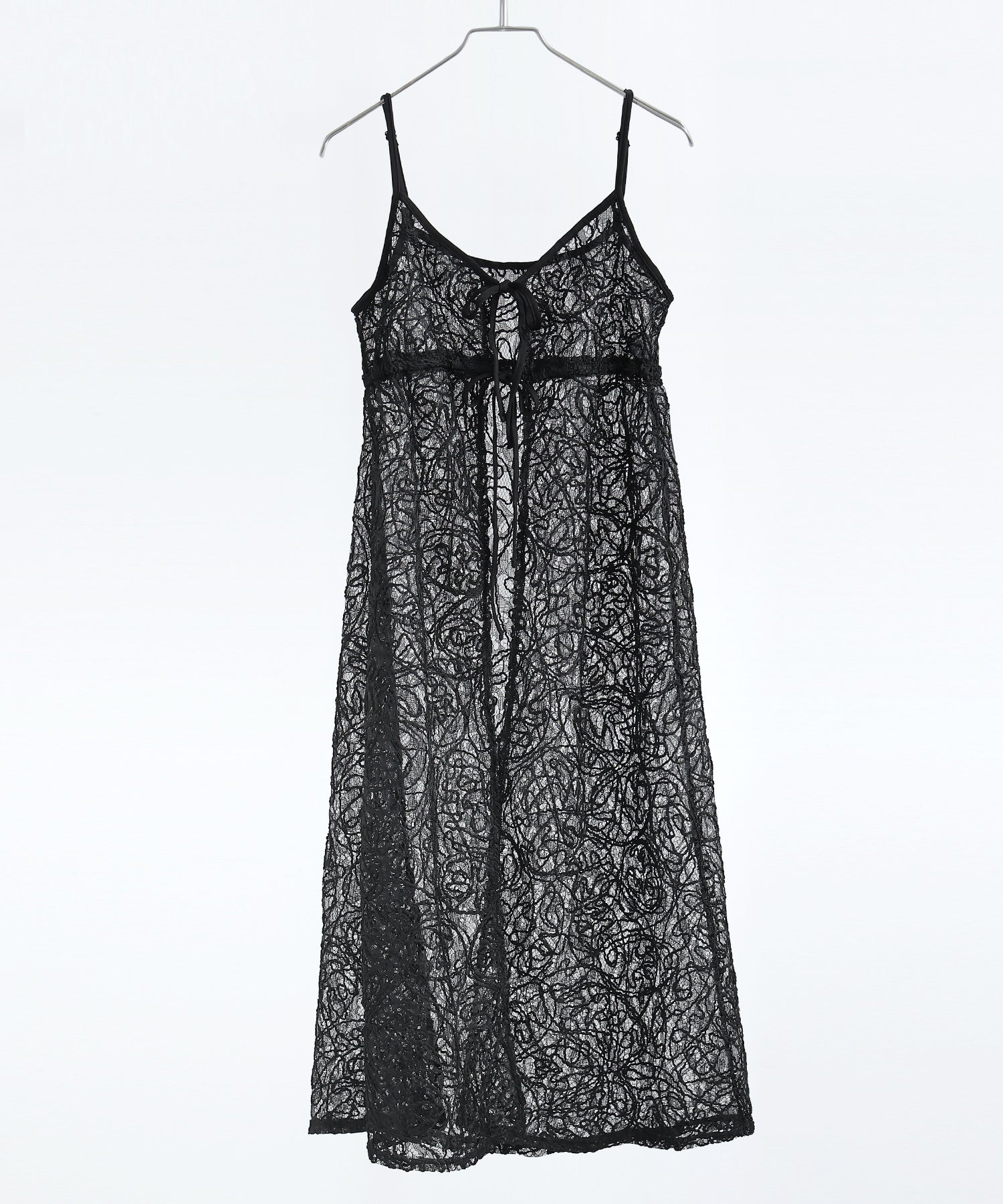 Rname コードレース キャミワンピース 総レース キャミソール ドレス レディース フロントリボン ロング丈 チュール シアー ロングスカート リゾート キャミワンピ オケージョン ノースリーブ ジレ ベスト 高身長 低身長 フェス 海コーデ