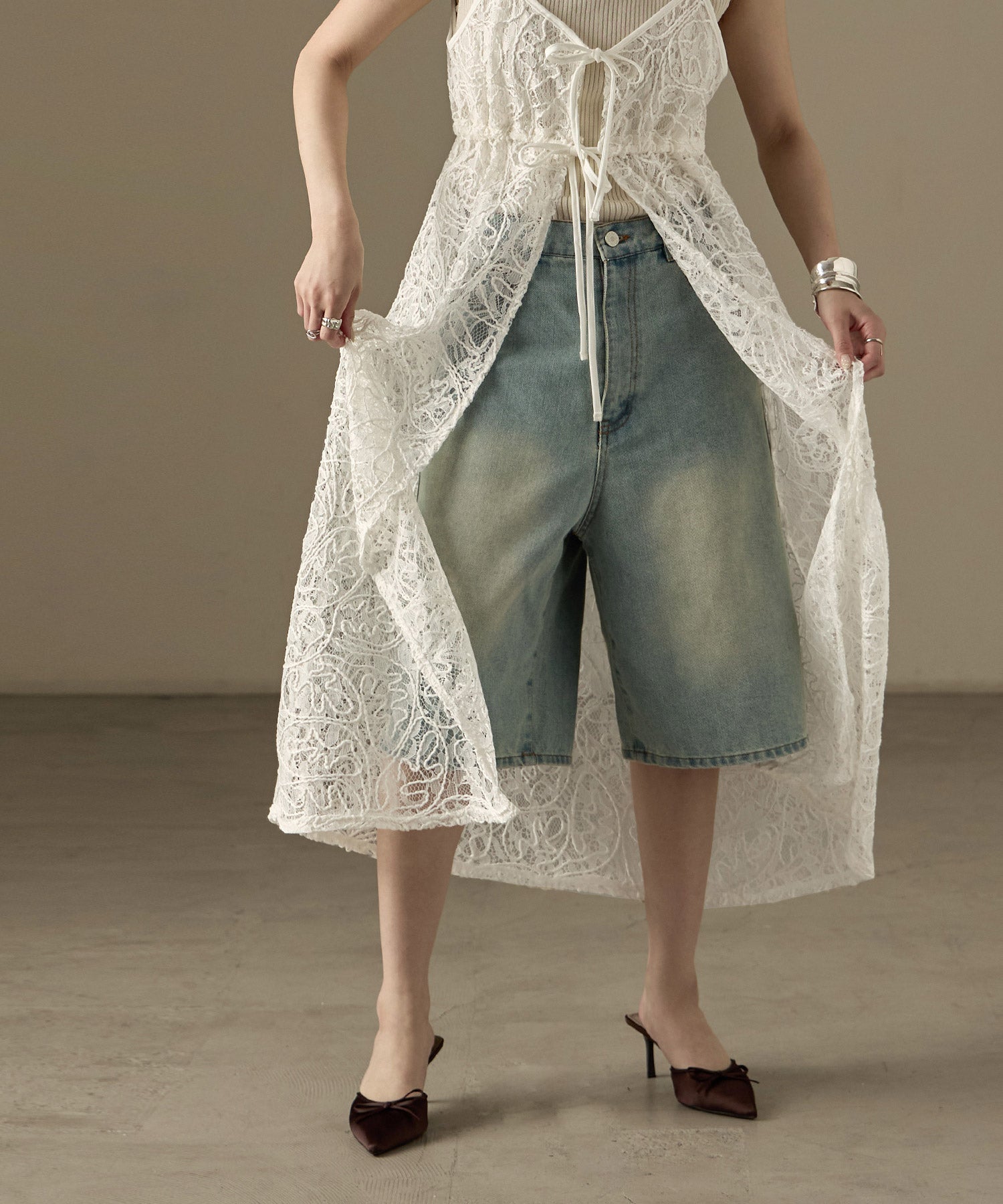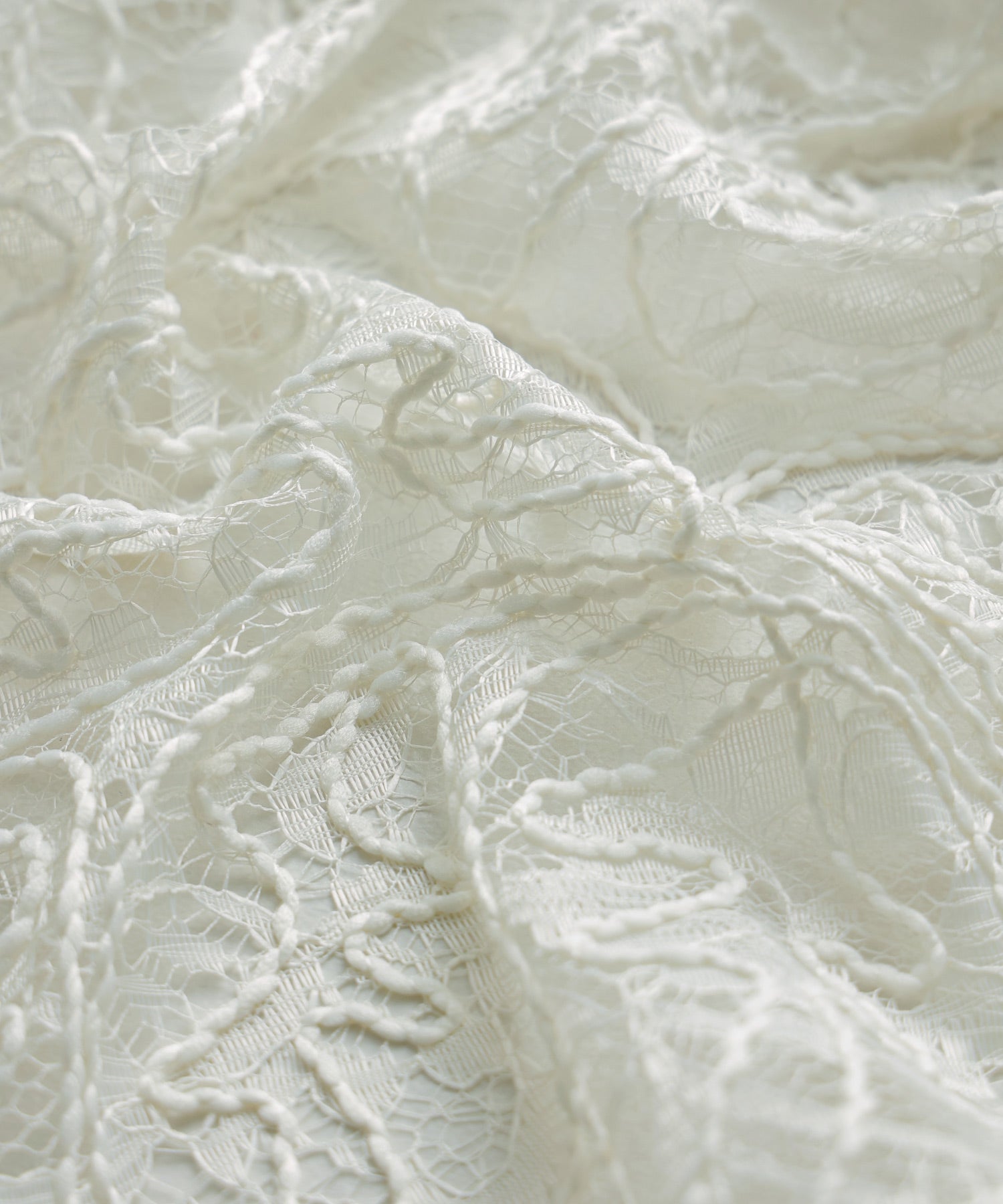 しっかりした素材感のレースなのできちんと感もあり、シアーカットソーやブラウスに合わせれば上品なお呼ばれスタイルに。