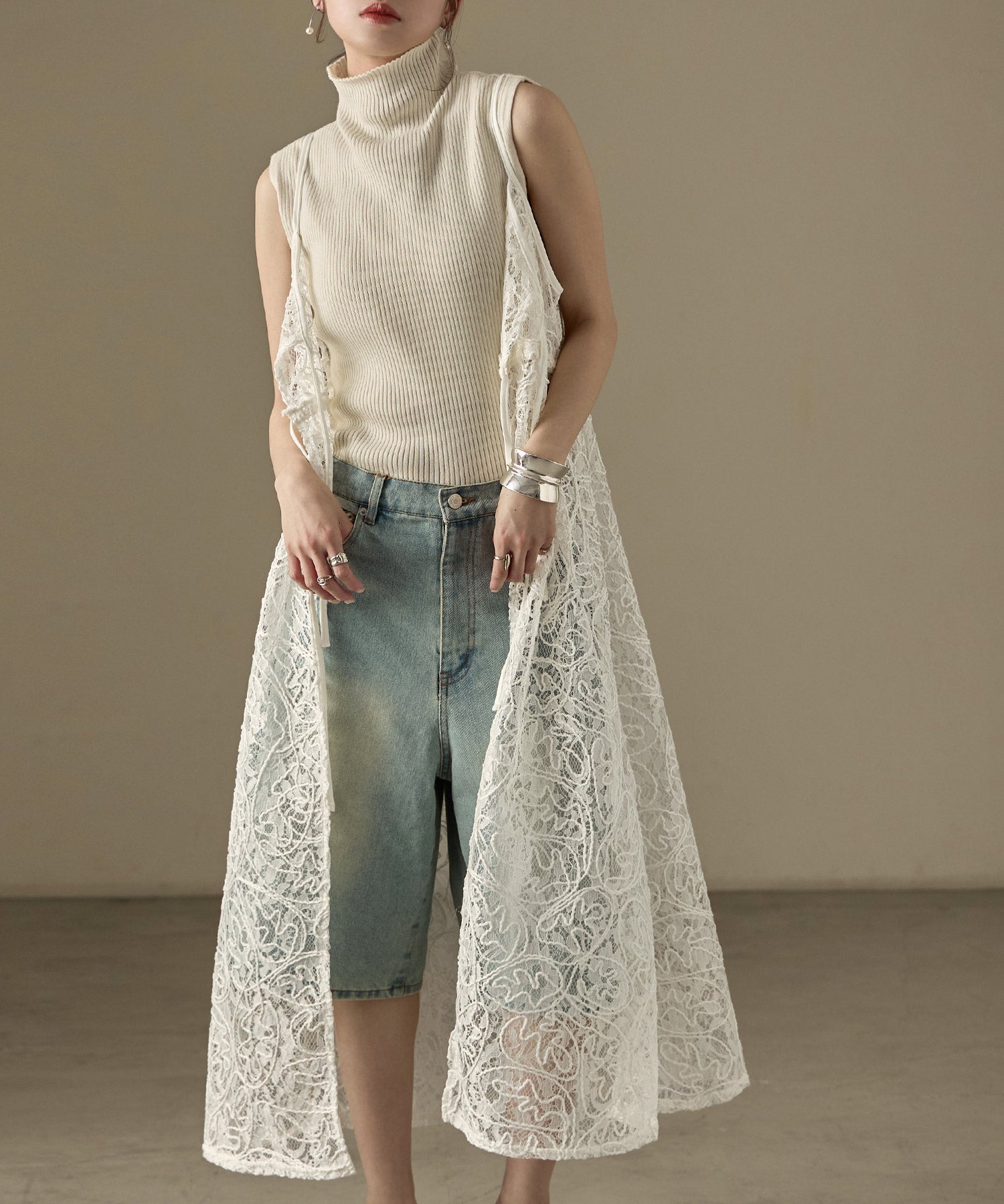フロントリボンタイプだから前開きのジレとしても使える1着。