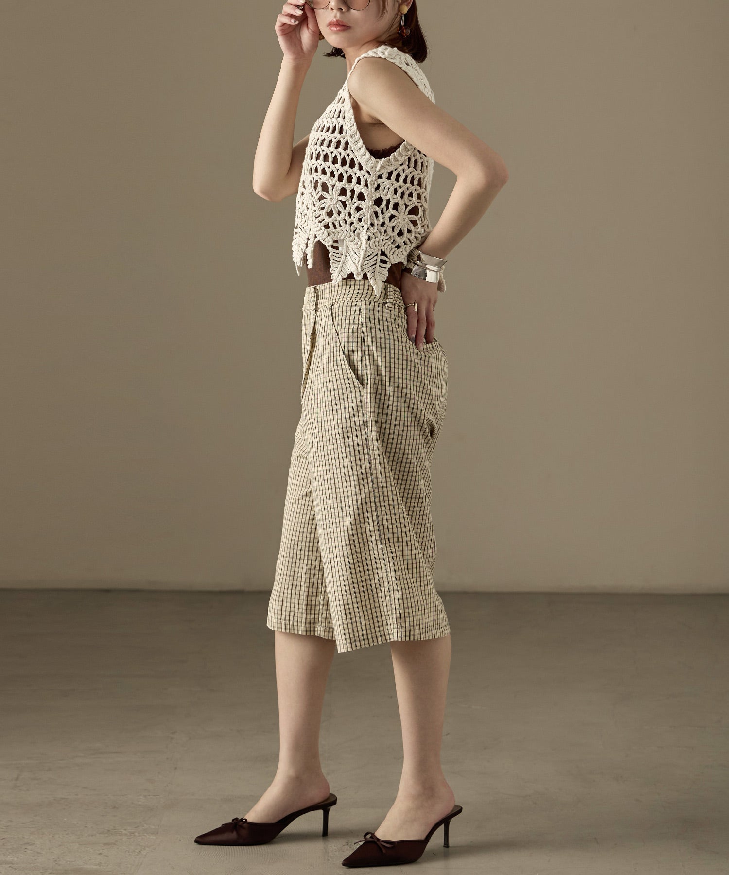 涼しげなサマーニットのビスチェは気軽に着られるタンクトップタイプ。