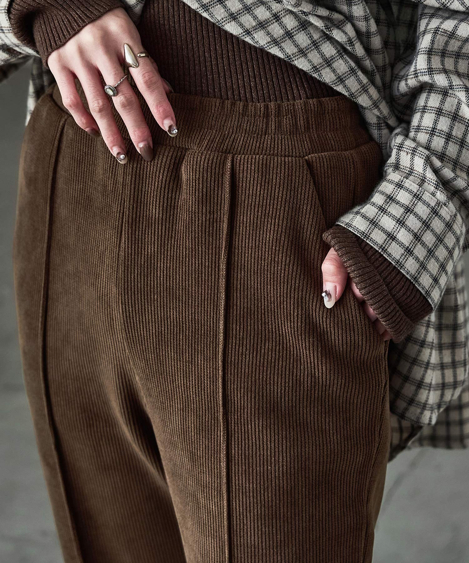 シルエットが決まりやすいポンディングコーデュロイ素材でこなれ感をプラス。