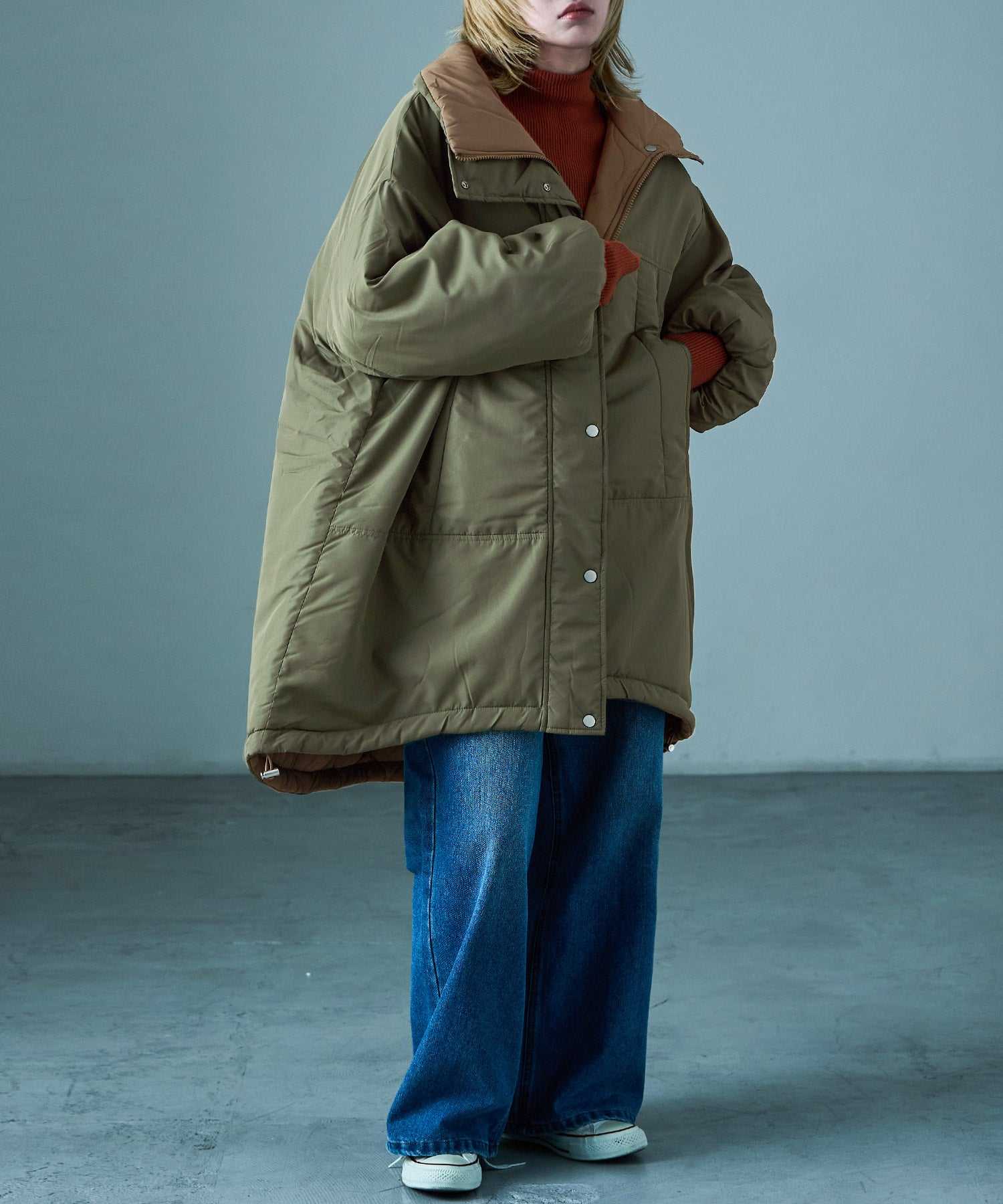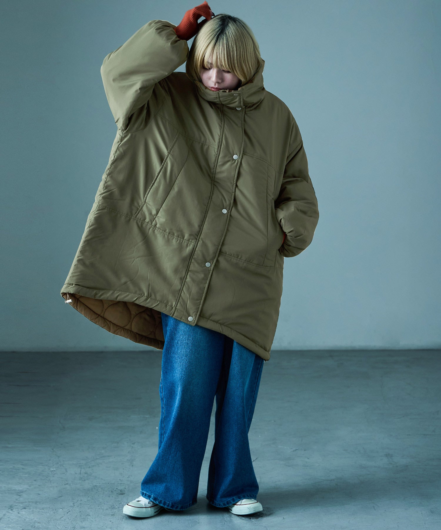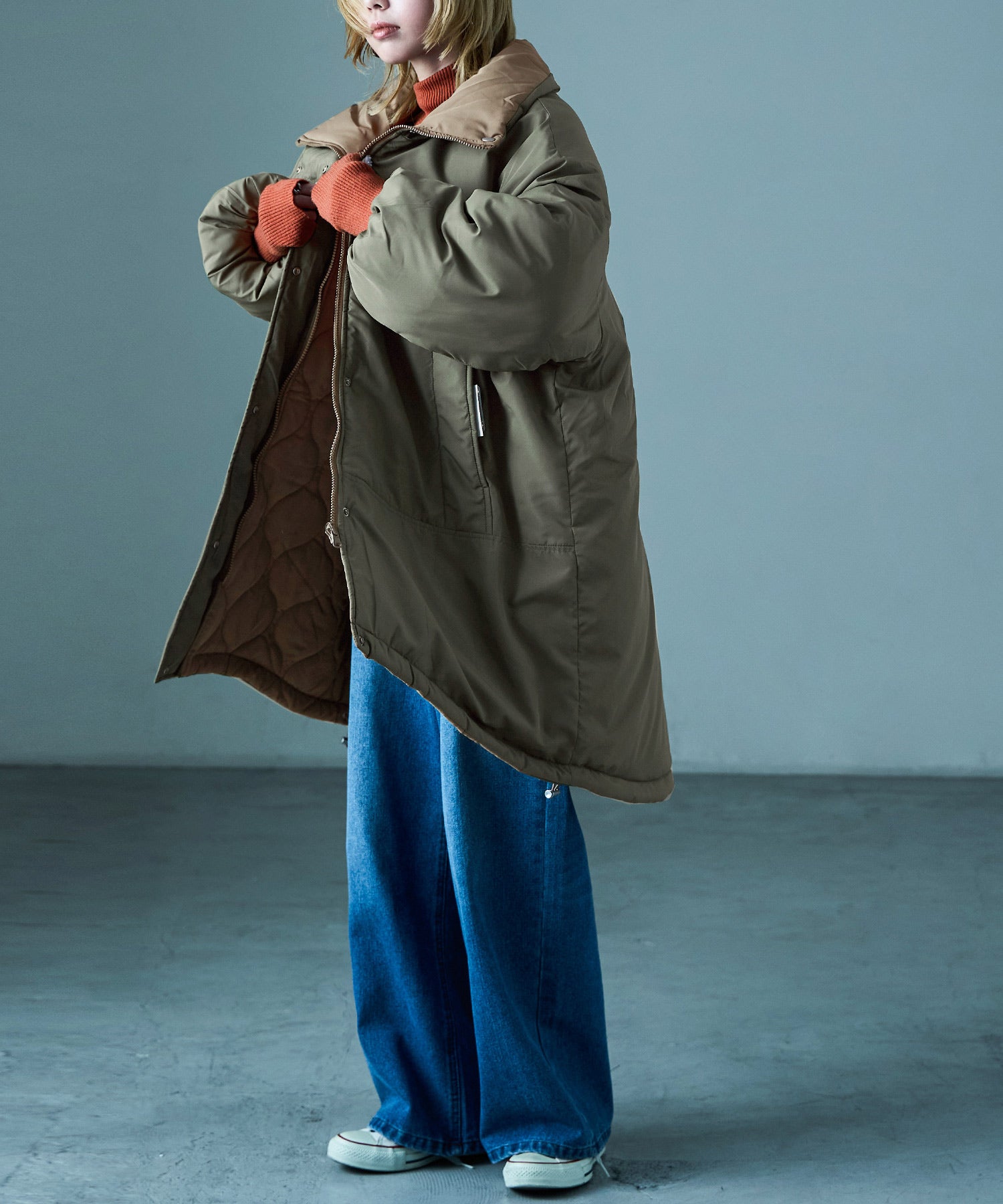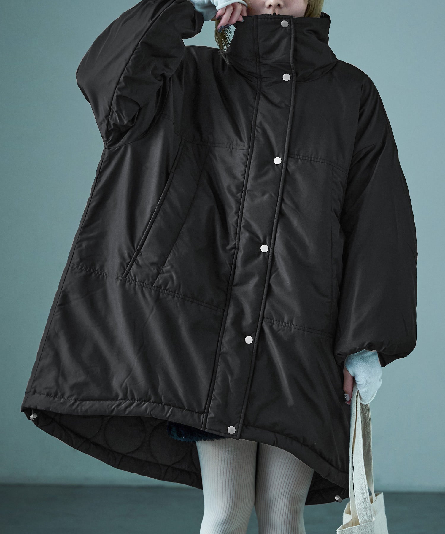 Rname オーバーサイズ リバーシブル モンスターパーカコート アウター ダウンコート ゆったり 中綿 キルティング ダウンジャケット 大きめ 暖か 防寒 コート ブルゾン ジャケット レディース ワイド 軽量 軽い スタンドカラー リバーシブル モンスターコート 低身長 高身長
