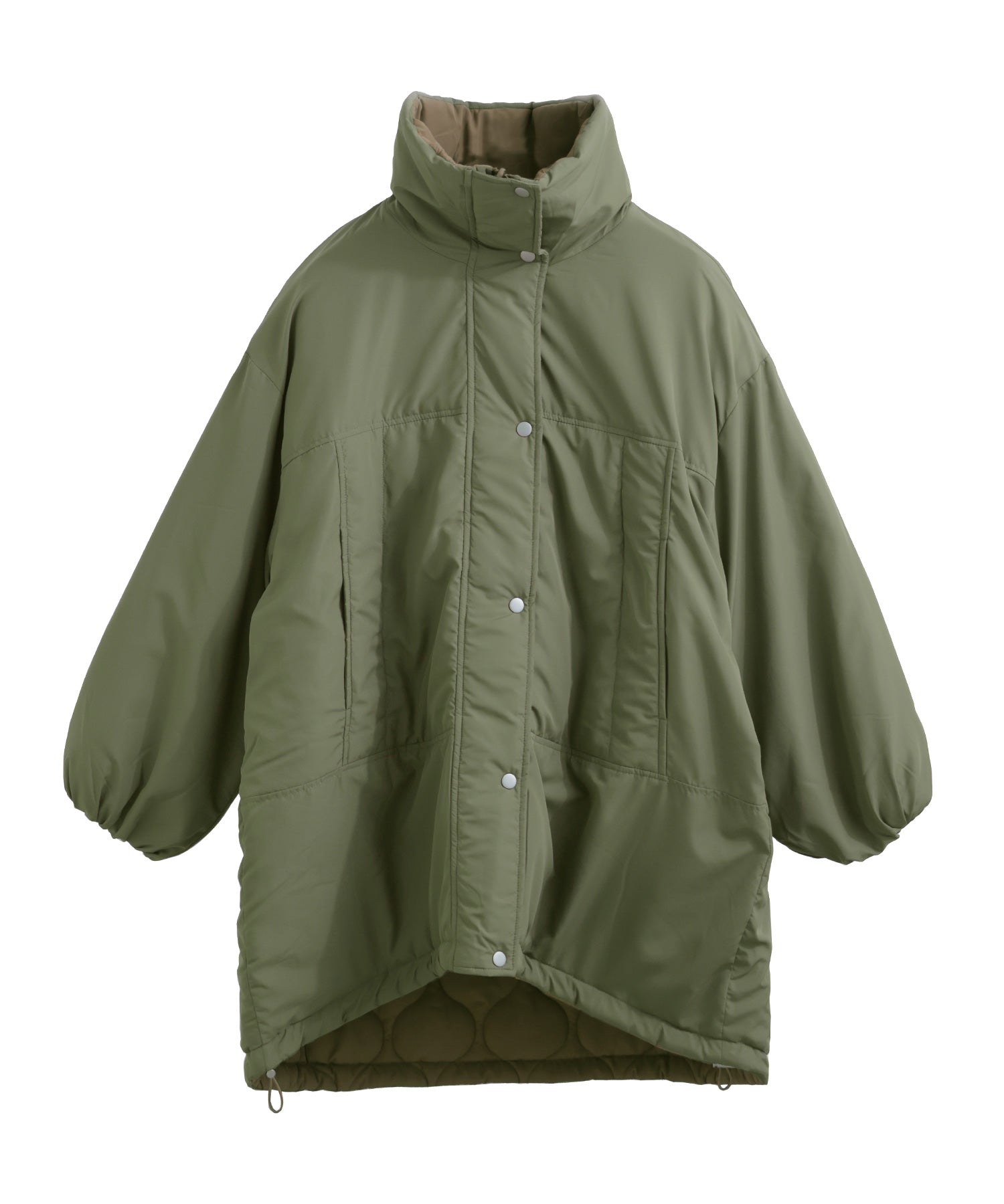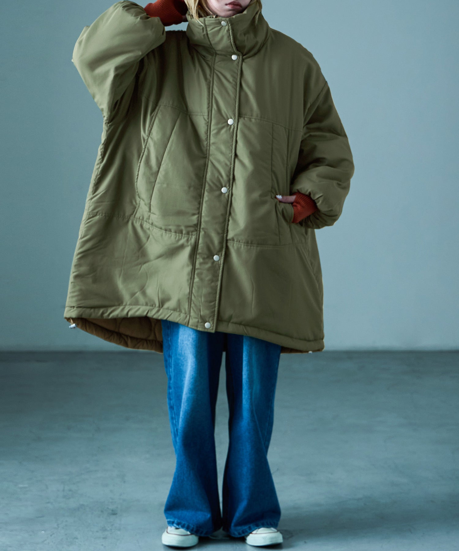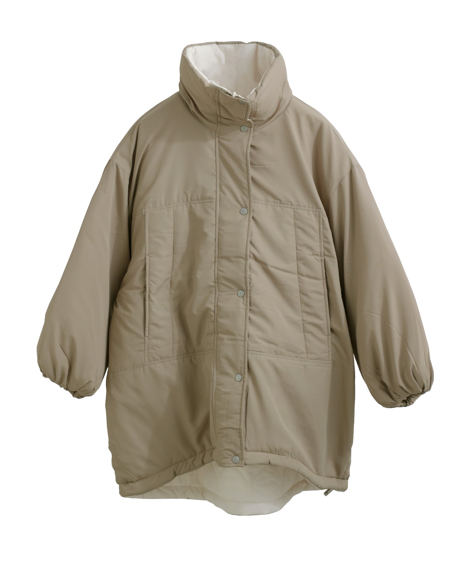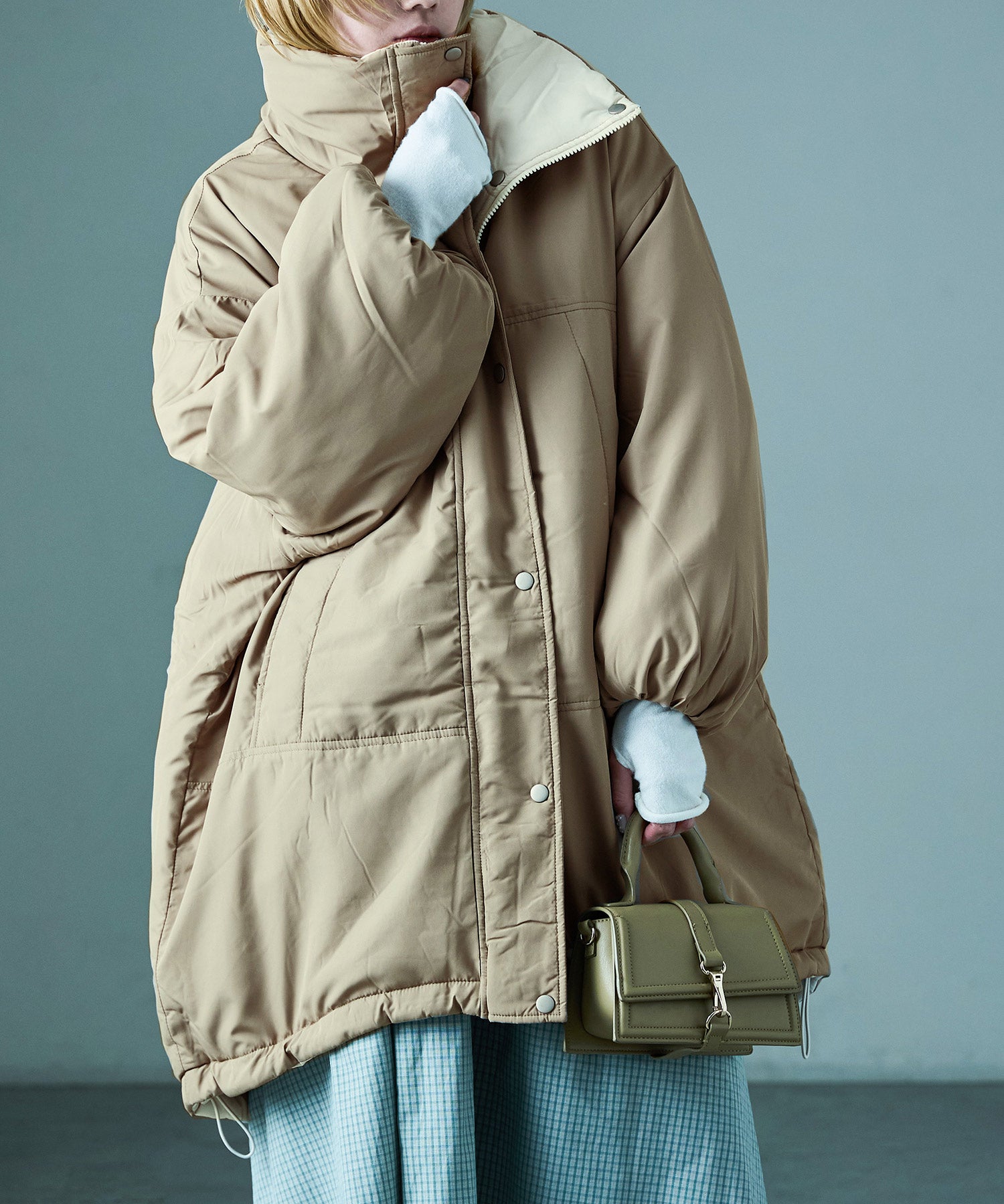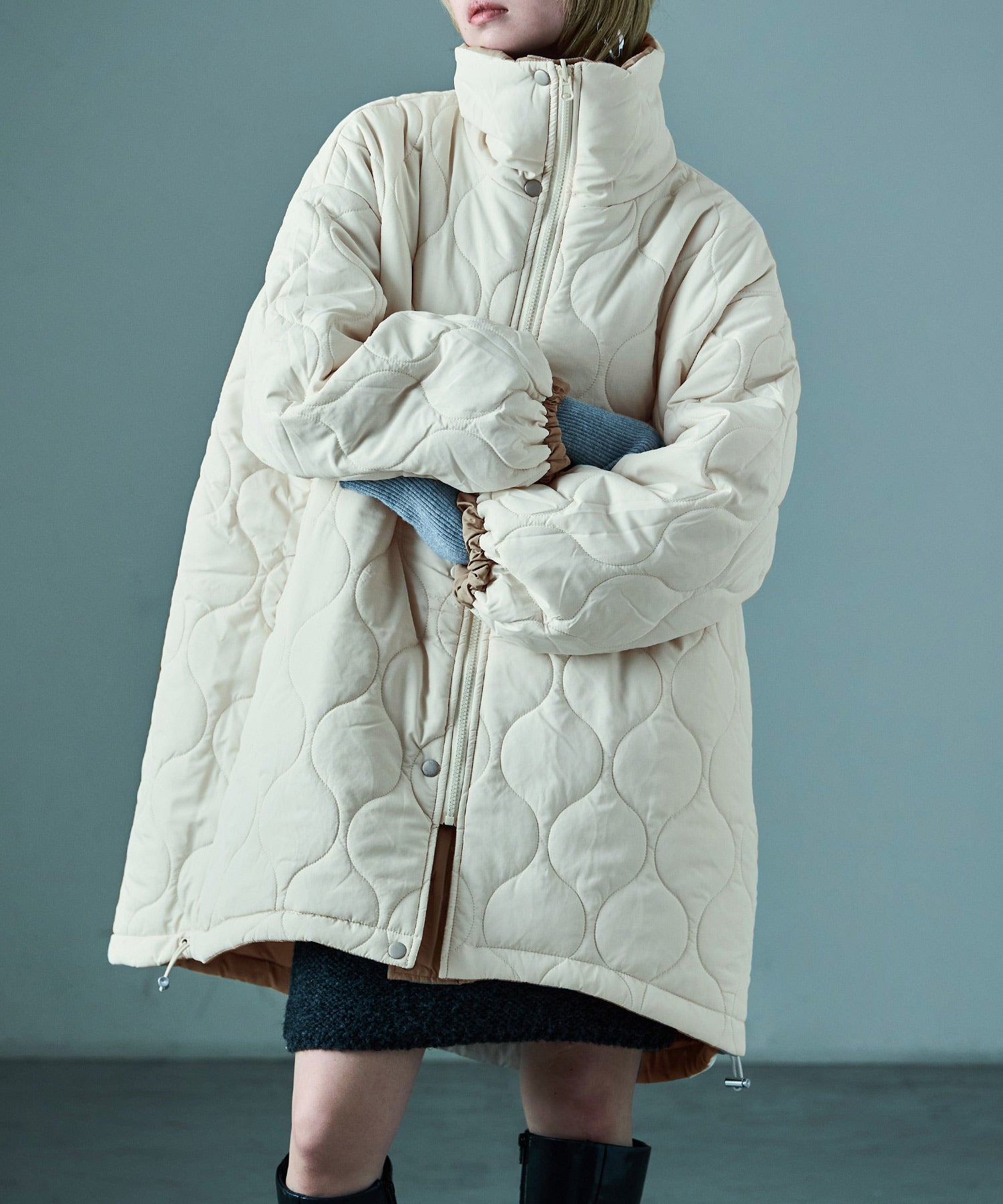 Rname オーバーサイズ リバーシブル モンスターパーカコート アウター ダウンコート ゆったり 中綿 キルティング ダウンジャケット 大きめ 暖か 防寒 コート ブルゾン ジャケット レディース ワイド 軽量 軽い スタンドカラー リバーシブル モンスターコート 低身長 高身長