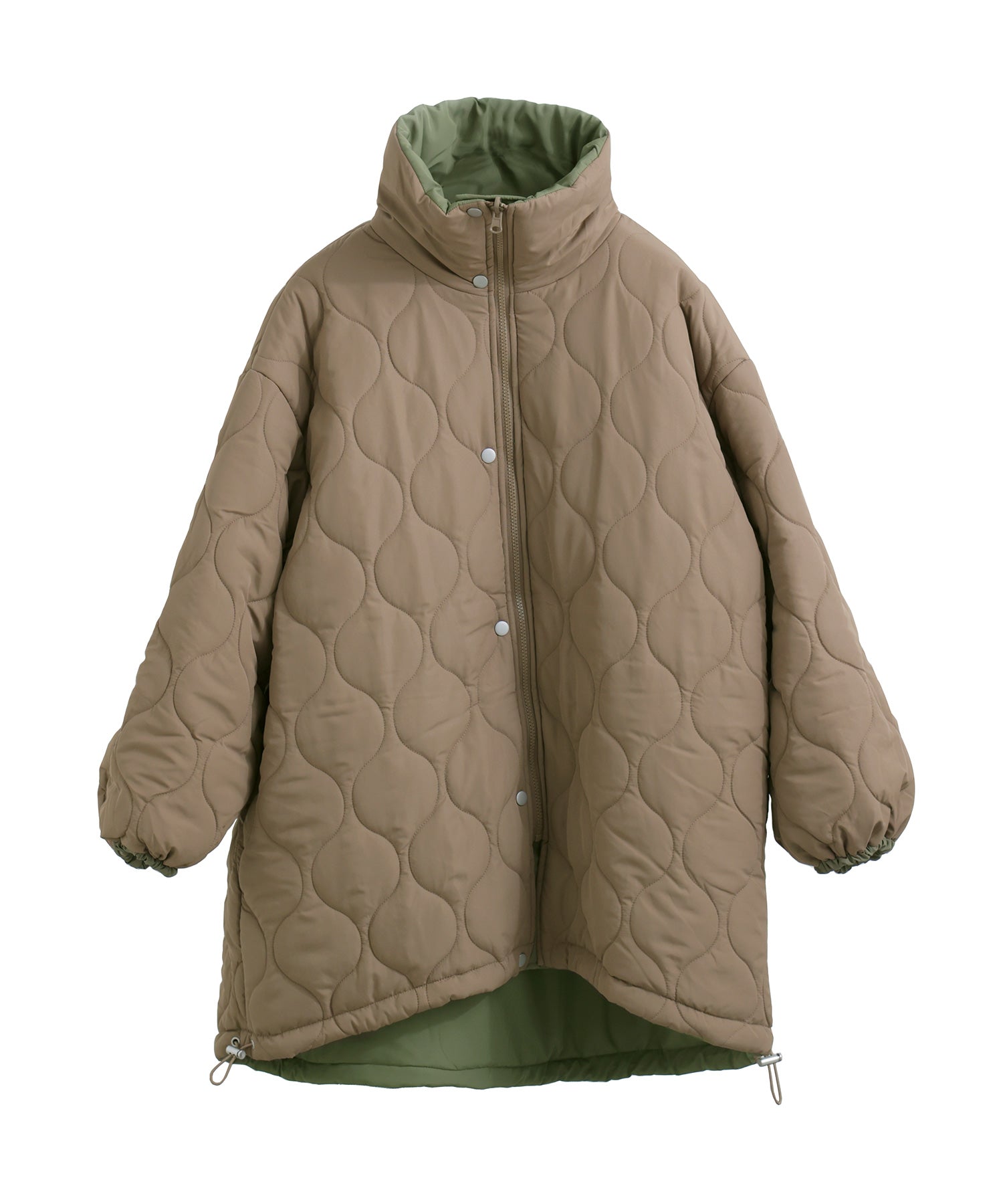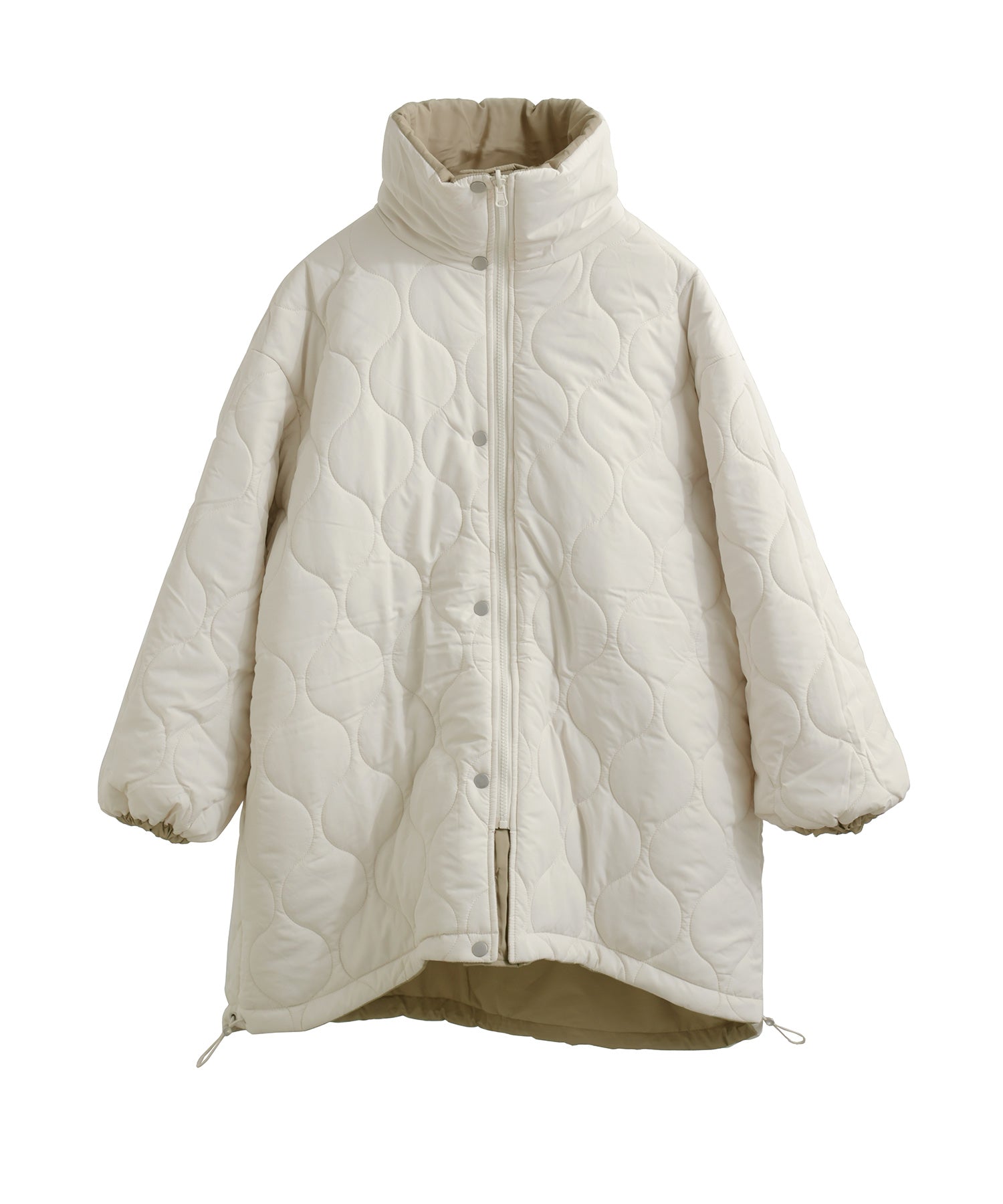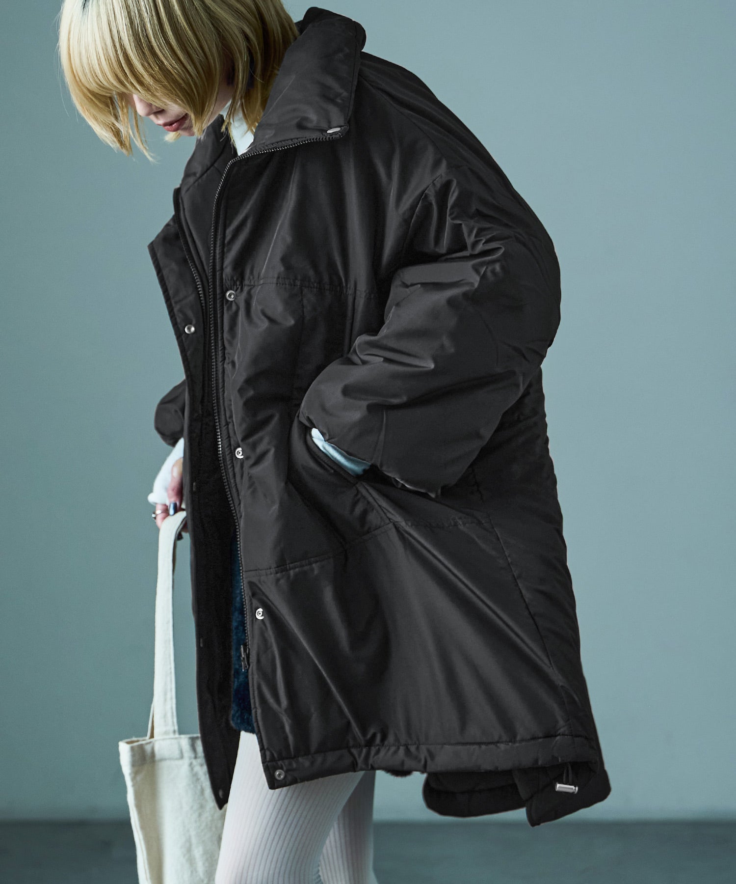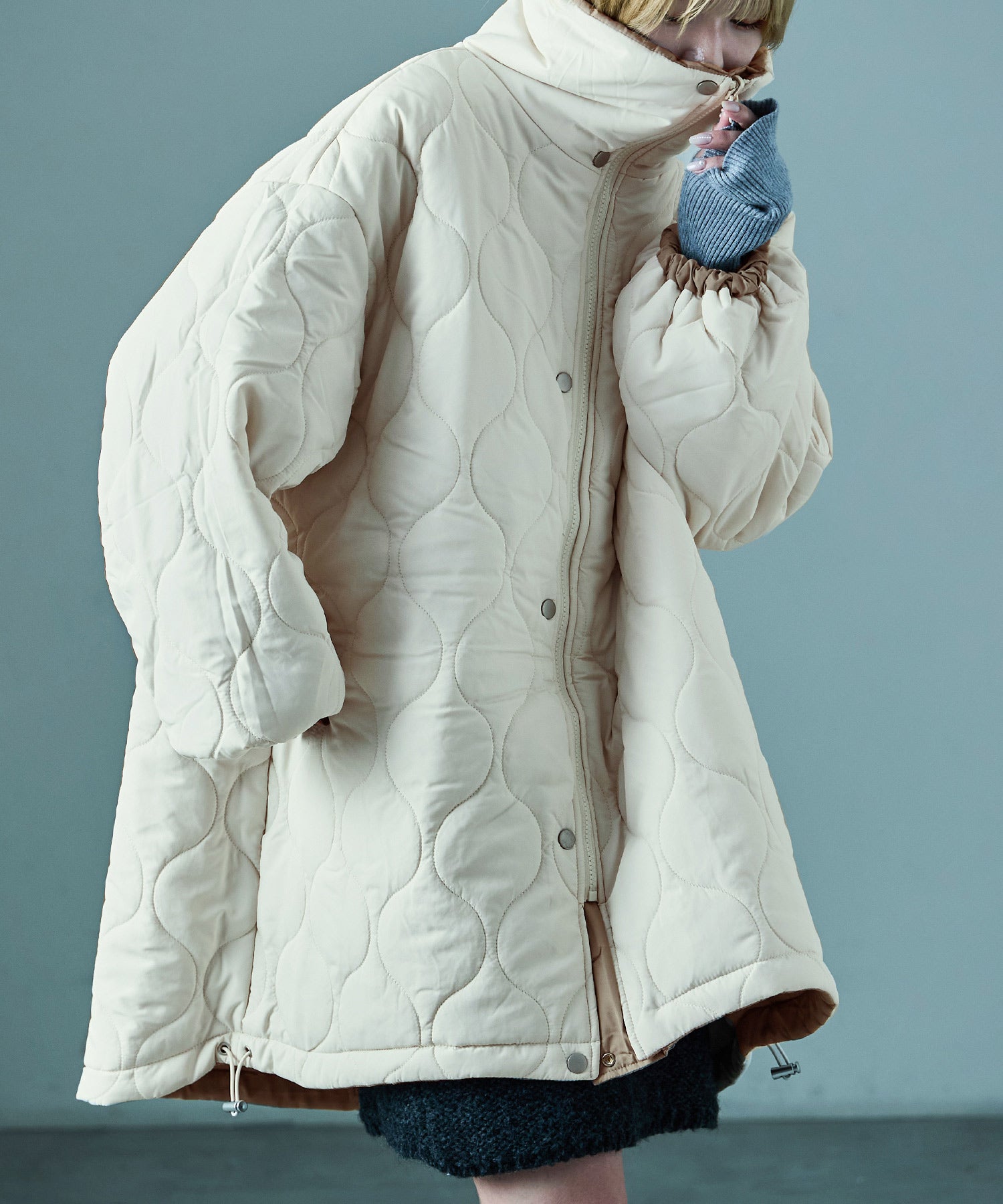 Rname オーバーサイズ リバーシブル モンスターパーカコート アウター ダウンコート ゆったり 中綿 キルティング ダウンジャケット 大きめ 暖か 防寒 コート ブルゾン ジャケット レディース ワイド 軽量 軽い スタンドカラー リバーシブル モンスターコート 低身長 高身長