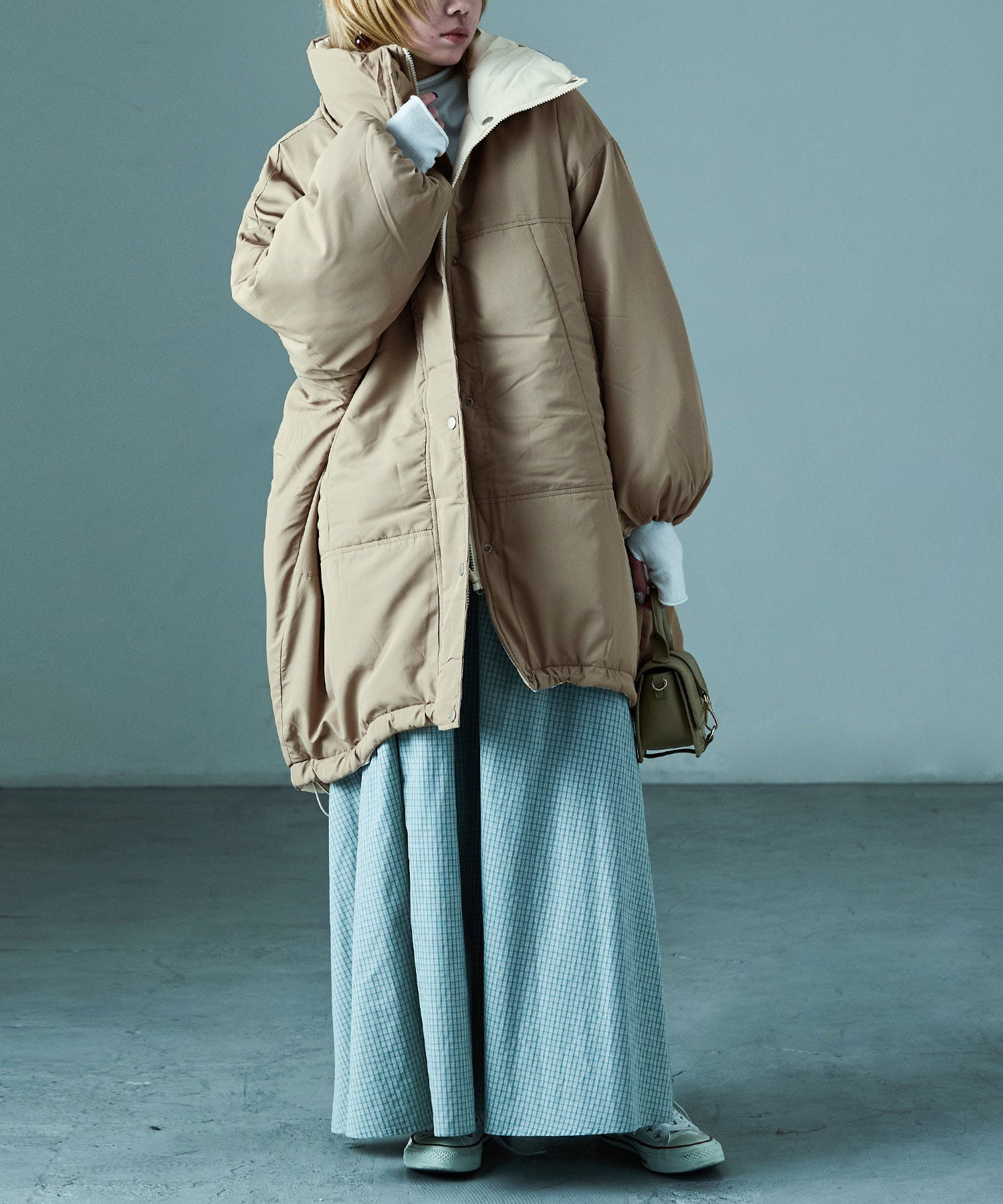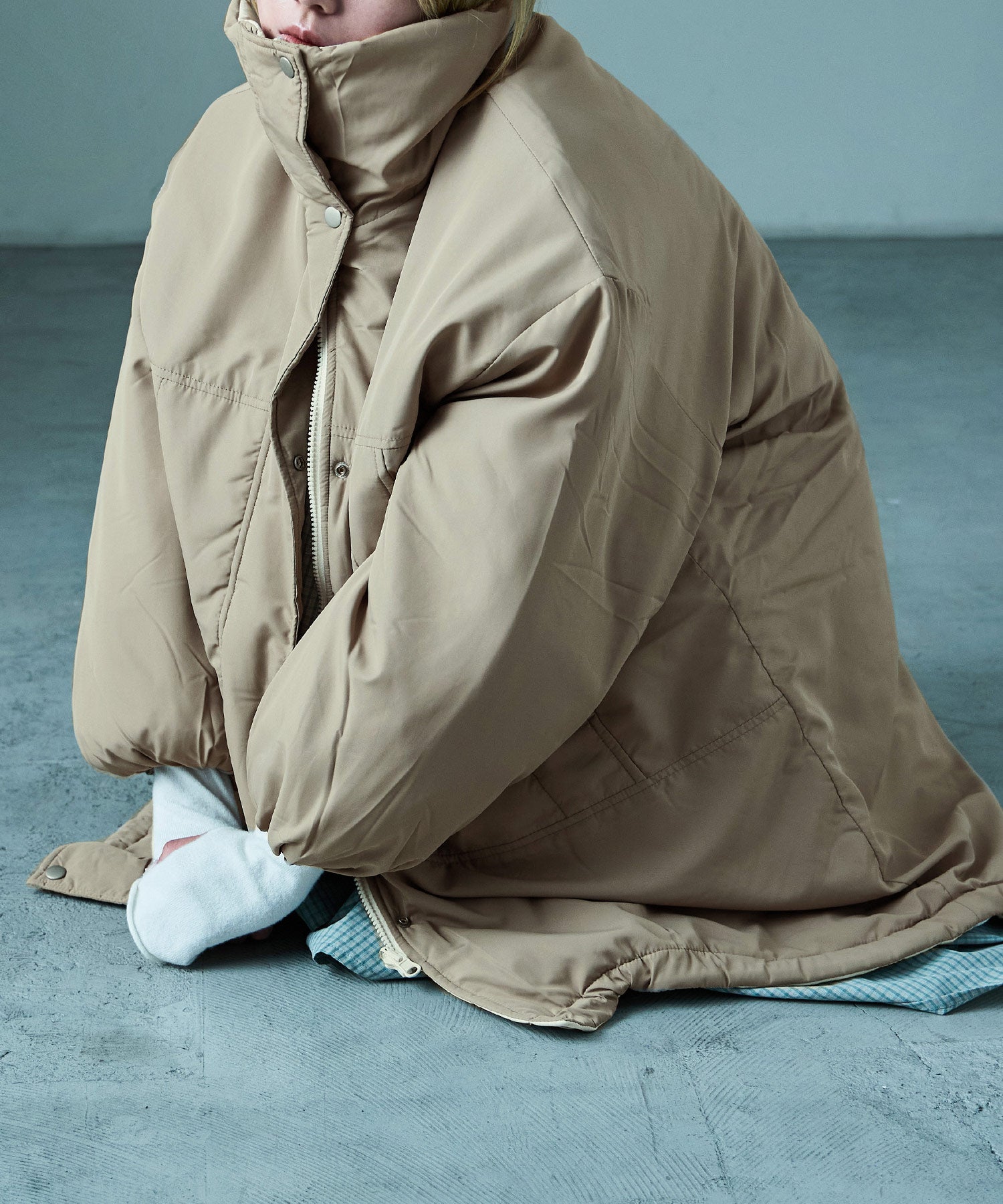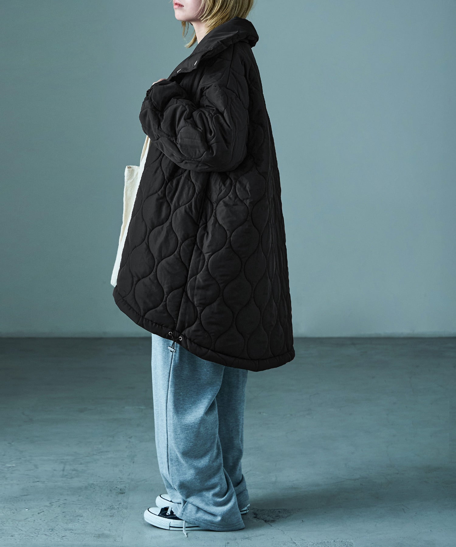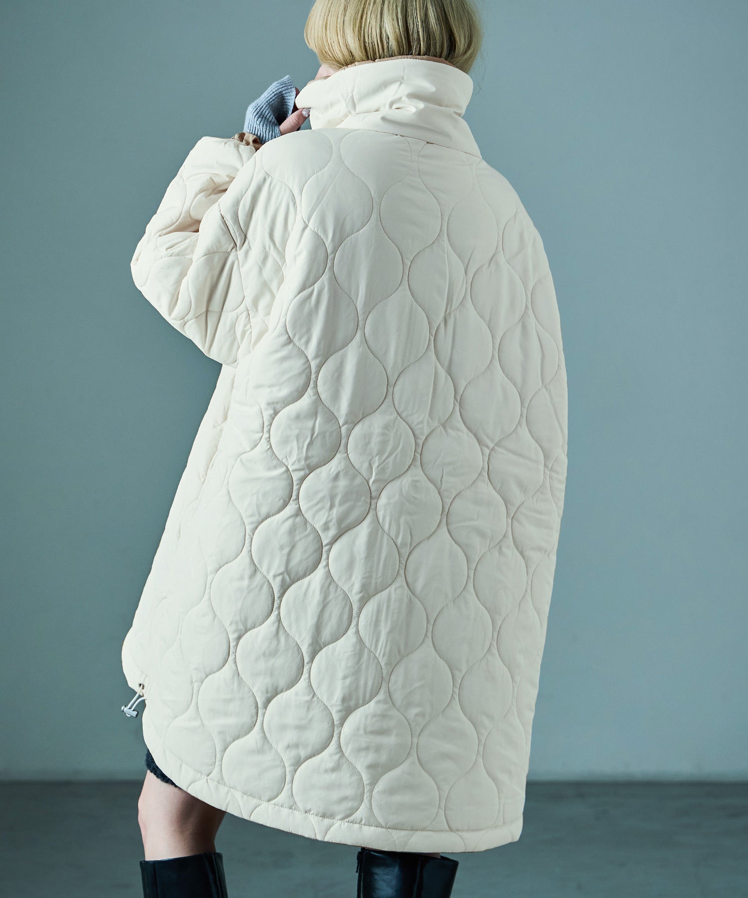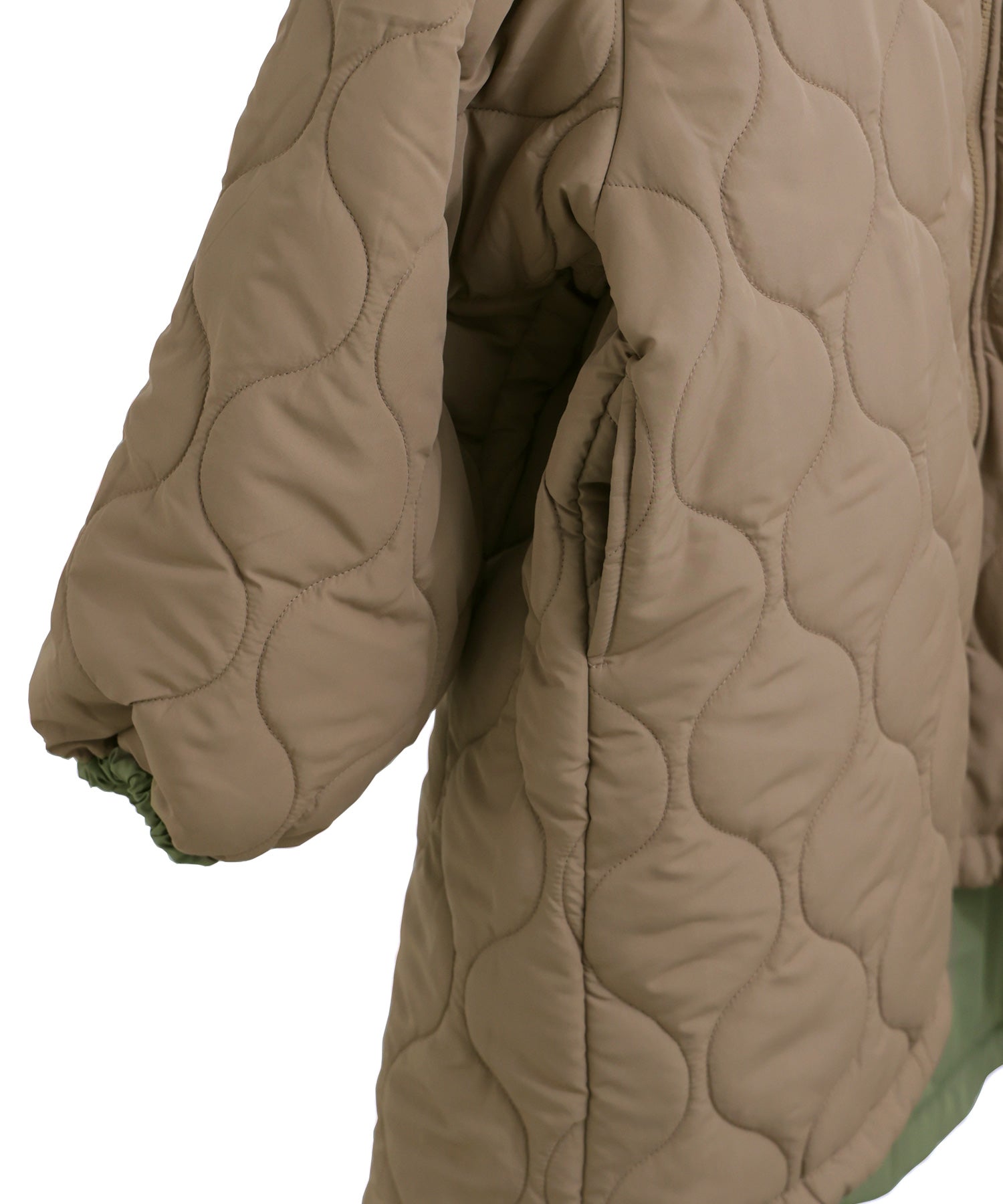 Rname オーバーサイズ リバーシブル モンスターパーカコート アウター ダウンコート ゆったり 中綿 キルティング ダウンジャケット 大きめ 暖か 防寒 コート ブルゾン ジャケット レディース ワイド 軽量 軽い スタンドカラー リバーシブル モンスターコート 低身長 高身長