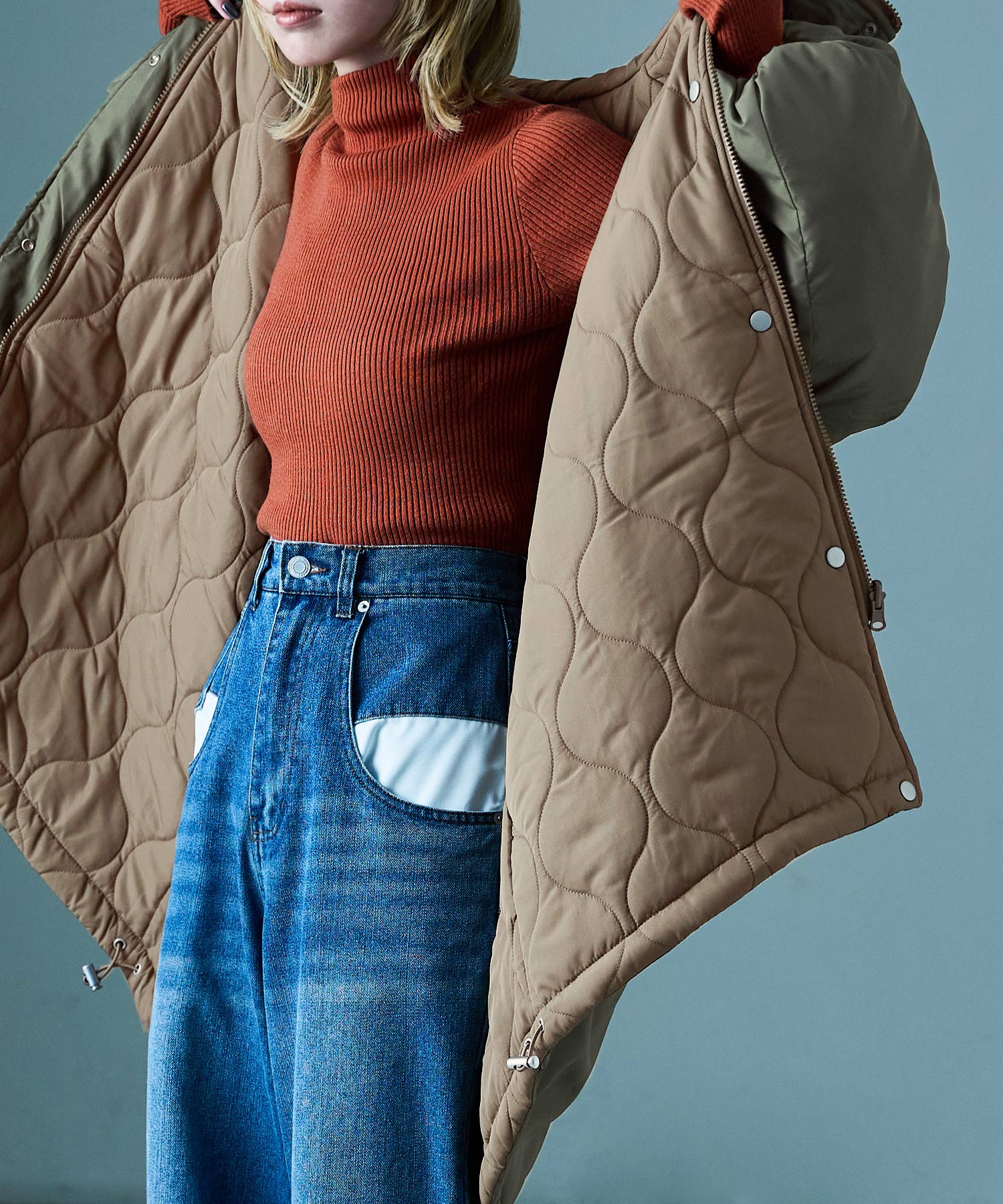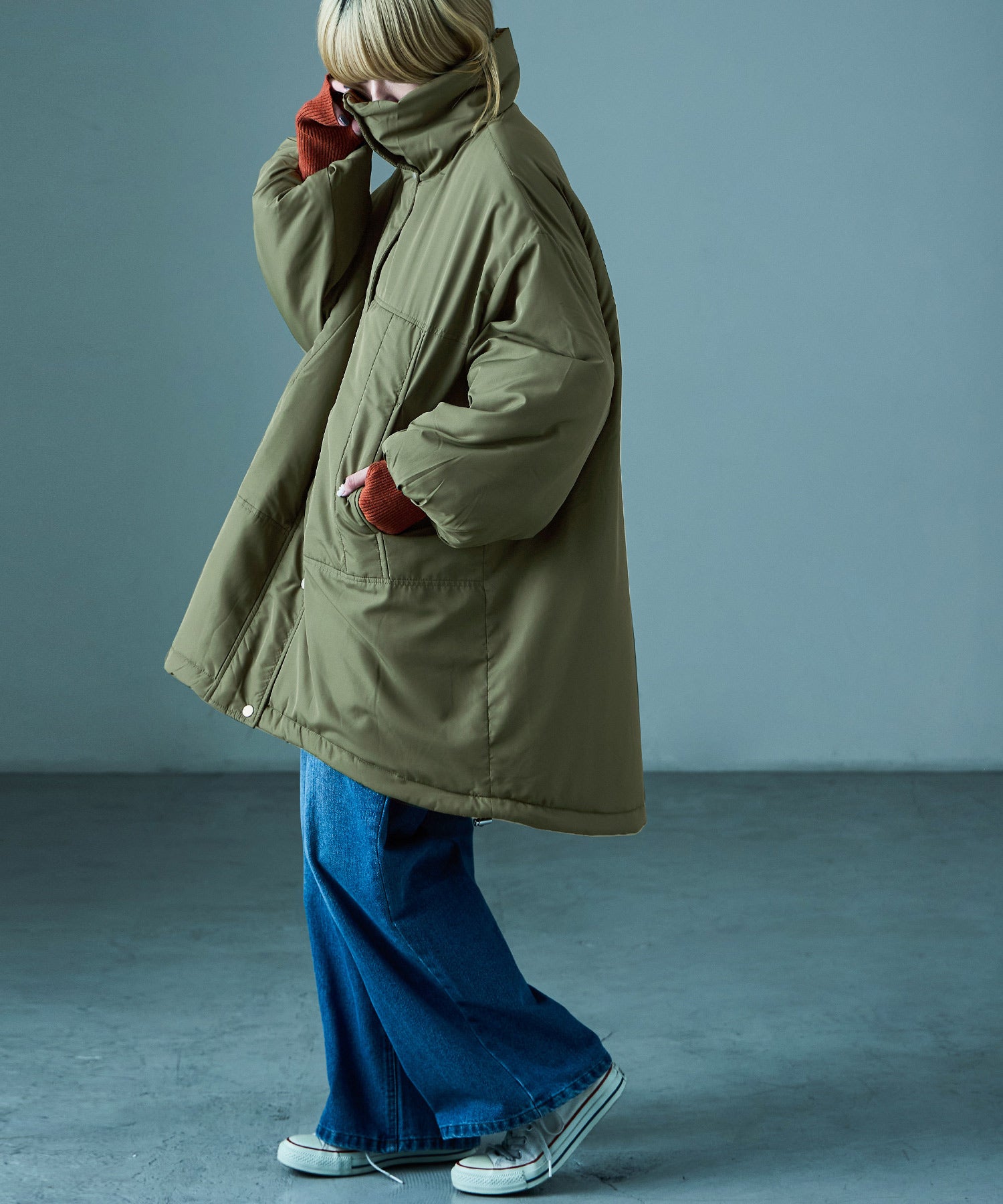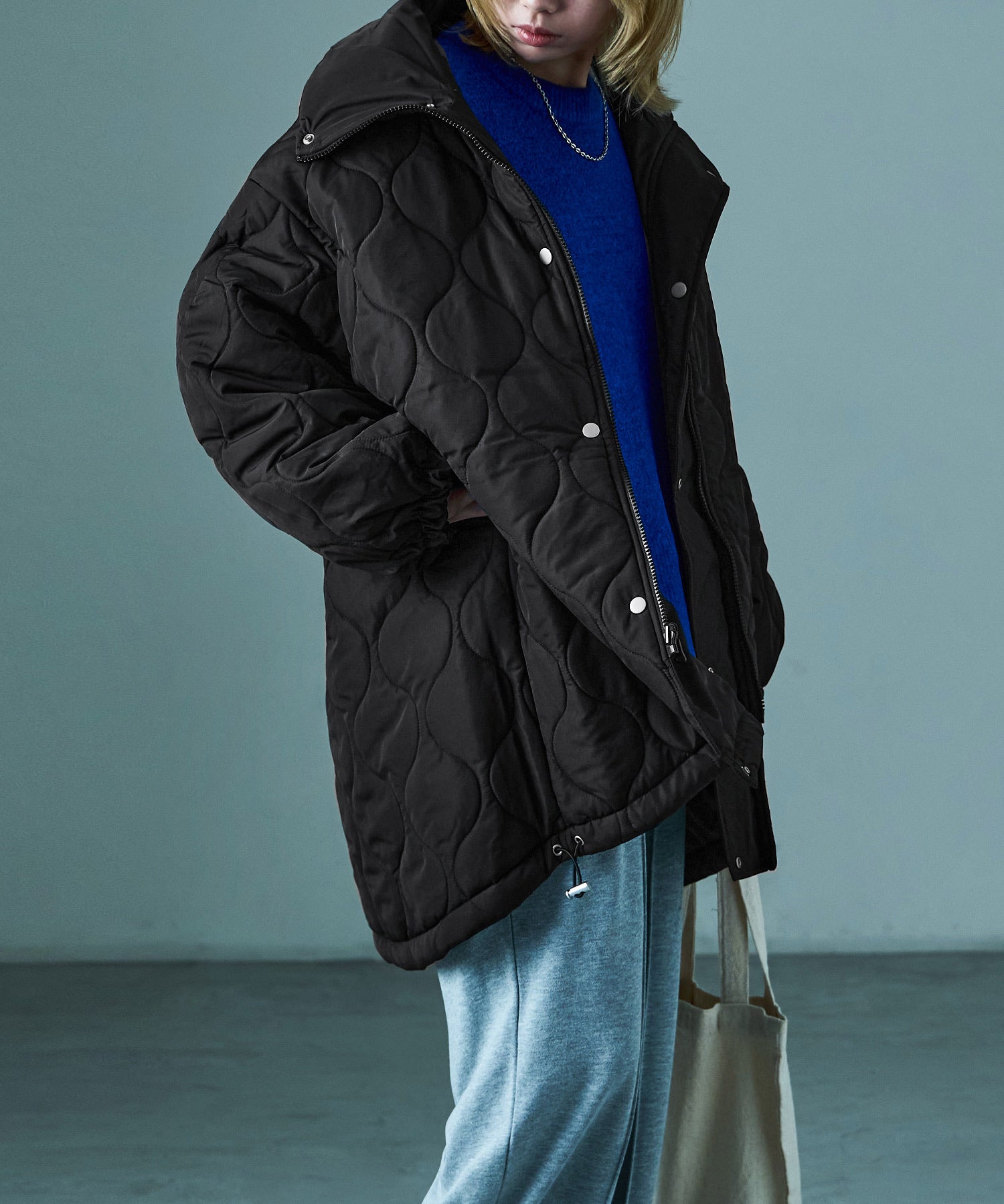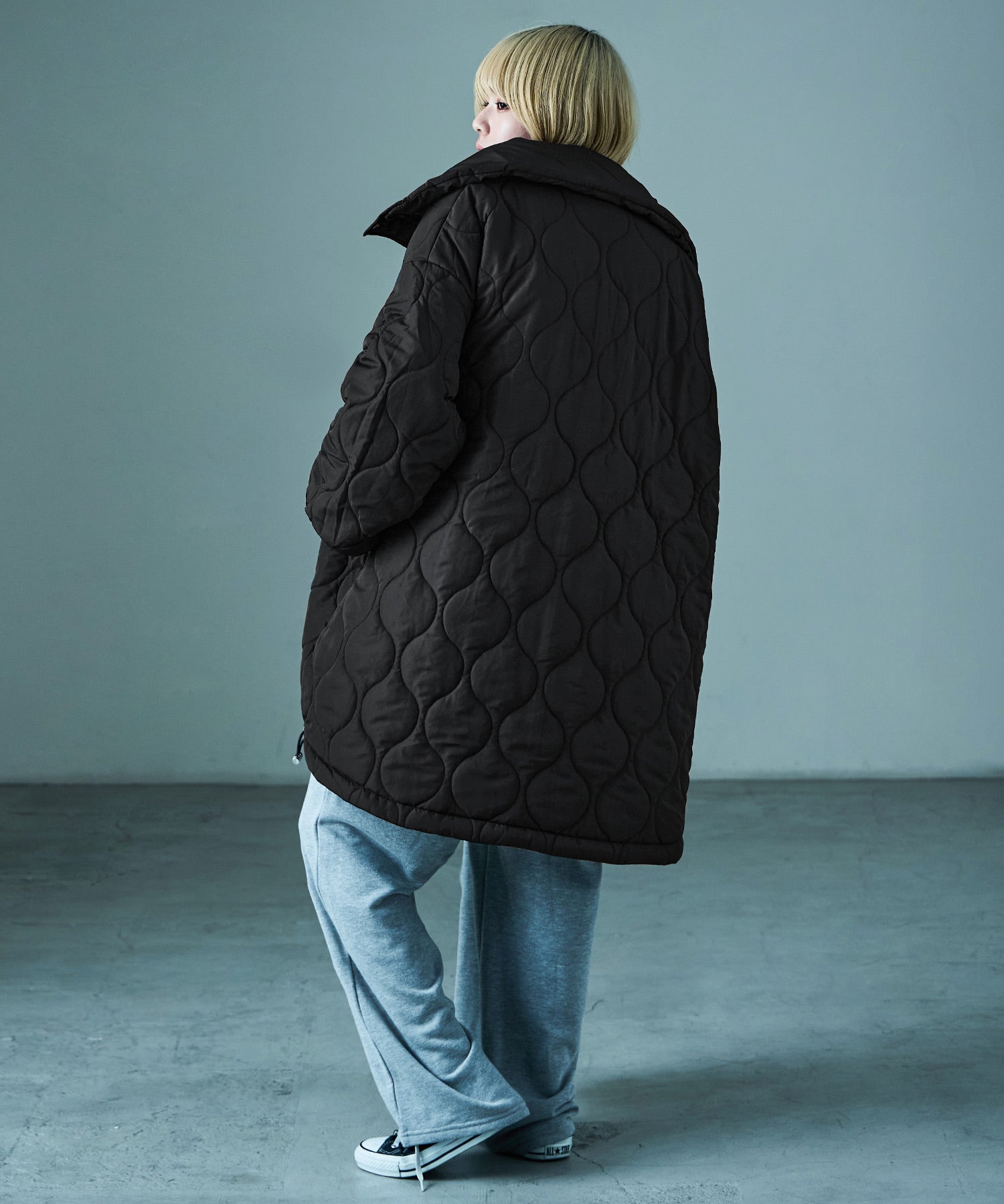Rname オーバーサイズ リバーシブル モンスターパーカコート アウター ダウンコート ゆったり 中綿 キルティング ダウンジャケット 大きめ 暖か 防寒 コート ブルゾン ジャケット レディース ワイド 軽量 軽い スタンドカラー リバーシブル モンスターコート 低身長 高身長