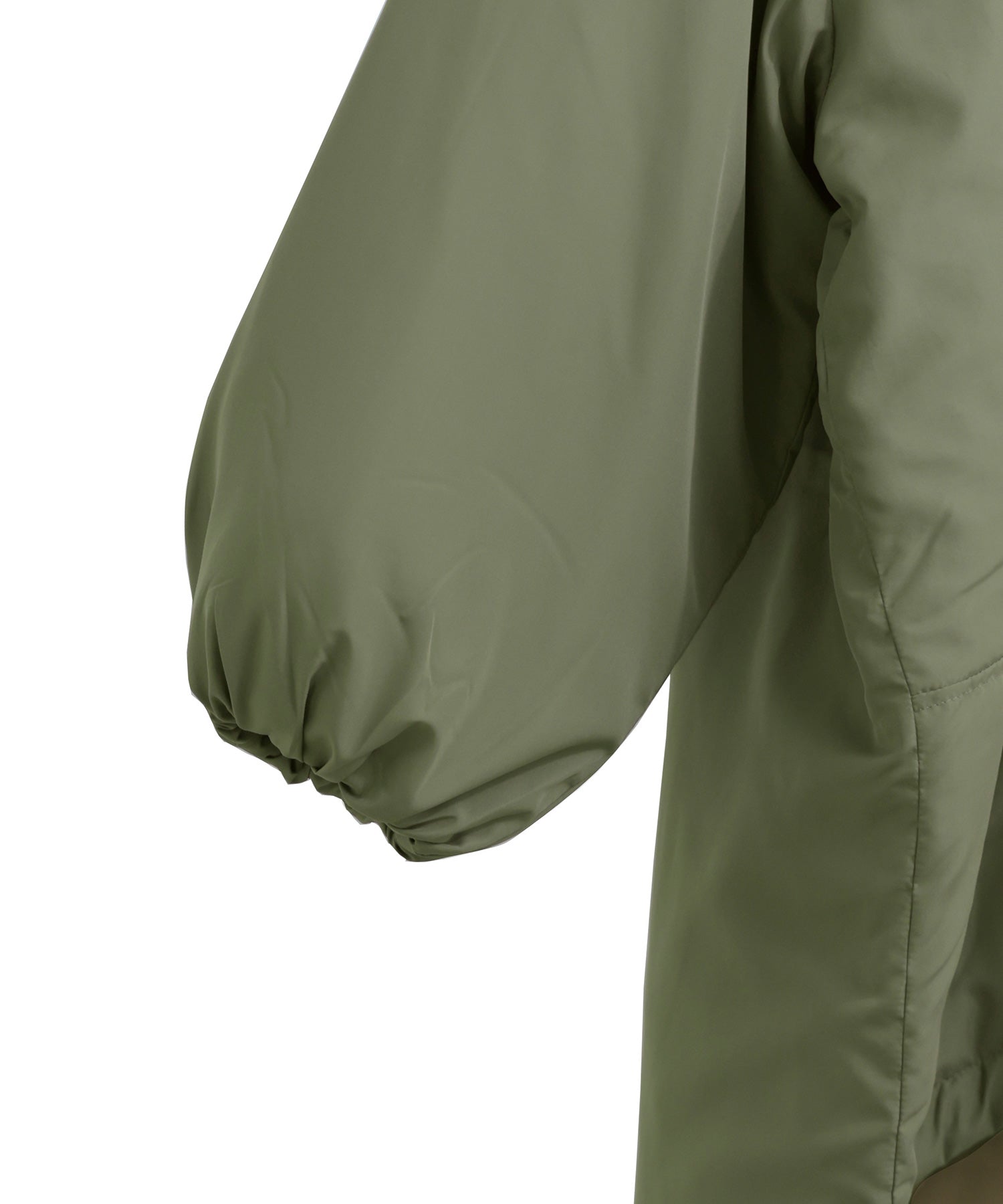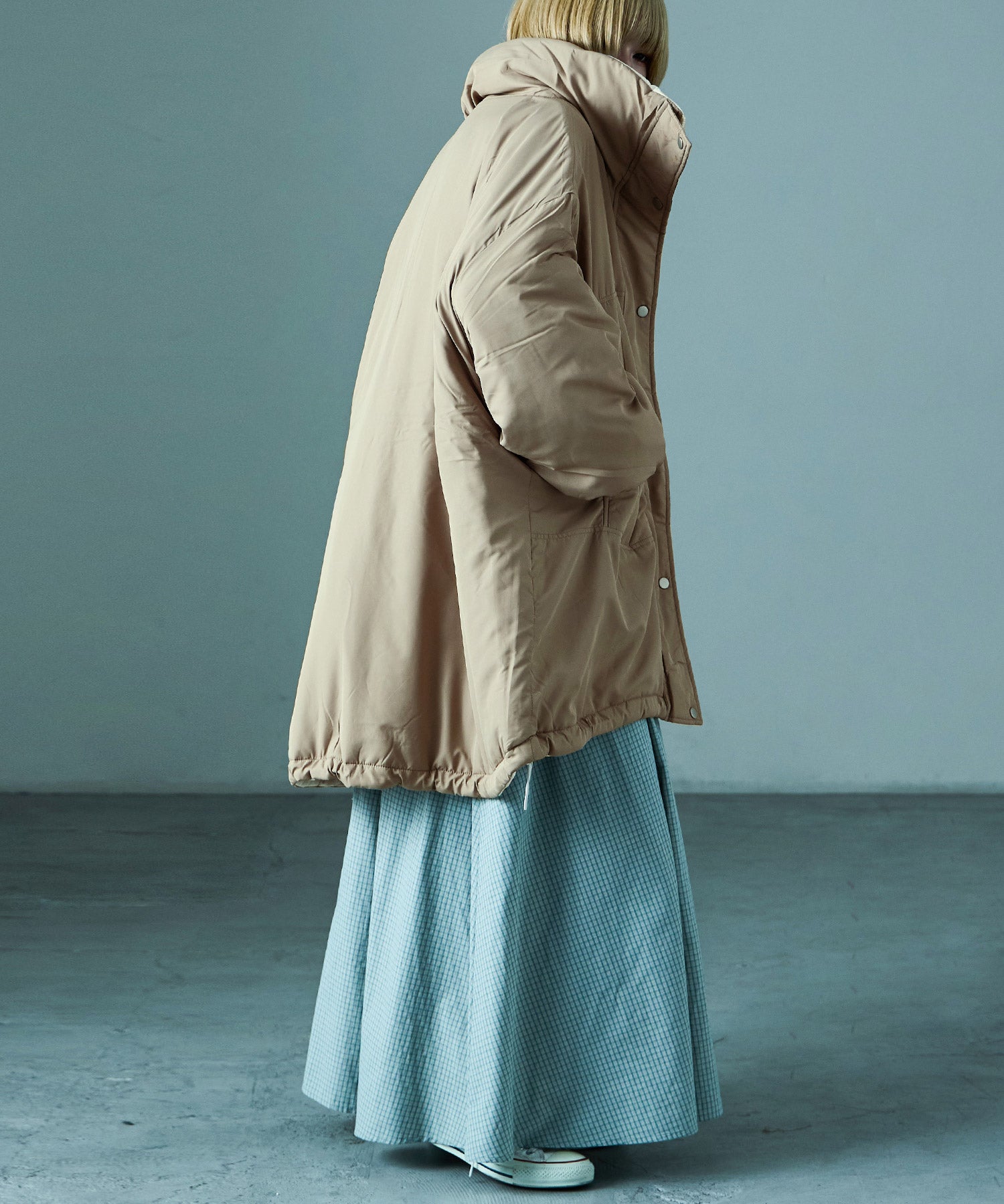 ゆったりとしたサイジングでボリューム袖やオーバーサイズのニットやスウェットの上にも羽織りやすい。