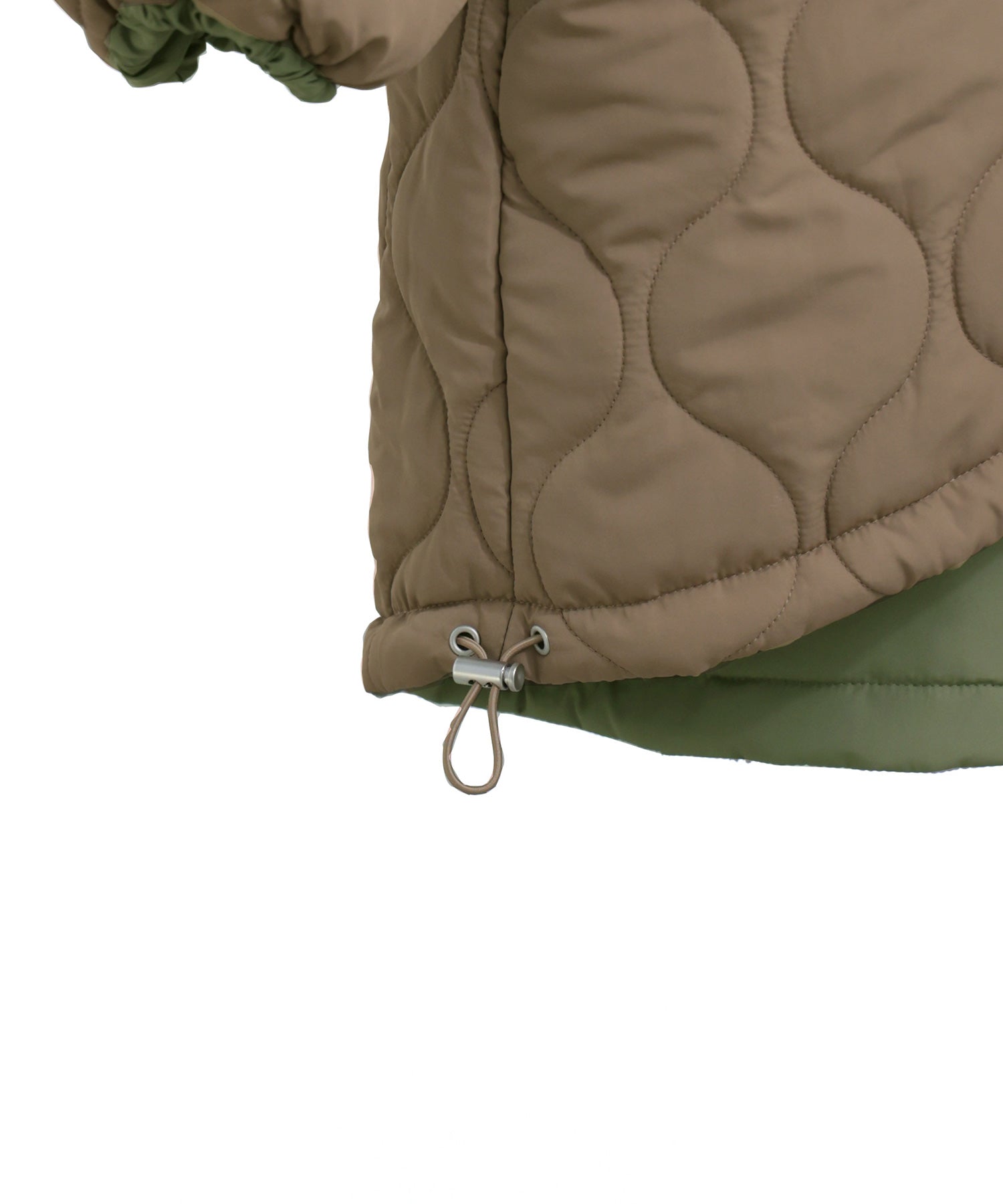 片面はシンプルで滑らかなナイロン素材、片面はキルティング仕様。