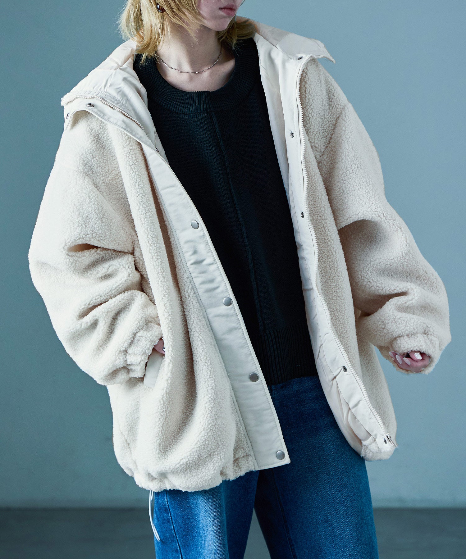 Zname ボア ビッグシルエット フードブルゾン