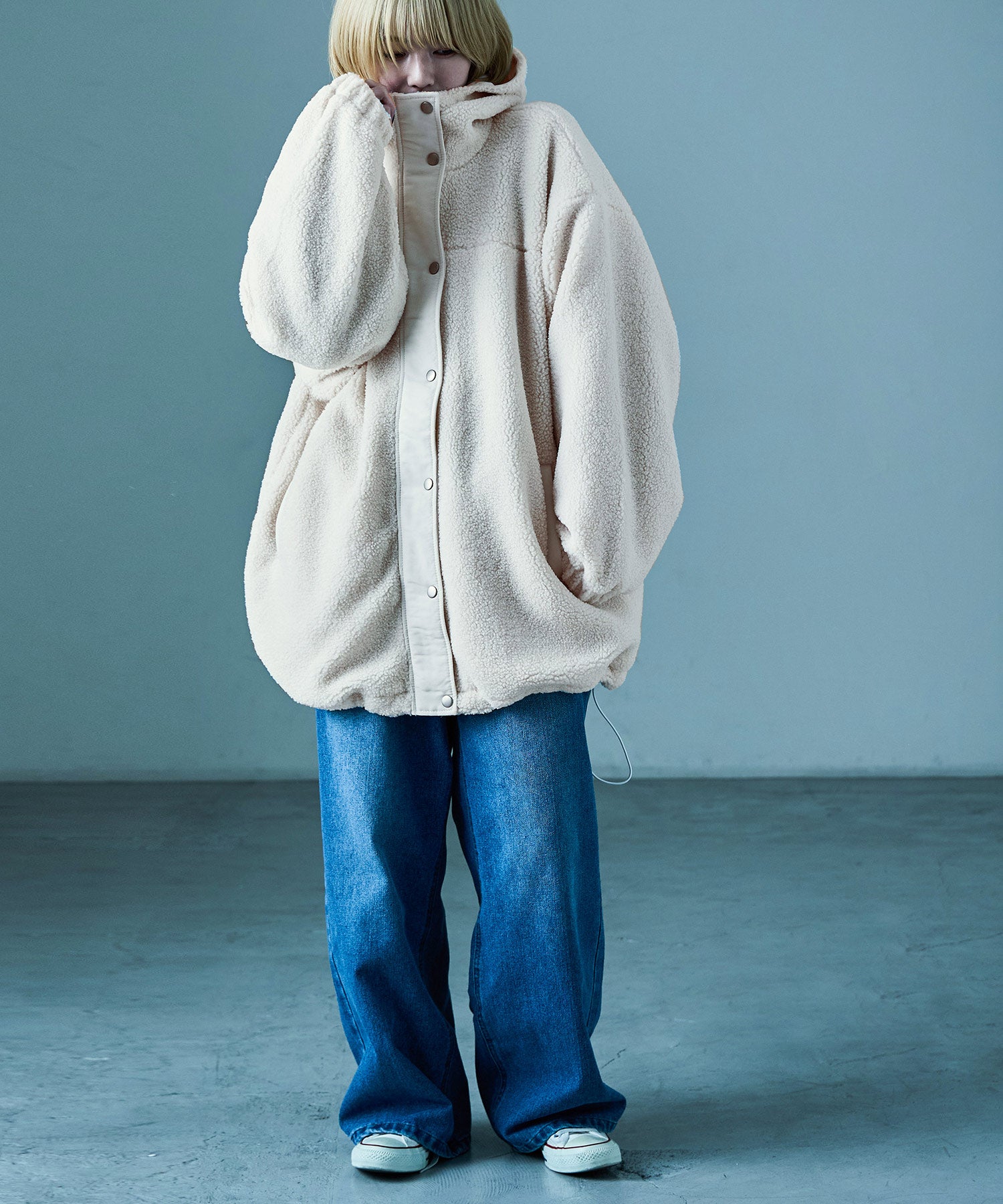 ゆるっと着られるオーバーサイズで、中に着込めるので真冬にも使えるアウター。