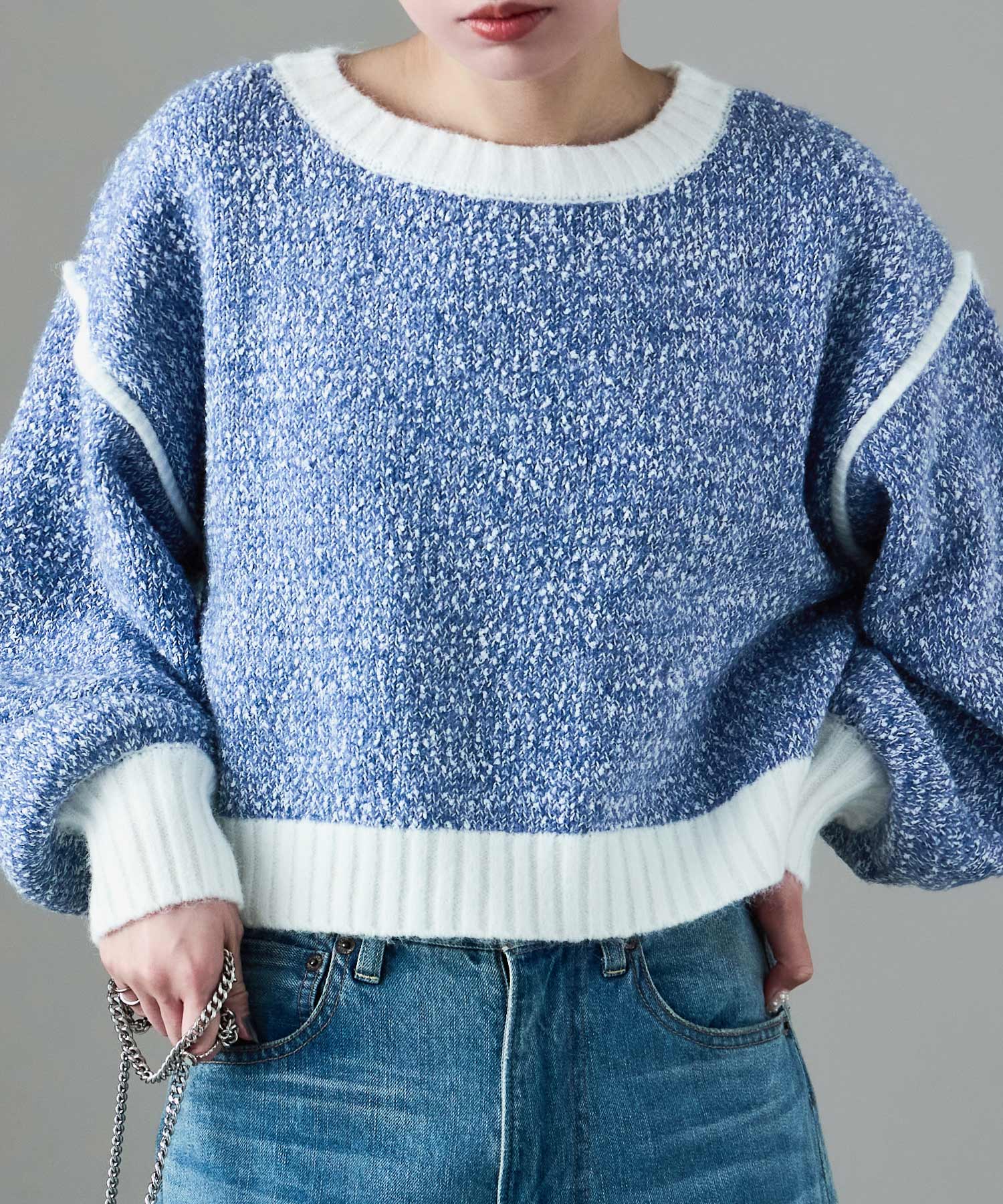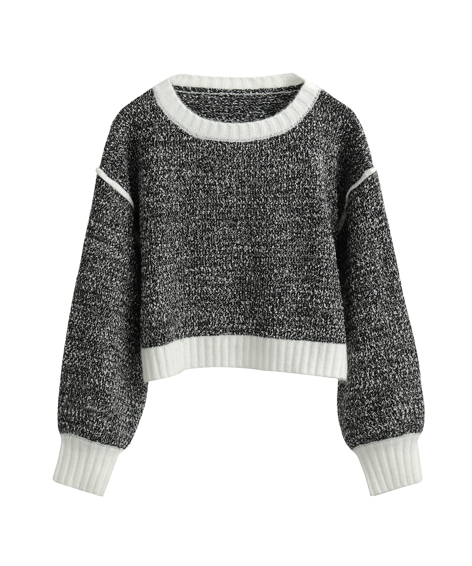 Rname 配色ニット クロップド丈プルオーバー ニットプルオーバー ニット ボリューム袖 セーター カラーニット ショート丈 ゆったり あったか 大きめ トップス レディース 秋 冬 バルーン袖 低身長 高身長 韓国ファッション シンプル ママコーデ 長袖