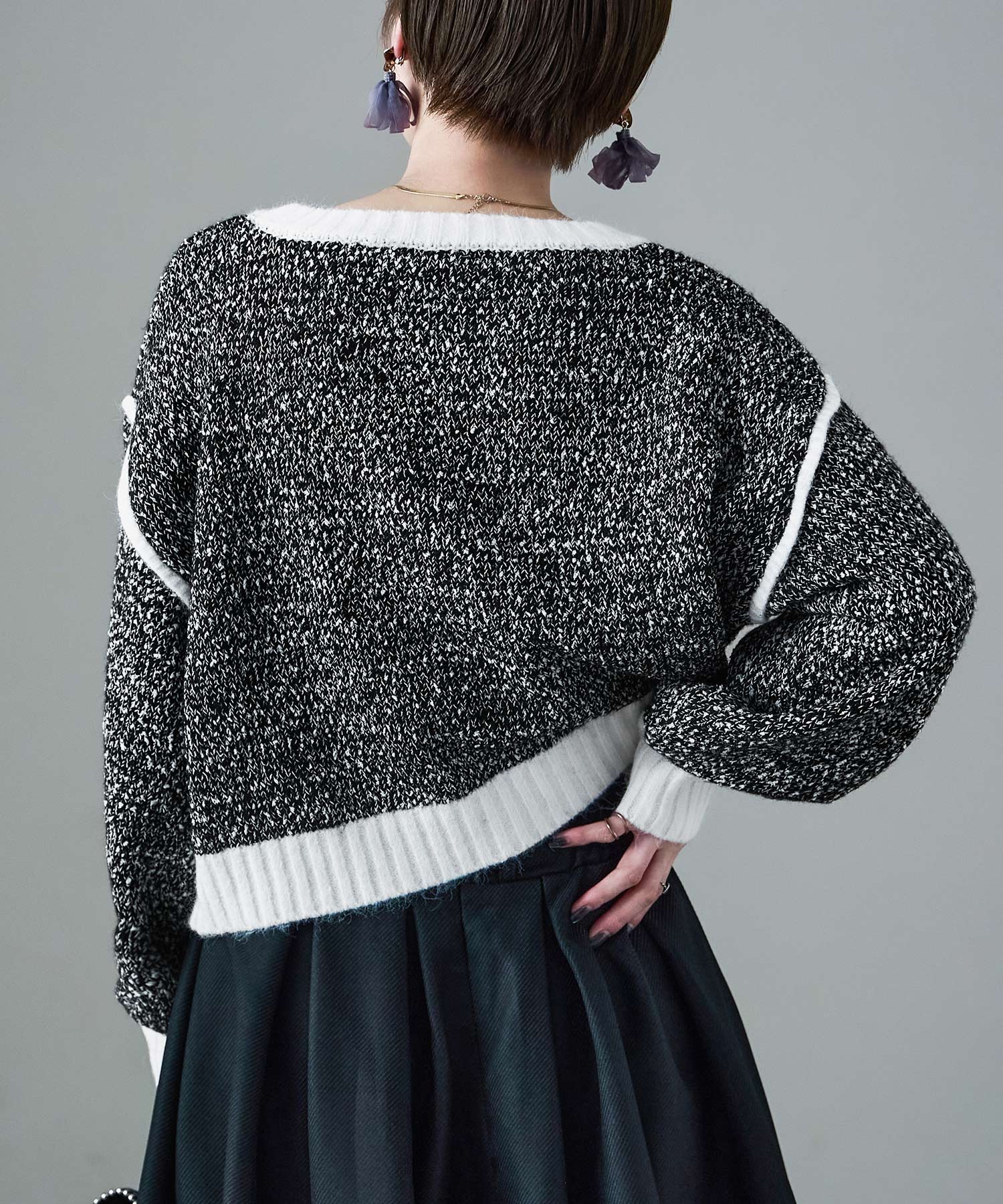 短め丈とミックス糸と配色デザインで遊び心をプラス。