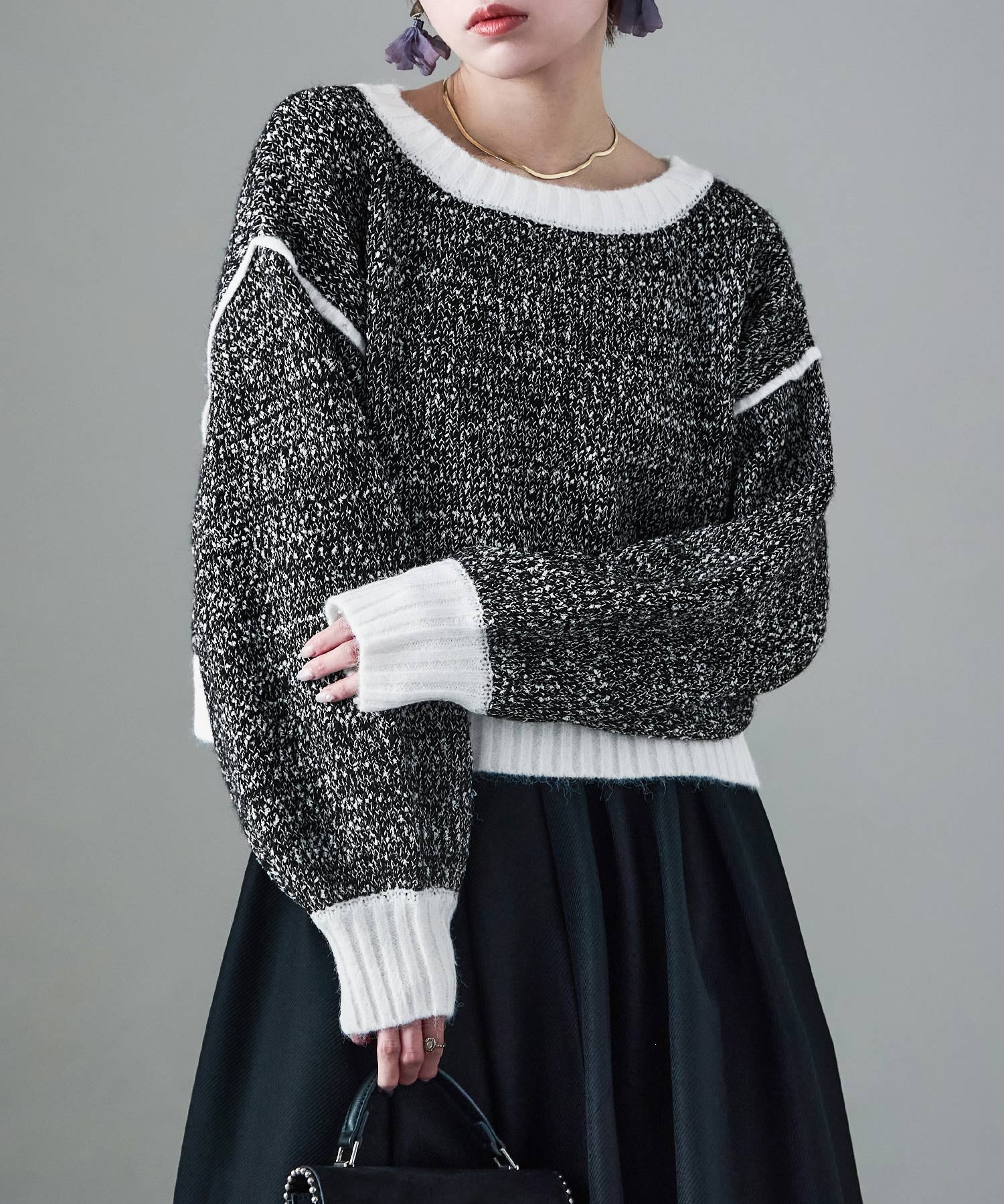 Zname 配色ニット クロップド丈プルオーバー ニットプルオーバー