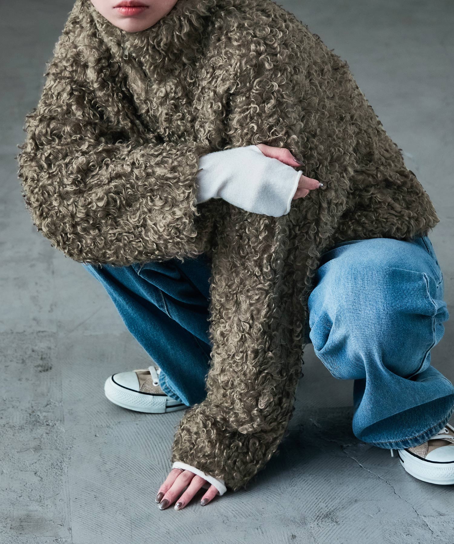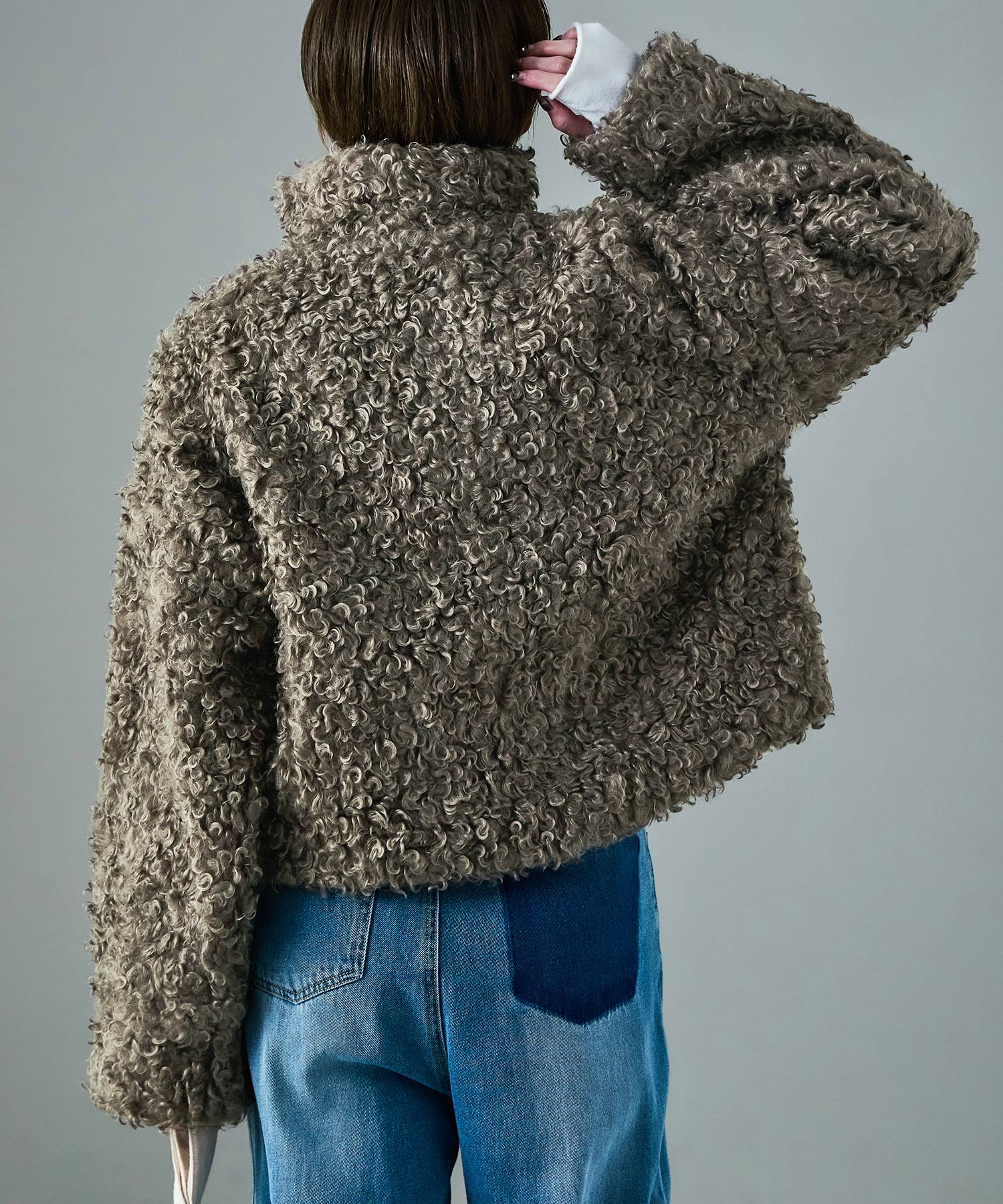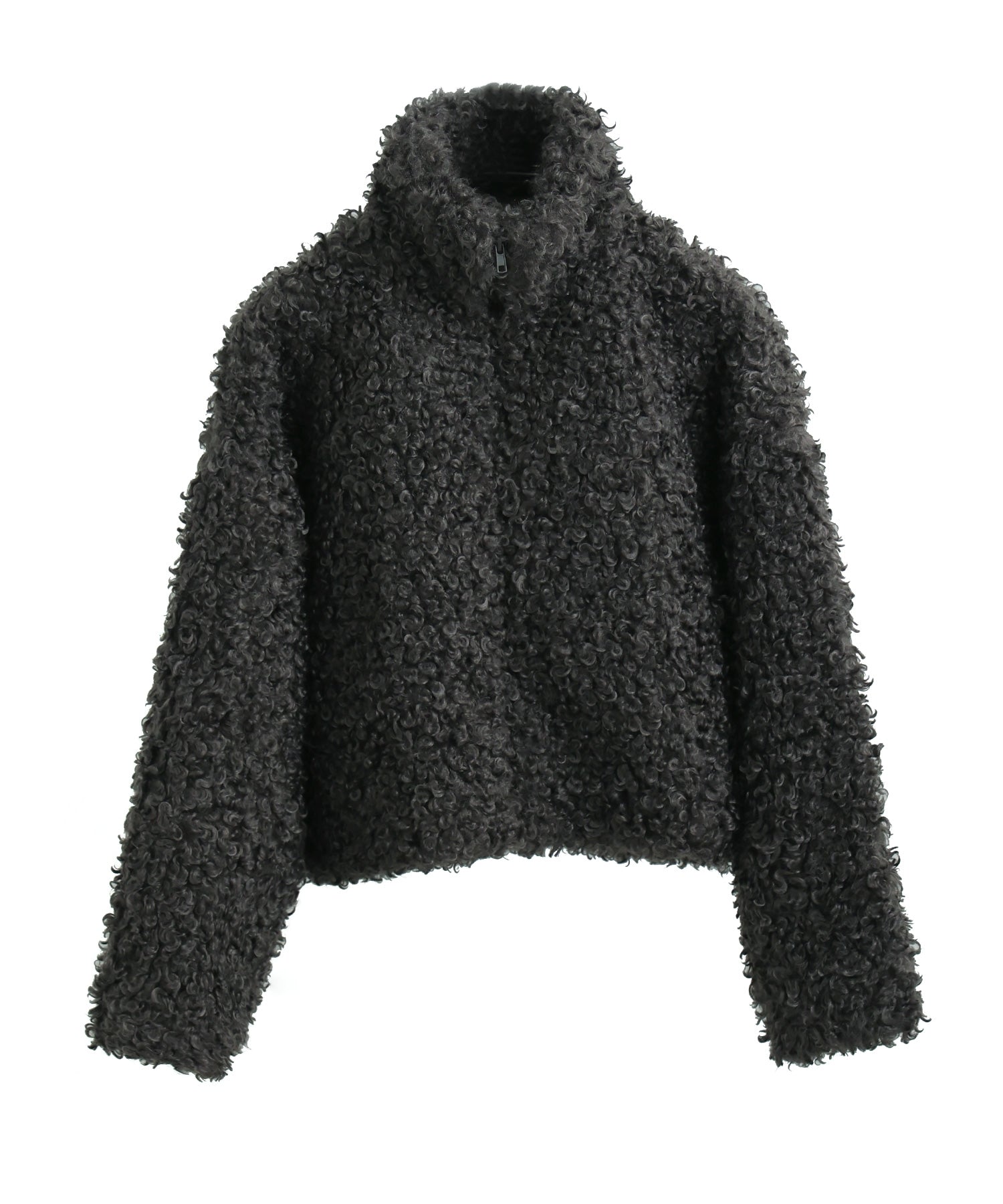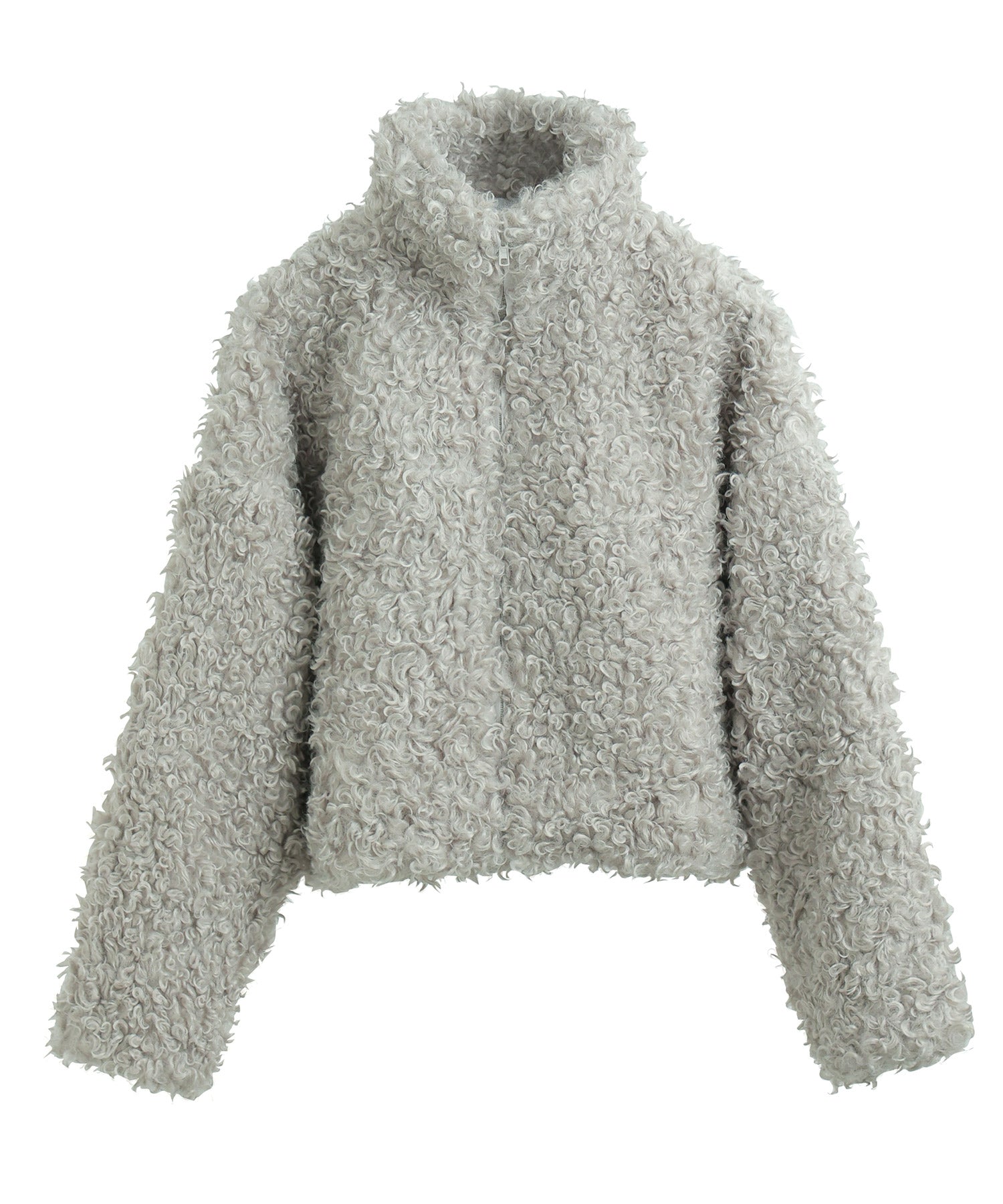 Rname プードルファー スタンドカラーショートコート テディボア テディコート ショートジャケット ブルゾン ボア ゆったり ショート丈 韓国ファッション 低身長 高身長 あったか アウター ママコーデ きれいめ